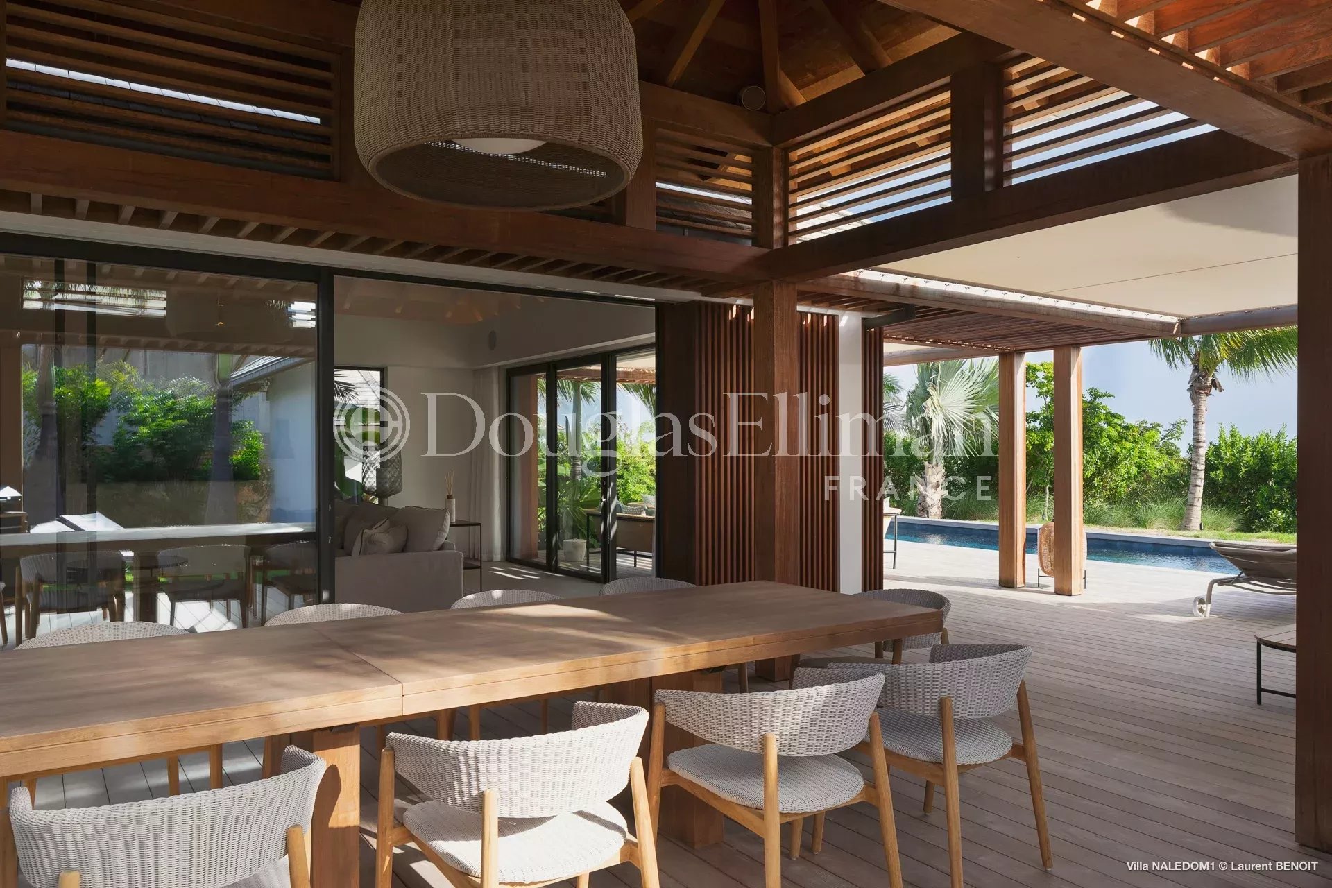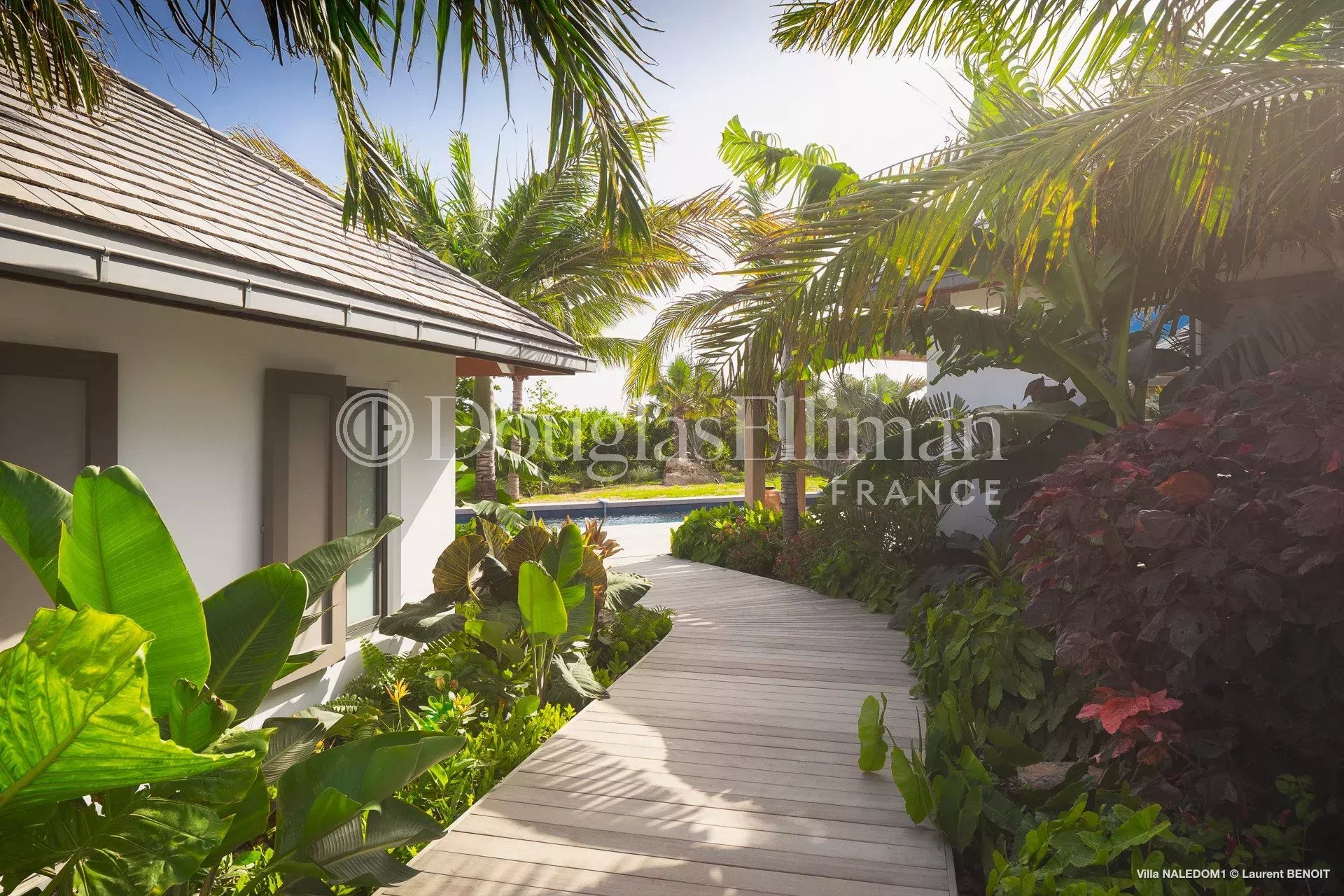 Au cœur d’un jardin tropical soigneusement aménagé, la villa, qui bénéficie d’un léger aperçu mer, dispose d’une grande piscine, d’un patio dinatoire et de quatre places de stationnement privatifs.