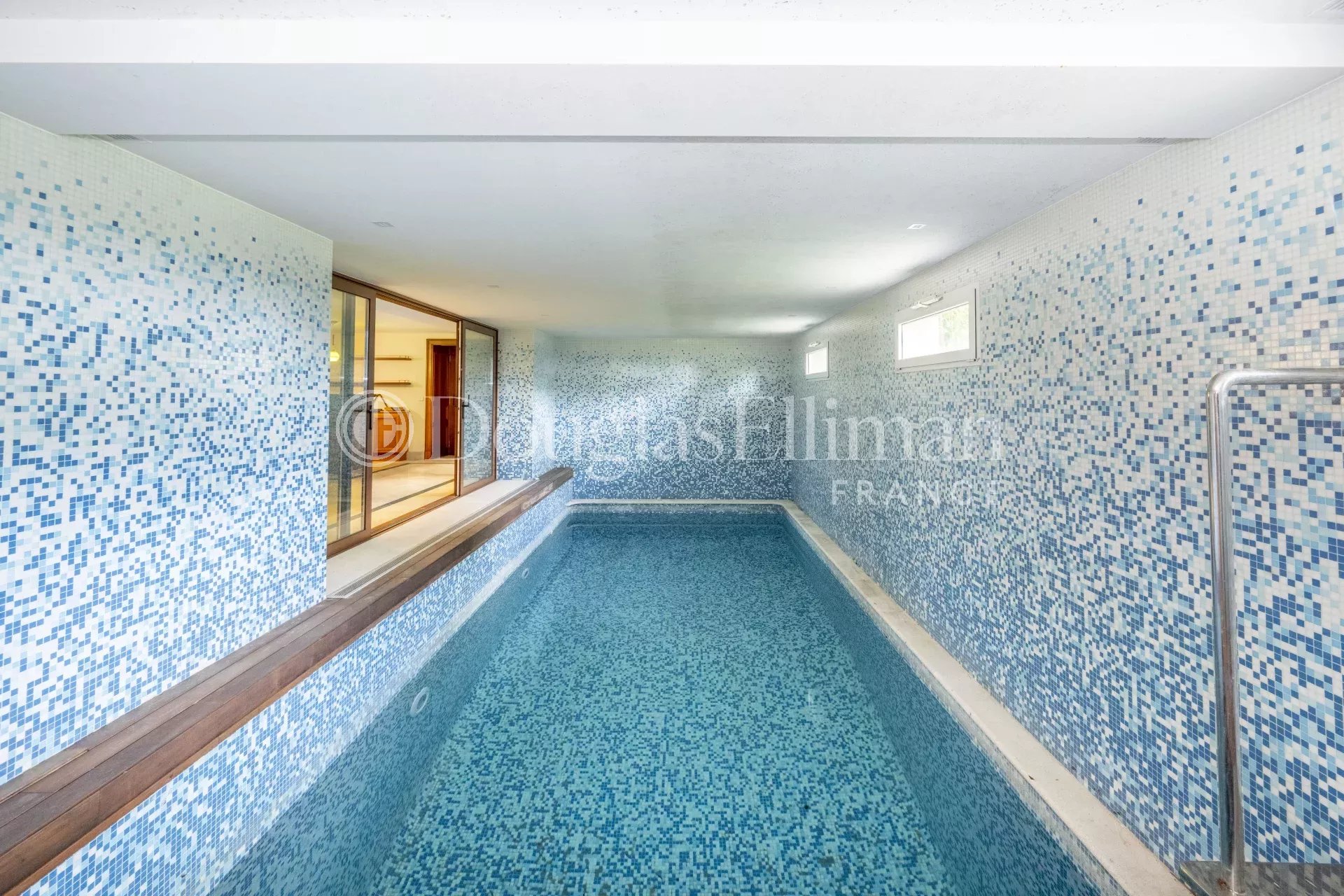 Conçue pour un art de vivre raffiné, la propriété dispose également de luxueux espaces bien-être : piscine intérieure chauffée, sauna, salle de cinéma, salle de billard et cave à vin viennent enrichir l’expérience.