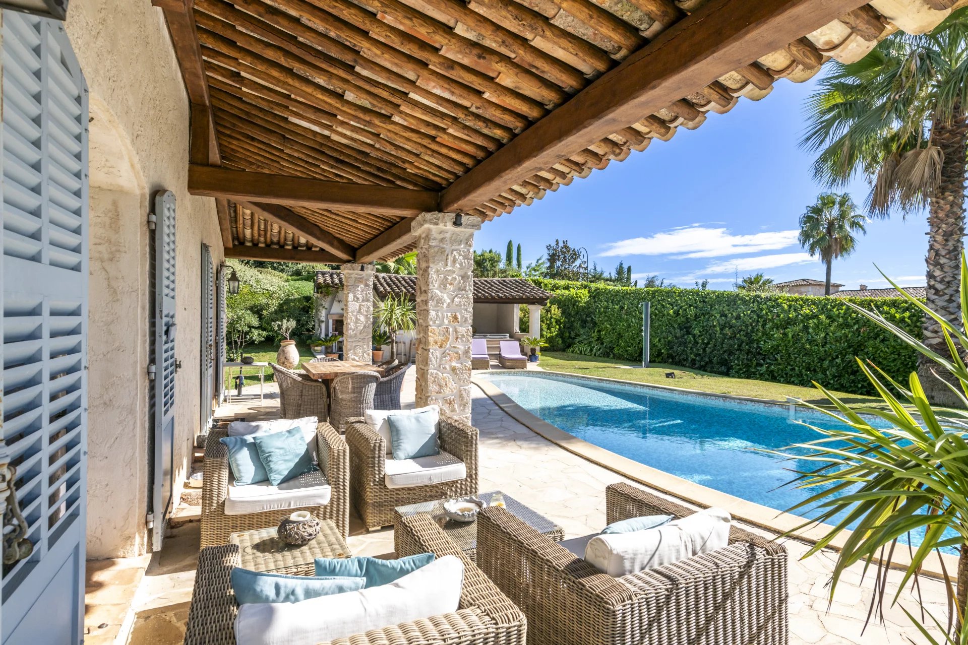 Le jardin complanté de 3099m2 propose de très agréables espaces de réception, une belle piscine à forme libre, un pool house, un jacuzzi, un terrain de boules, ainsi qu'un parking pour trois voitures.