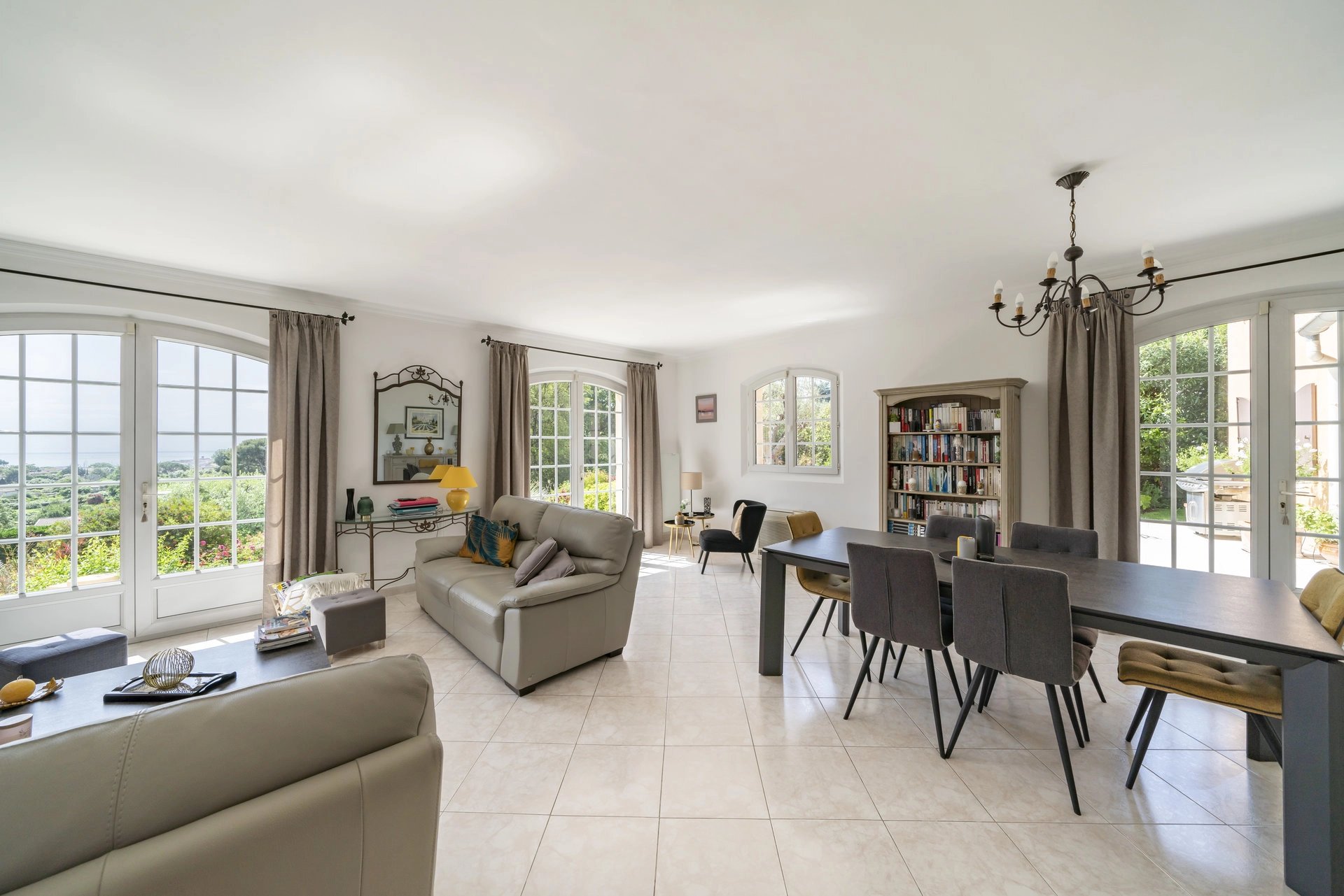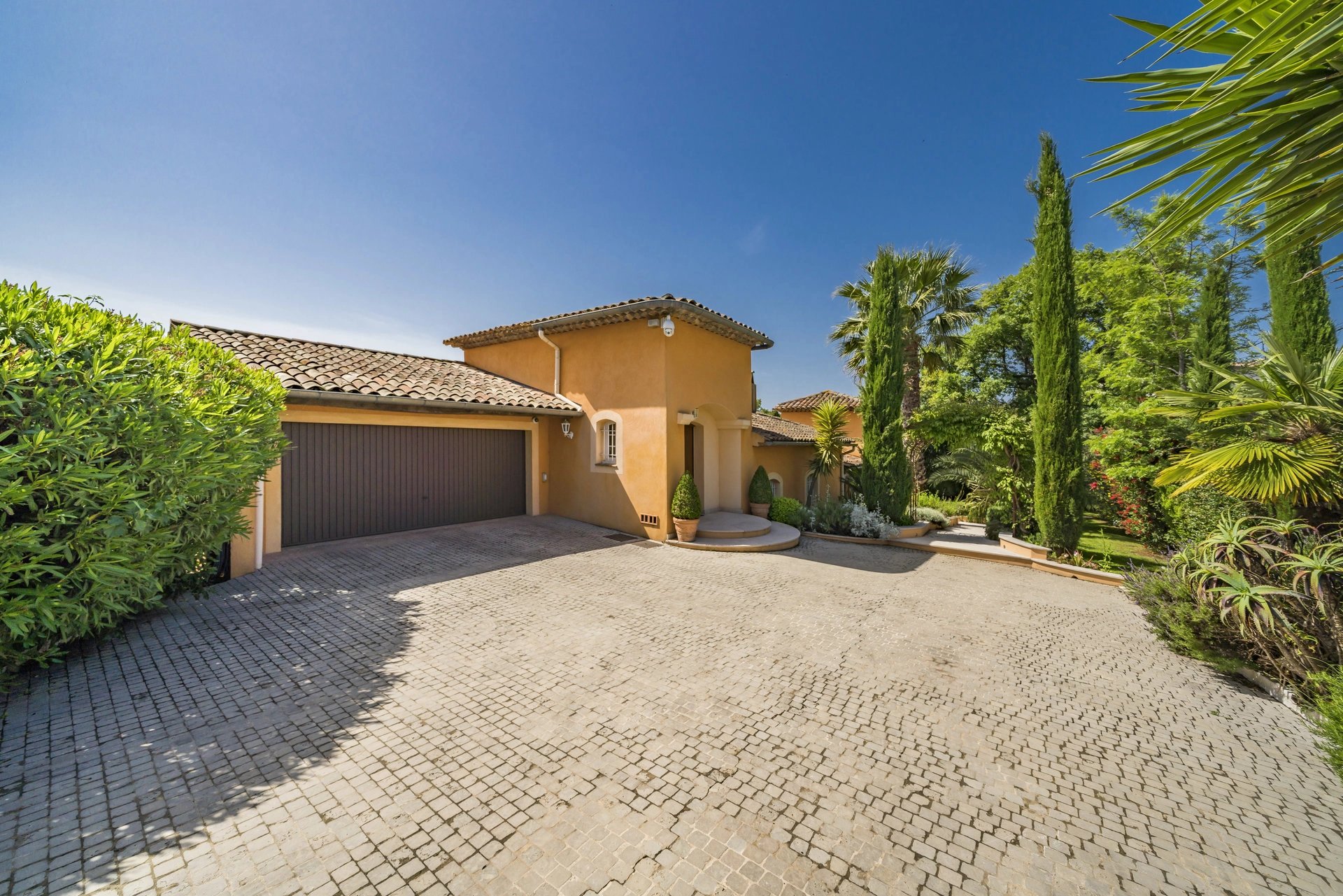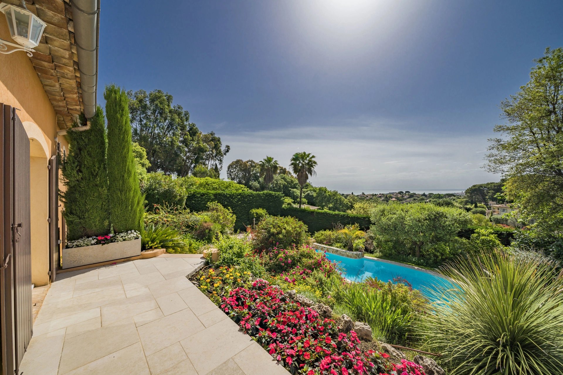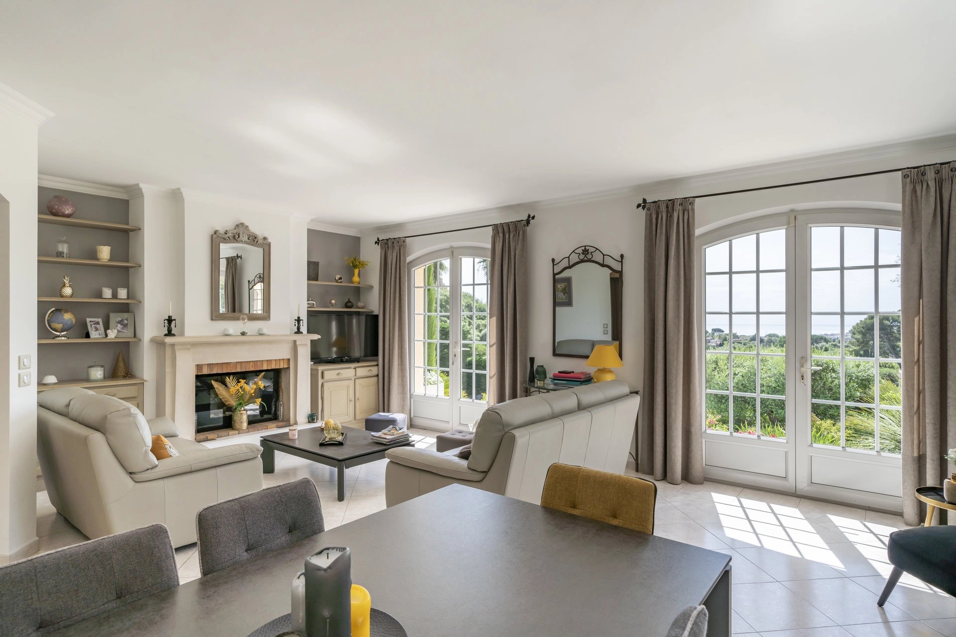 Dans un quartier résidentiel et très recherché, splendide villa de style provençal de +/- 202m² exposée Sud et Est bénéficiant d'une magnifique vue mer. Implantée sur un terrain de 1550 m² joliment complanté(essences méditerranéennes et arbres fruitiers) agrémenté d'une piscine, d'un terrain de pétanque, de plusieurs terrasses et de nombreux emplacements de stationnement, cette villa sans aucun vis à vis est en excellent état intérieur et extérieur. La maison principale comprend une entrée une chambre avec sa salle d'eau et un wc indépendant. Quelques marches mènent à un spacieux séjour - salon avec cheminée et à une grande cuisine dînatoire totalement équipée, enfin un demi-niveau plus bas on retrouve deux chambres de maître (une avec salle d'eau douche italienne et wc et l'autre avec salle de bains et wc). Une véranda aménagée en salon d'été permet l'accès à un deux pièces indépendant offrant sur deux niveaux un salon, une chambre, une salle d'eau avec wc. Une grande buanderie, un espace en sous-sol d'environ 120m² avec de nombreux rangements un garage double pour voitures côte à côte, la climatisation réversible, un adoucisseur d'eau, un système d'alarme et de vidéosurveillance, portail automatique et de nombreuses autres prestations intérieures et extérieures de qualité contribuent au grand confort de cette villa.