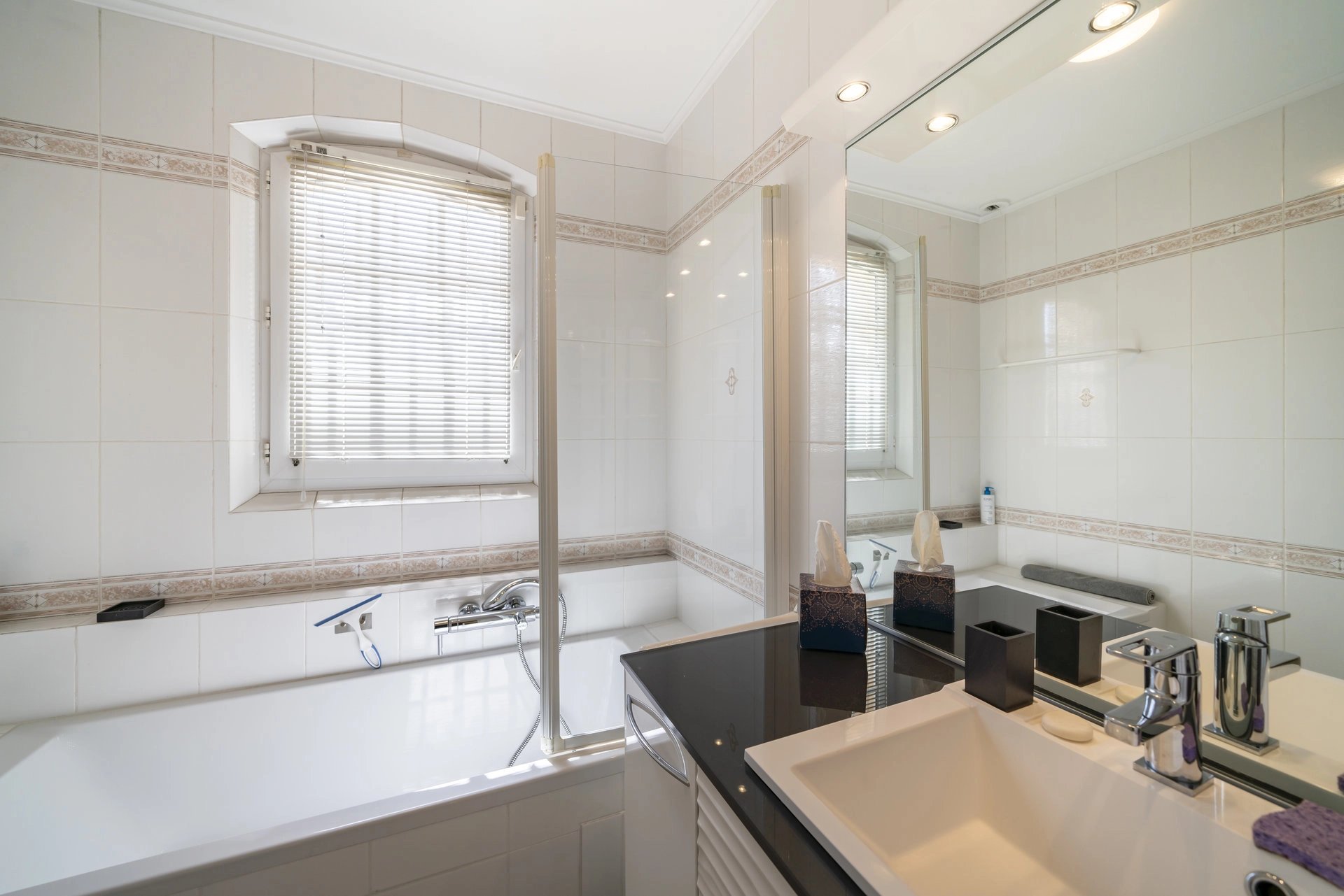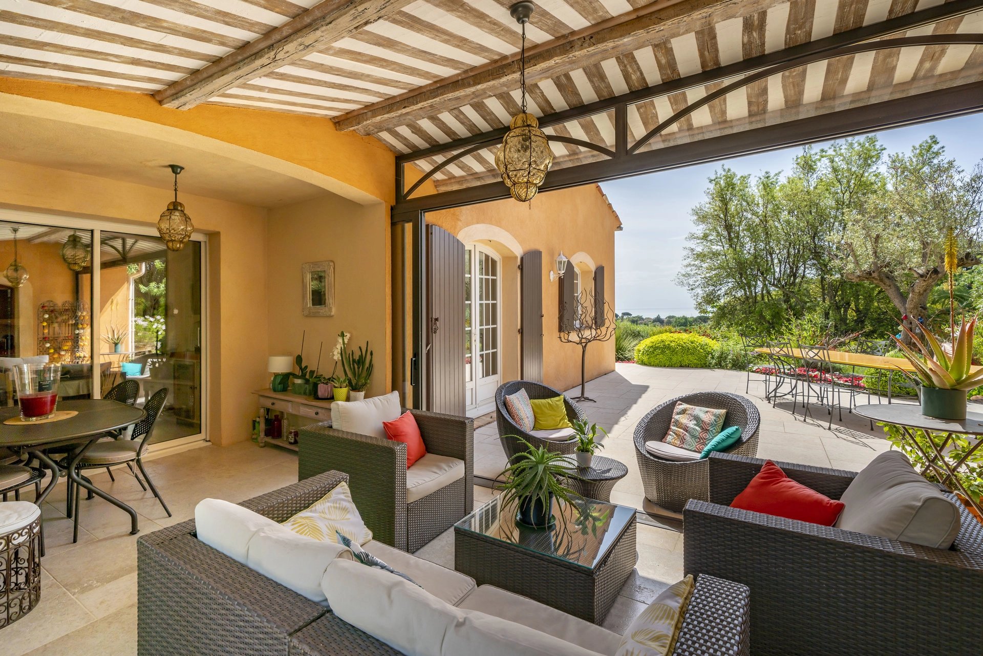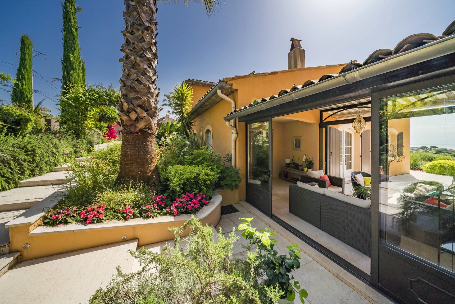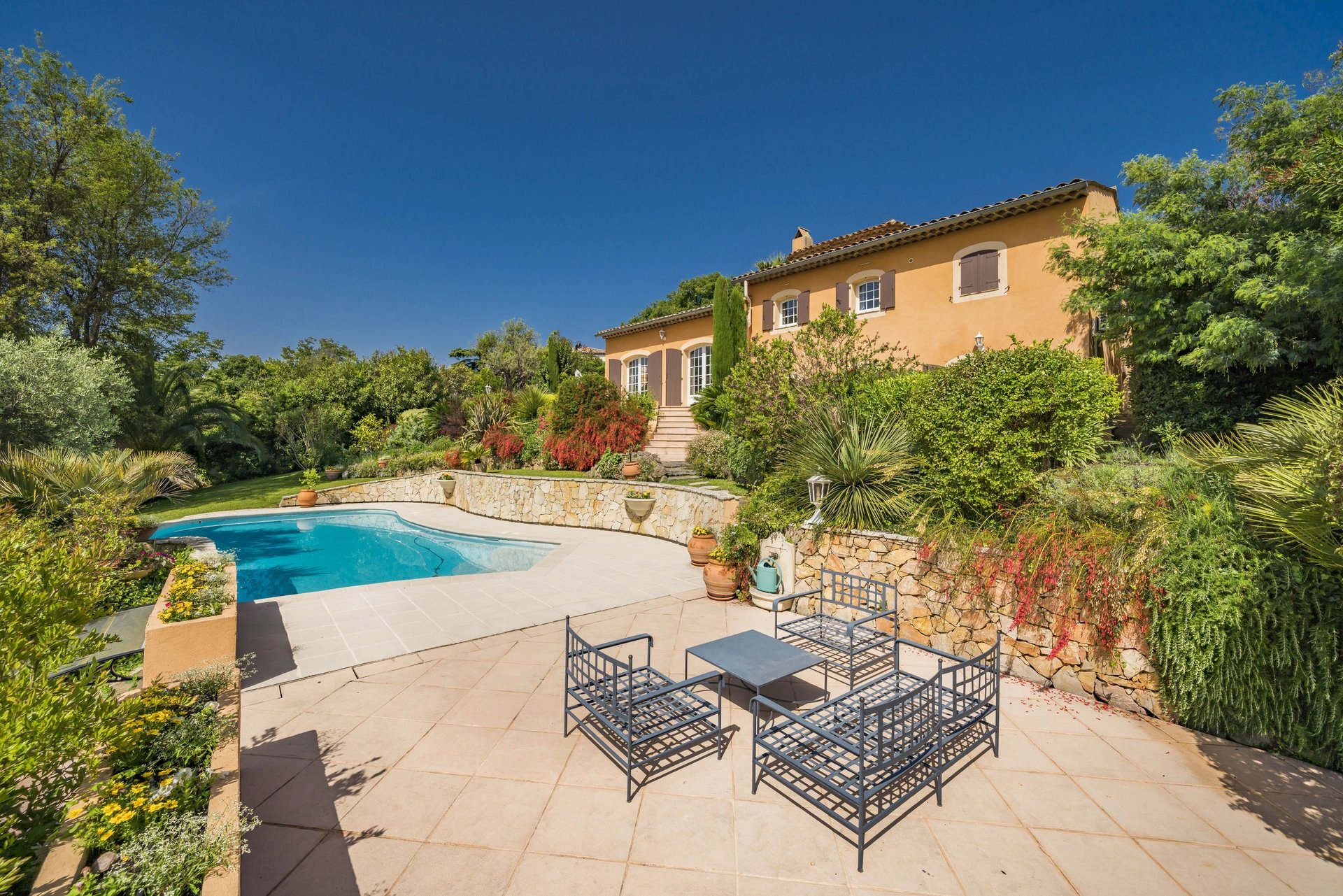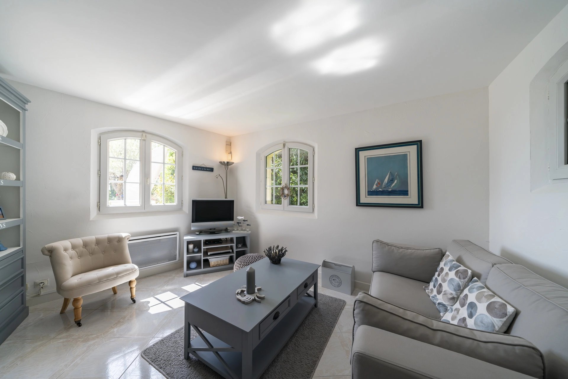 Dans un quartier résidentiel et très recherché, splendide villa de style provençal de +/- 202m² exposée Sud et Est bénéficiant d'une magnifique vue mer. Implantée sur un terrain de 1550 m² joliment complanté(essences méditerranéennes et arbres fruitiers) agrémenté d'une piscine, d'un terrain de pétanque, de plusieurs terrasses et de nombreux emplacements de stationnement, cette villa sans aucun vis à vis est en excellent état intérieur et extérieur. La maison principale comprend une entrée une chambre avec sa salle d'eau et un wc indépendant. Quelques marches mènent à un spacieux séjour - salon avec cheminée et à une grande cuisine dînatoire totalement équipée, enfin un demi-niveau plus bas on retrouve deux chambres de maître (une avec salle d'eau douche italienne et wc et l'autre avec salle de bains et wc). Une véranda aménagée en salon d'été permet l'accès à un deux pièces indépendant offrant sur deux niveaux un salon, une chambre, une salle d'eau avec wc. Une grande buanderie, un espace en sous-sol d'environ 120m² avec de nombreux rangements un garage double pour voitures côte à côte, la climatisation réversible, un adoucisseur d'eau, un système d'alarme et de vidéosurveillance, portail automatique et de nombreuses autres prestations intérieures et extérieures de qualité contribuent au grand confort de cette villa.
