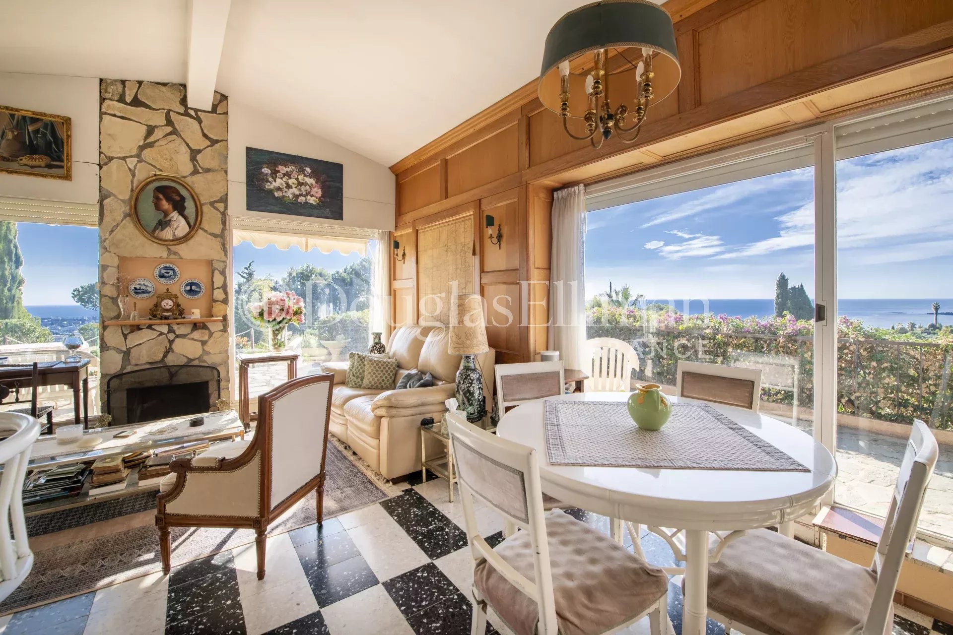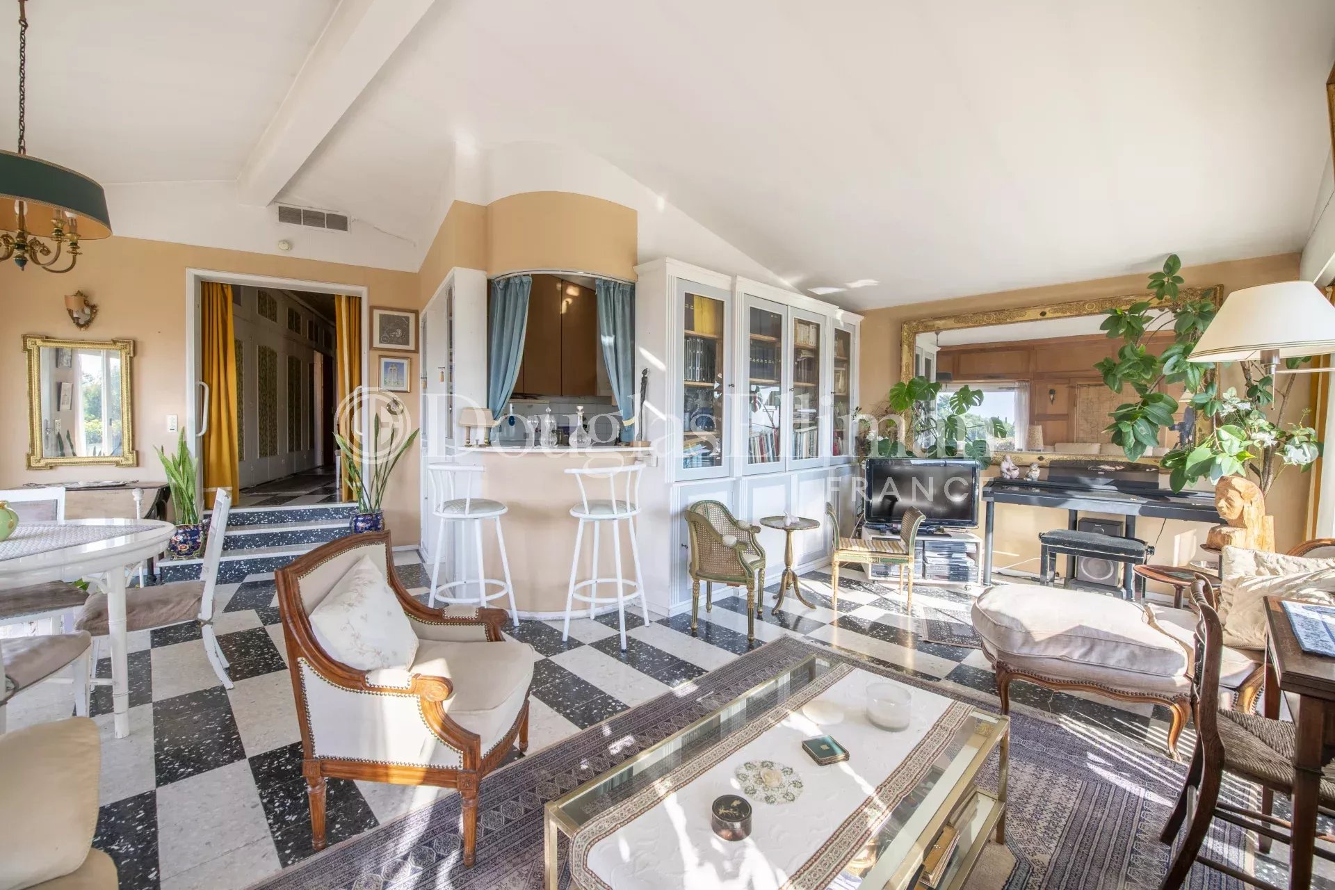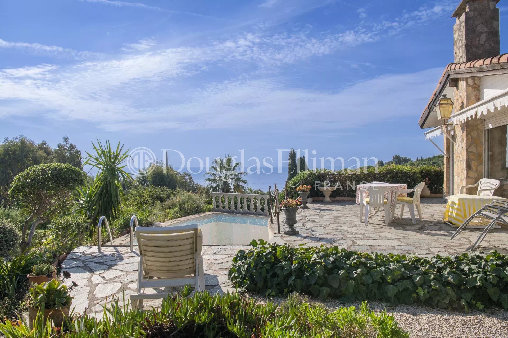 Dans un secteur privilégié au calme absolu, vous découvrirez de cette villa une vue mer panoramique sur la baie de Golfe Juan et jusqu’à l’Italie.