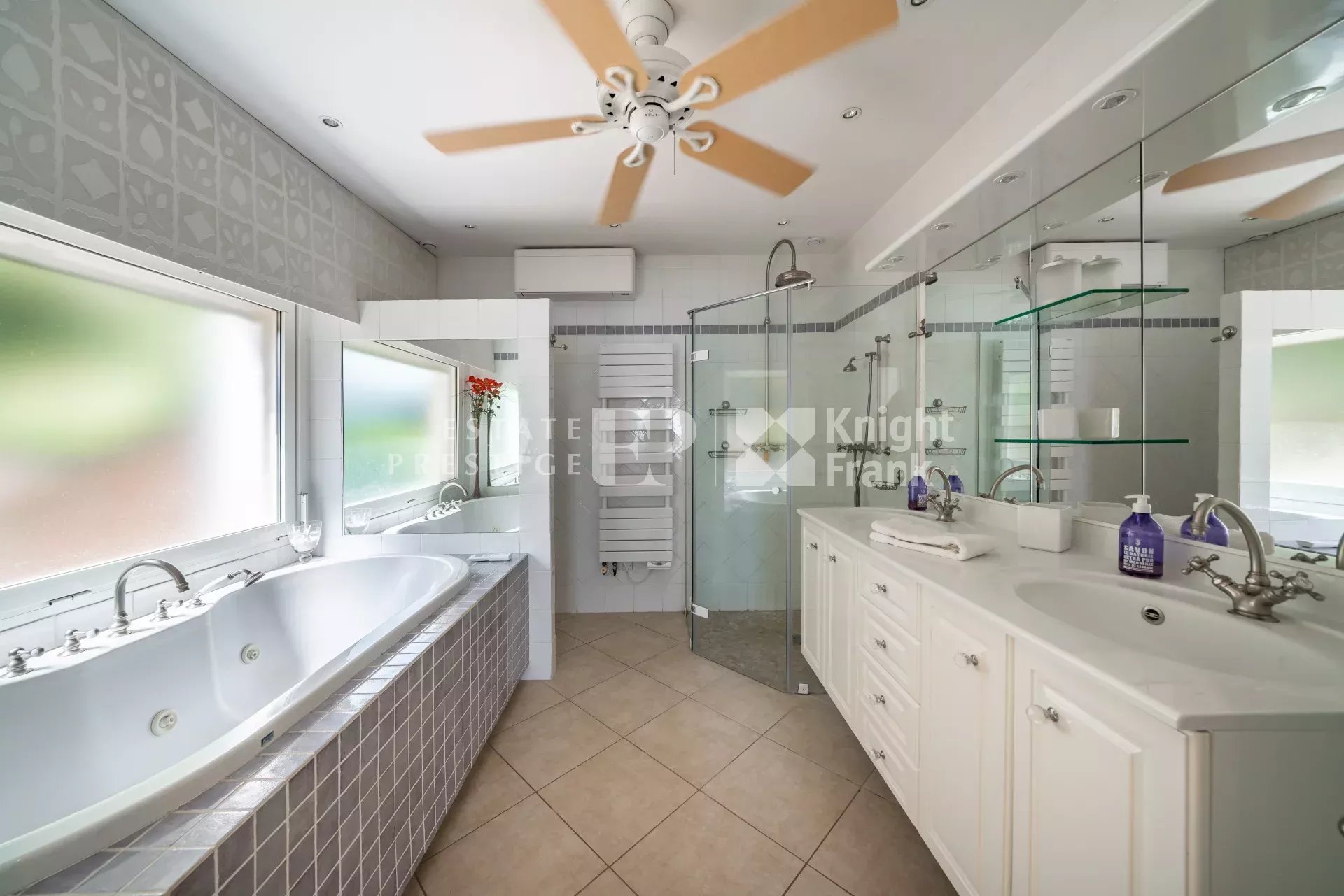 Moderne et lumineuse, la ville dispose d'une piscine chauffée à l'eau salée lotit sur un terrain d'environ 1050m².