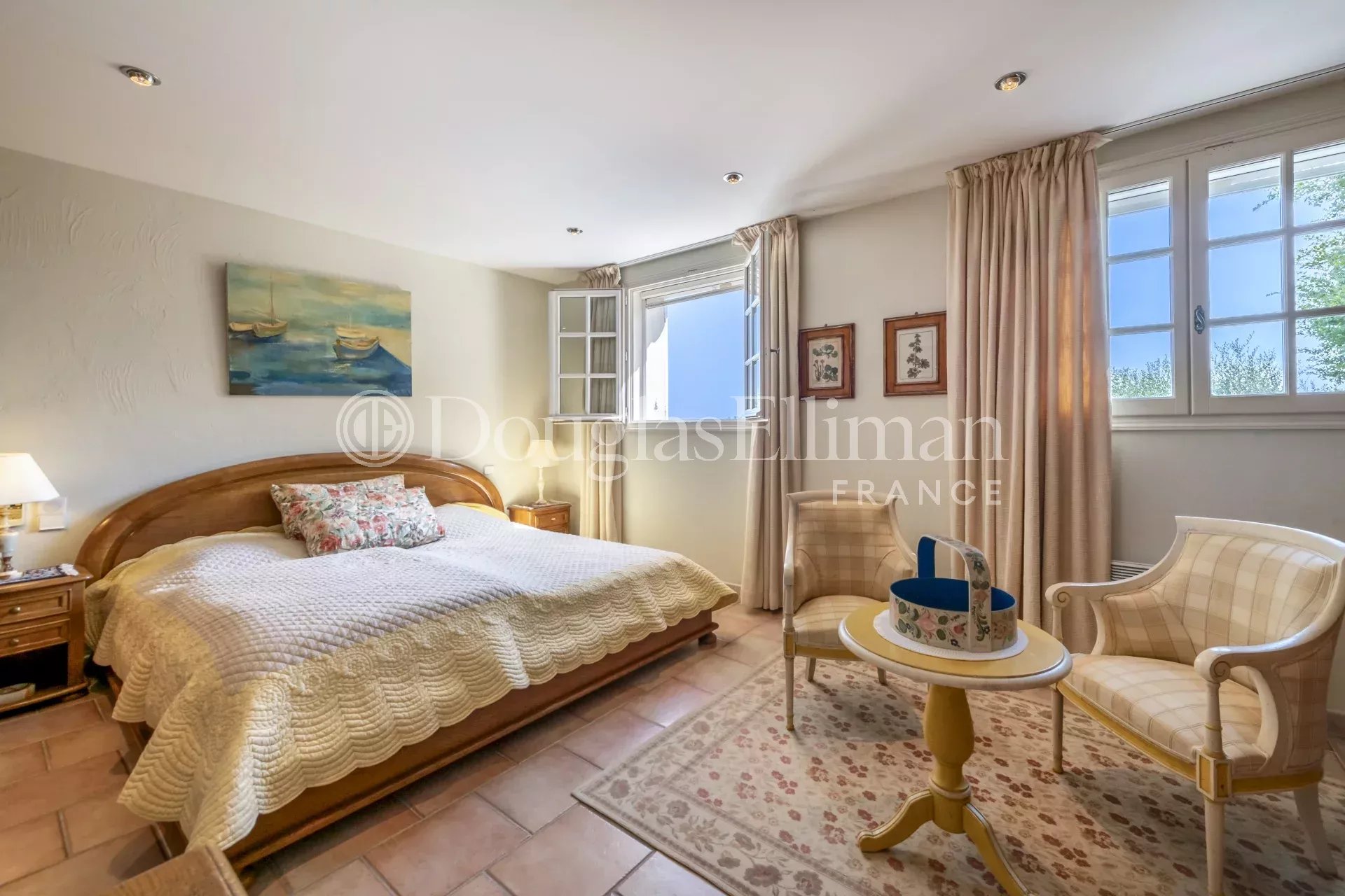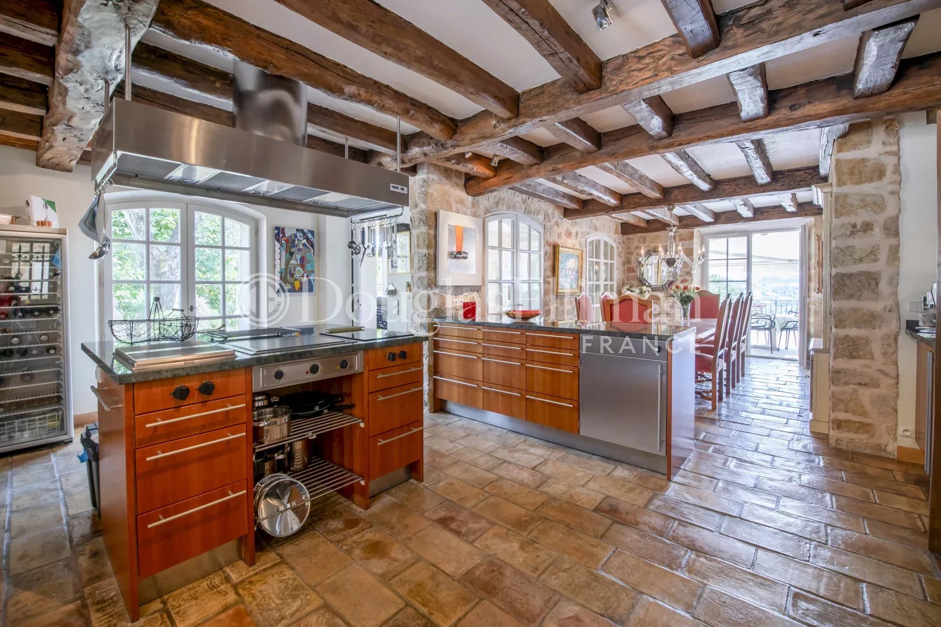 À seulement quelques minutes du charmant vieux village de Valbonne et à 15 minutes de la côte, cette superbe maison en pierre provençale est nichée dans un quartier résidentiel paisible. Elle offre une vue imprenable sur la campagne et bénéficie d'une orientation sud-ouest particulièrement agréable.