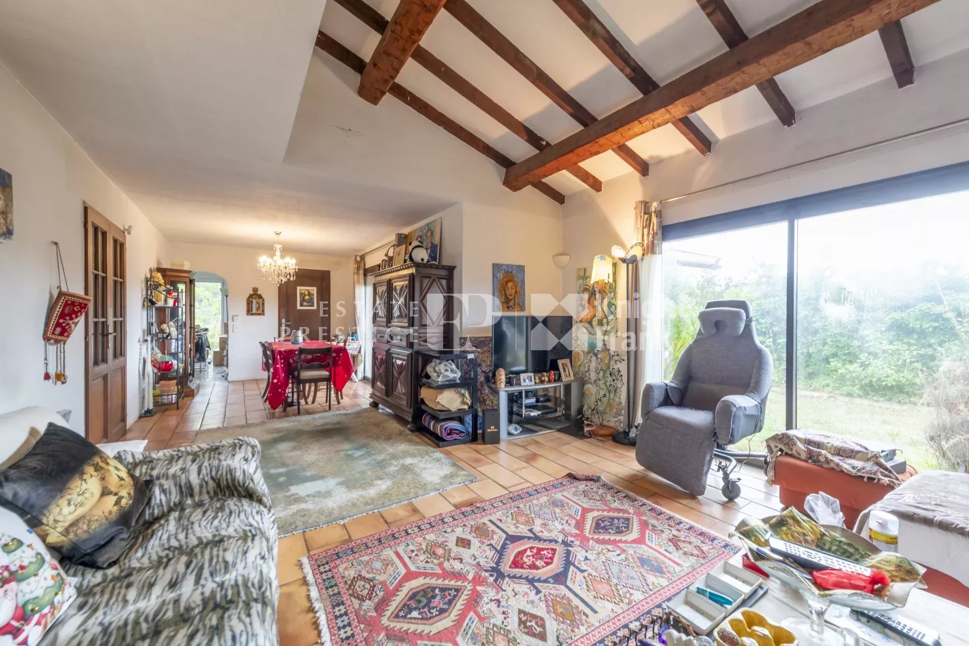 Nous vous présentons cette charmante villa provençale d'environ 250 m², nichée sur un vaste terrain de 3300 m². Située au bout d'une rue paisible, cette propriété offre une tranquillité absolue et une intimité sans vis-à-vis.