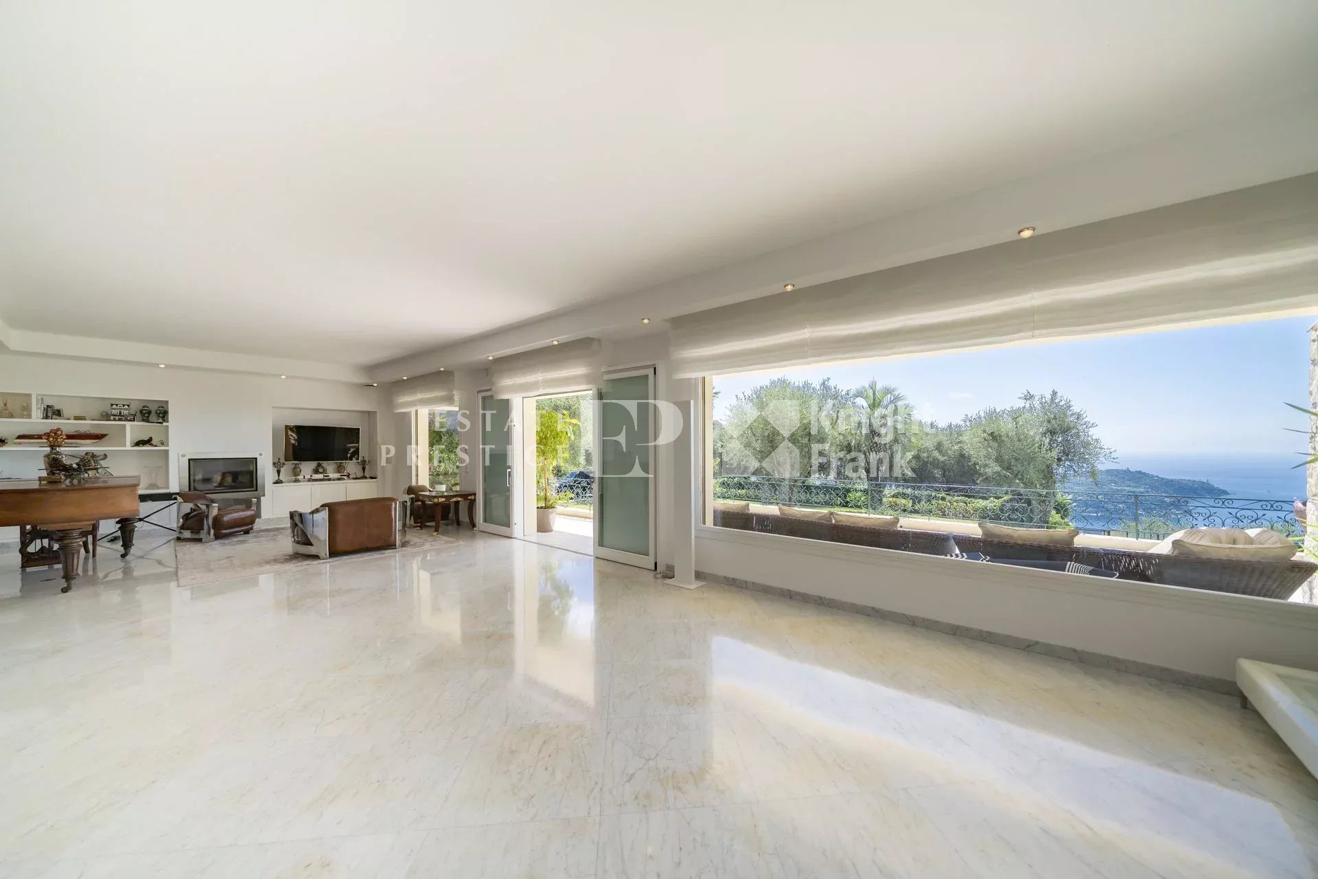 Située à Villefranche-sur-Mer, cette villa de style hispano-mauresque offre une vue panoramique exceptionnelle sur le Cap-Ferrat, la rade de Villefranche et le Mont-Boron. Implantée sur un terrain arboré de 1 583 m² comprenant oliviers, palmiers et agrumes, la propriété dispose d’environ 400 m² habitables sur trois niveaux, orientés plein sud, avec près de 170 m² de terrasses.