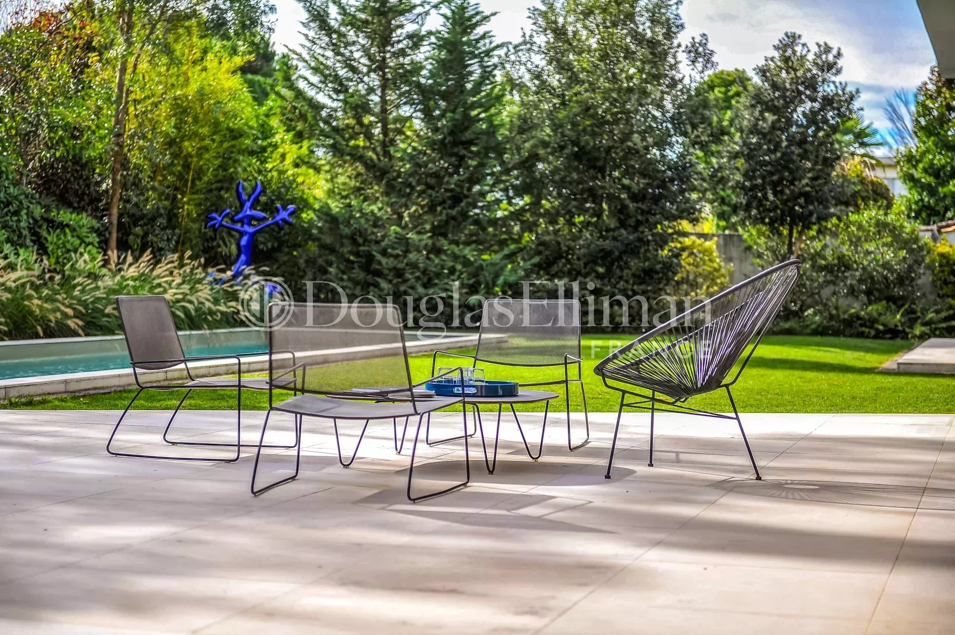 Det er rikelig med plass til terrasser og utendørs opphold. En frodig hage med et hundre år gammelt oliventre er fullt integrert i husets design, i en patio-stil. Parkering er tilgjengelig i garasjen, som har plass til 3 biler. Innkjørselen er via en asfaltert oppkjørsel for ekstra bekvemmelighet. Huset er utstyrt med et overvåkingssystem og hjemmeautomatiseringsutstyr, i tillegg til førsteklasses husholdningsapparater og hi-fi-utstyr.