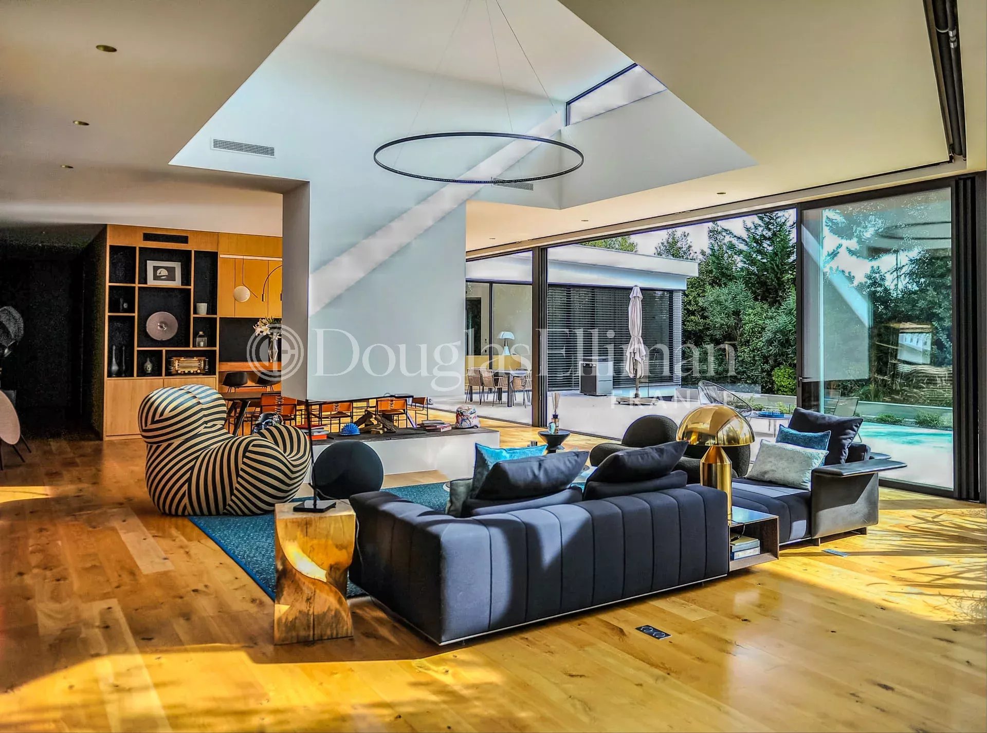 Denne luksusvillaen er svært lys, og den kaliforniske stilen gjør at rommene er så åpne mot utsiden som mulig. Den bryter med tradisjonelle boligkoder for å se på nye perspektiver og investeringer i rom. Den sentrale delen av huset vender utover, slik at du kan bo i et helt åpent rom på fine dager, med direkte utsikt over den sørvendte terrassen og det majestetiske svømmebassenget på 23 meter. Den 137 m2 store stue-/spisestuen og det åpne kjøkkenet er smart adskilt fra hovedoppholdsrommet, men er likevel lett tilgjengelig.