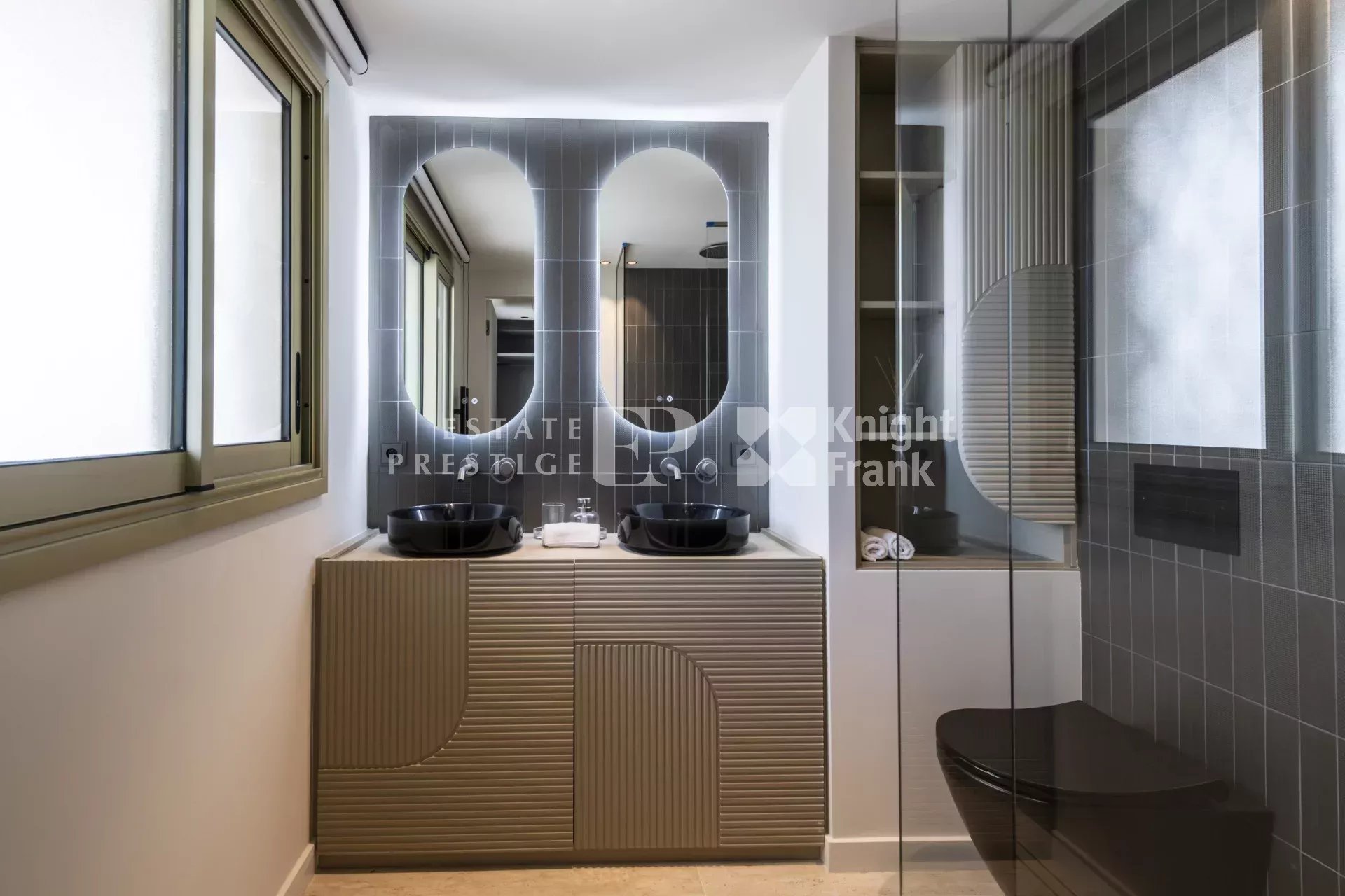 Leiligheten er på nesten 105 m², med trippel eksponering fra de tre terrassene, og består av en stor stue/spisestue med fullt utstyrt kjøkken, et hovedsoverom med omkledningsrom og dusjrom, to soverom med eget bad og et gjestetoalett.
