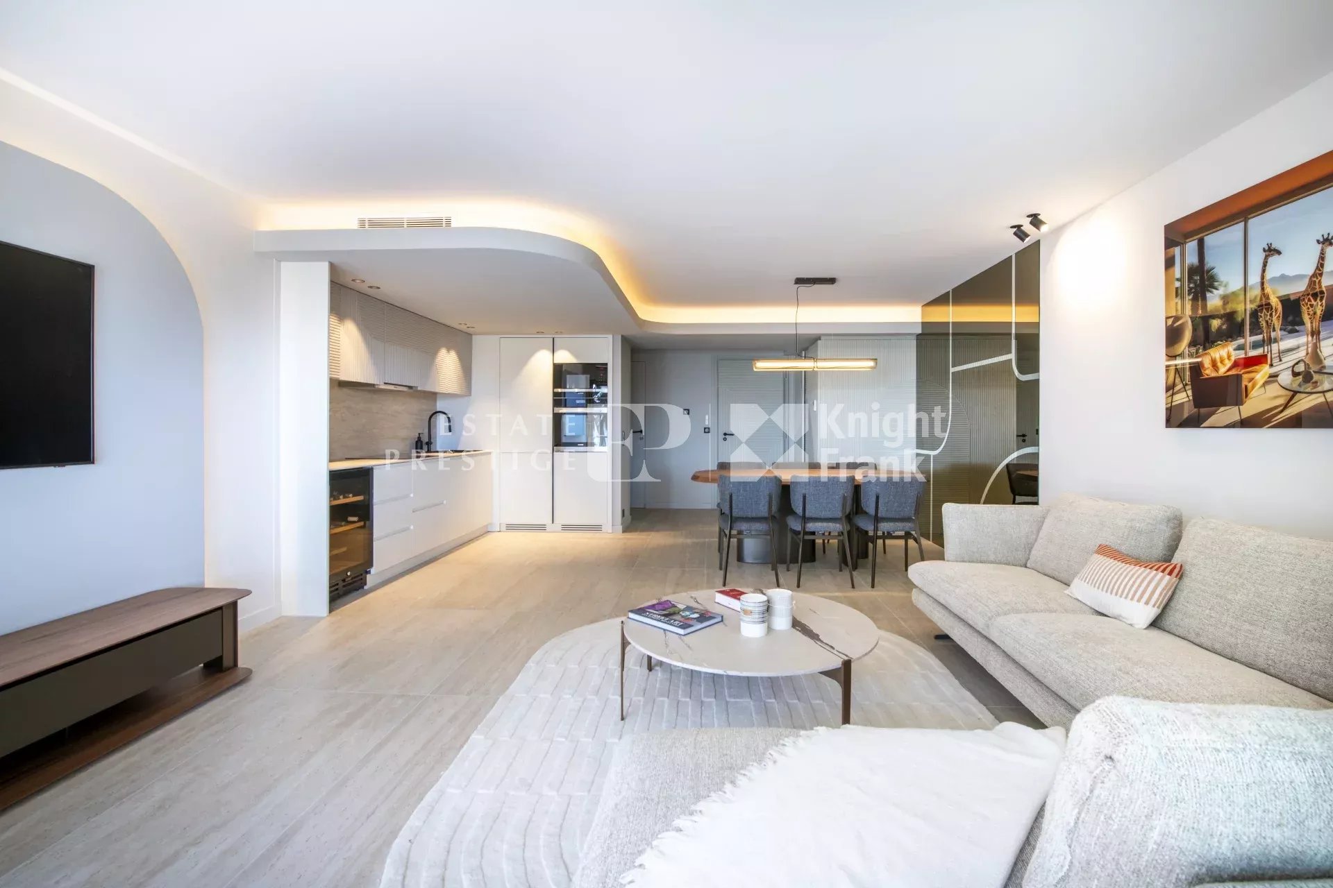 I en av de mest ettertraktede boligene på Pointe Croisette, med perfekt beliggenhet bare noen få skritt fra strendene og luksusbutikkene, ligger denne moderne leiligheten, totalrenovert med kvalitetsmaterialer og raffinert moderne innredning, med nydelig, uhindret utsikt over Middelhavet.