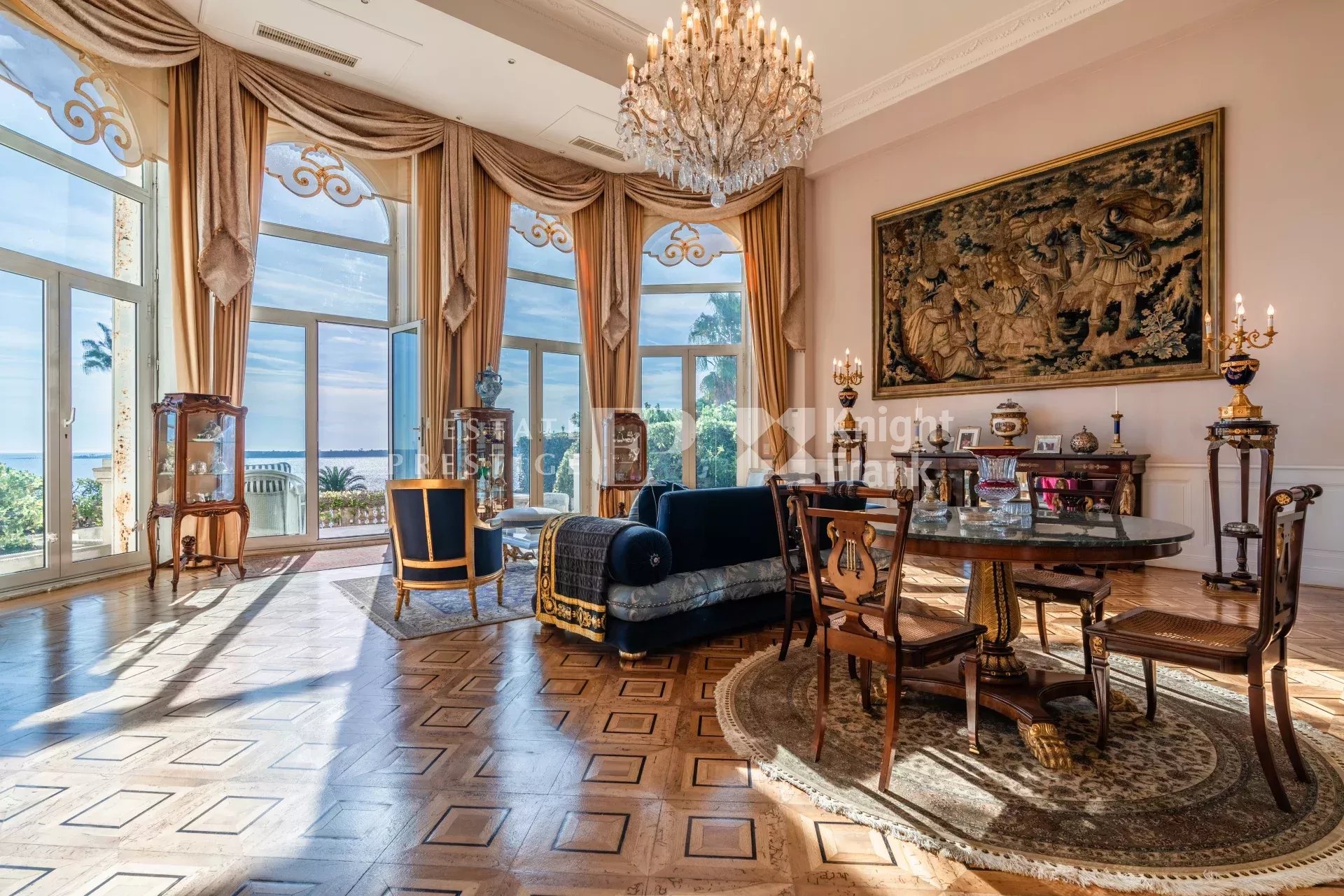 I det svært ettertraktede Basse Californie-distriktet ligger denne praktfulle leiligheten/villaen i en overdådig historisk bolig i Belle Époque-stil fra slutten av 1800-tallet med en fortryllende panoramautsikt over Middelhavet og Lérins-øyene.