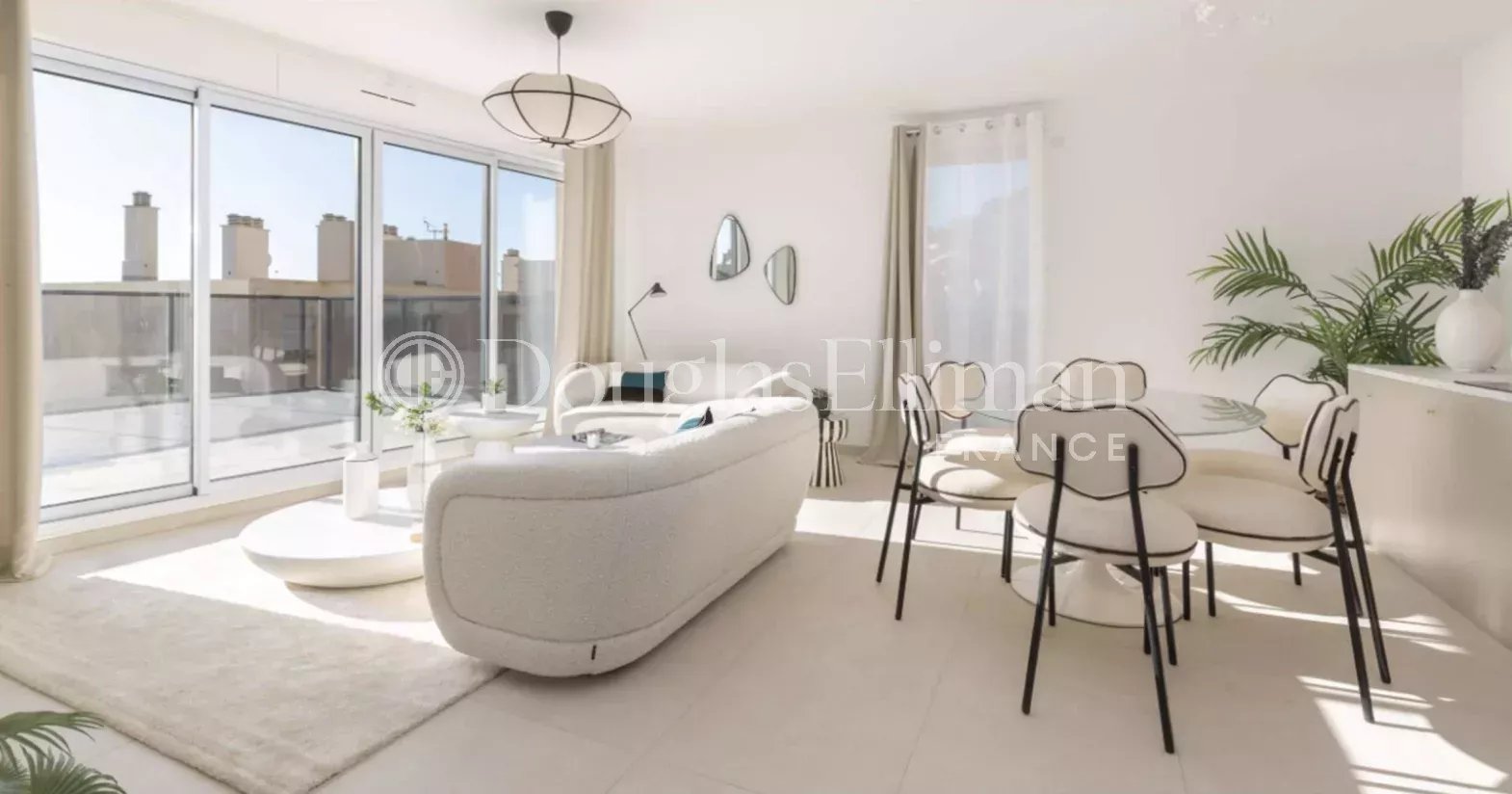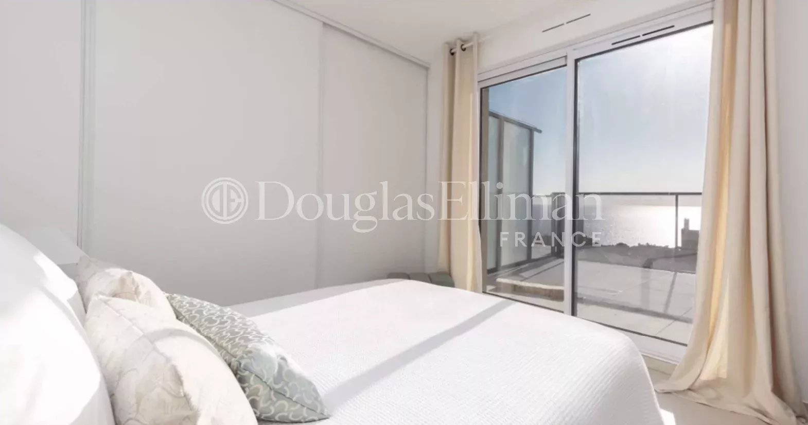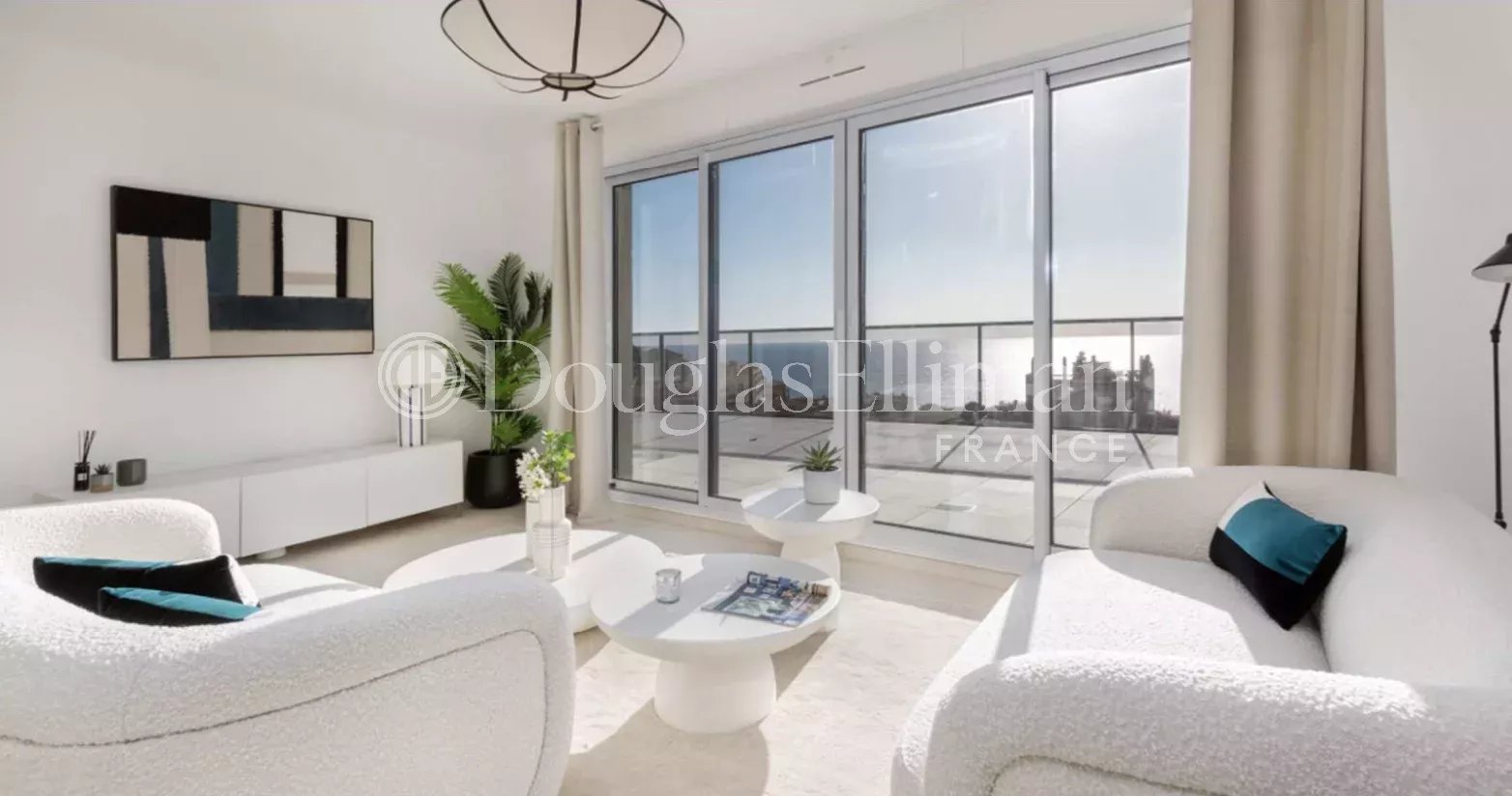 Oppdag denne praktfulle toppleiligheten i hjertet av Cap-d'Ail: 94 m² boareal med en 40 m² stor takterrasse med uforstyrret utsikt over havet og Cap Ferrat.