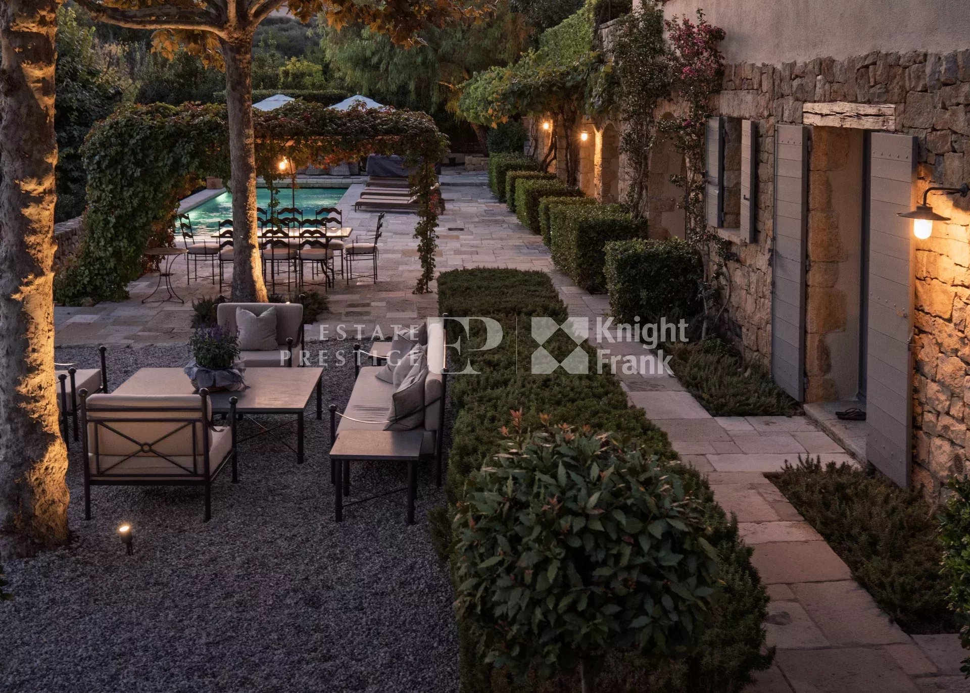 Beliggende på en ekspansiv tomt på 6.673 m², har eiendommen en fantastisk olivenlund på 4.000 m², en vakkert anlagt rosehage og en nylig renovert boulebane med tømmerdetaljer.