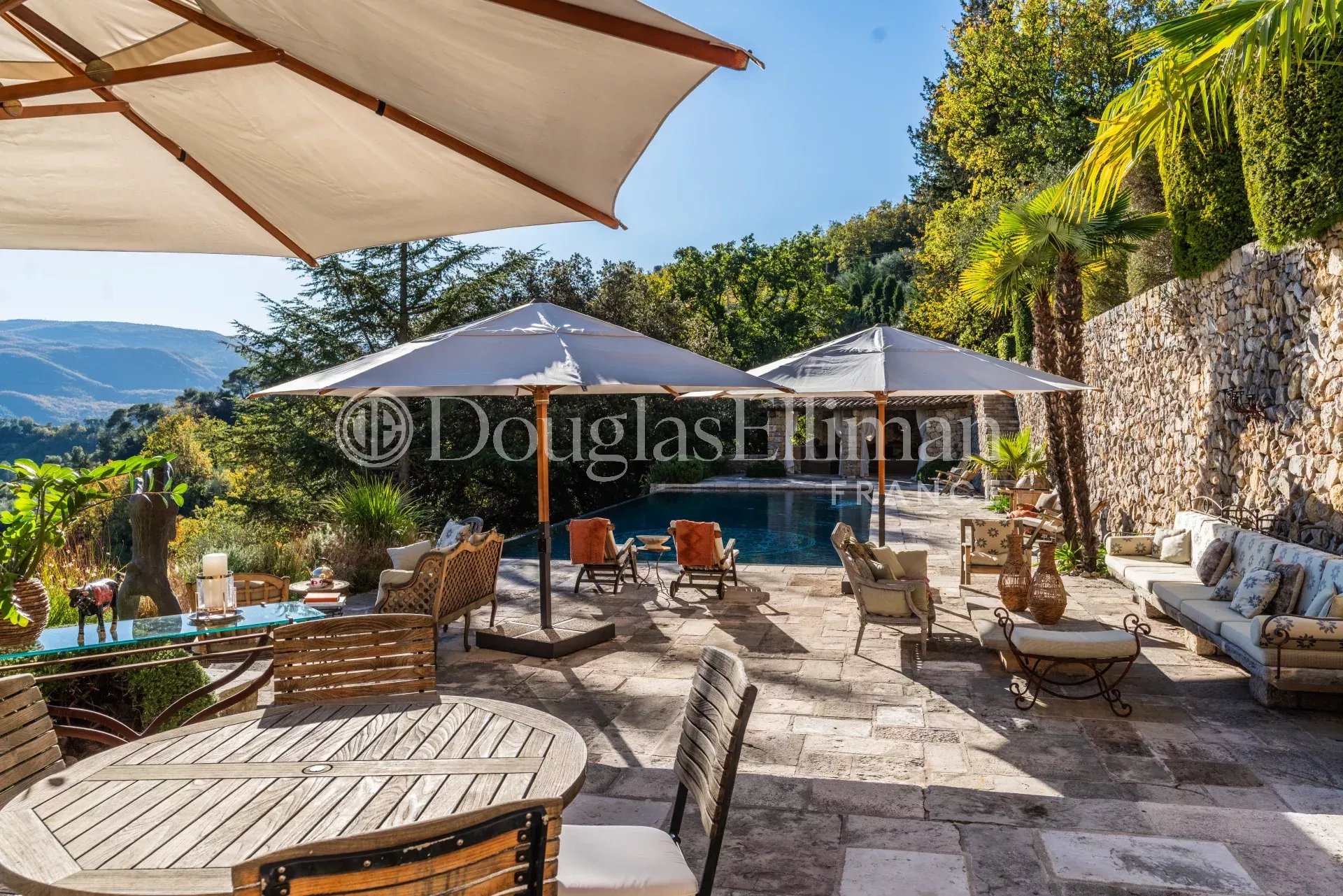 Utsøkt eiendom: restaurert mølle i det pittoreske innlandet i Nice, bare 35 minutter fra den internasjonale flyplassen og strendene. Denne nøye renoverte bastiden har en hovedbygning på ca. 540 m² som ligger i hjertet av en olivenolje- og melmølle fra 1300-tallet, som ble fullstendig ombygd i 2010.