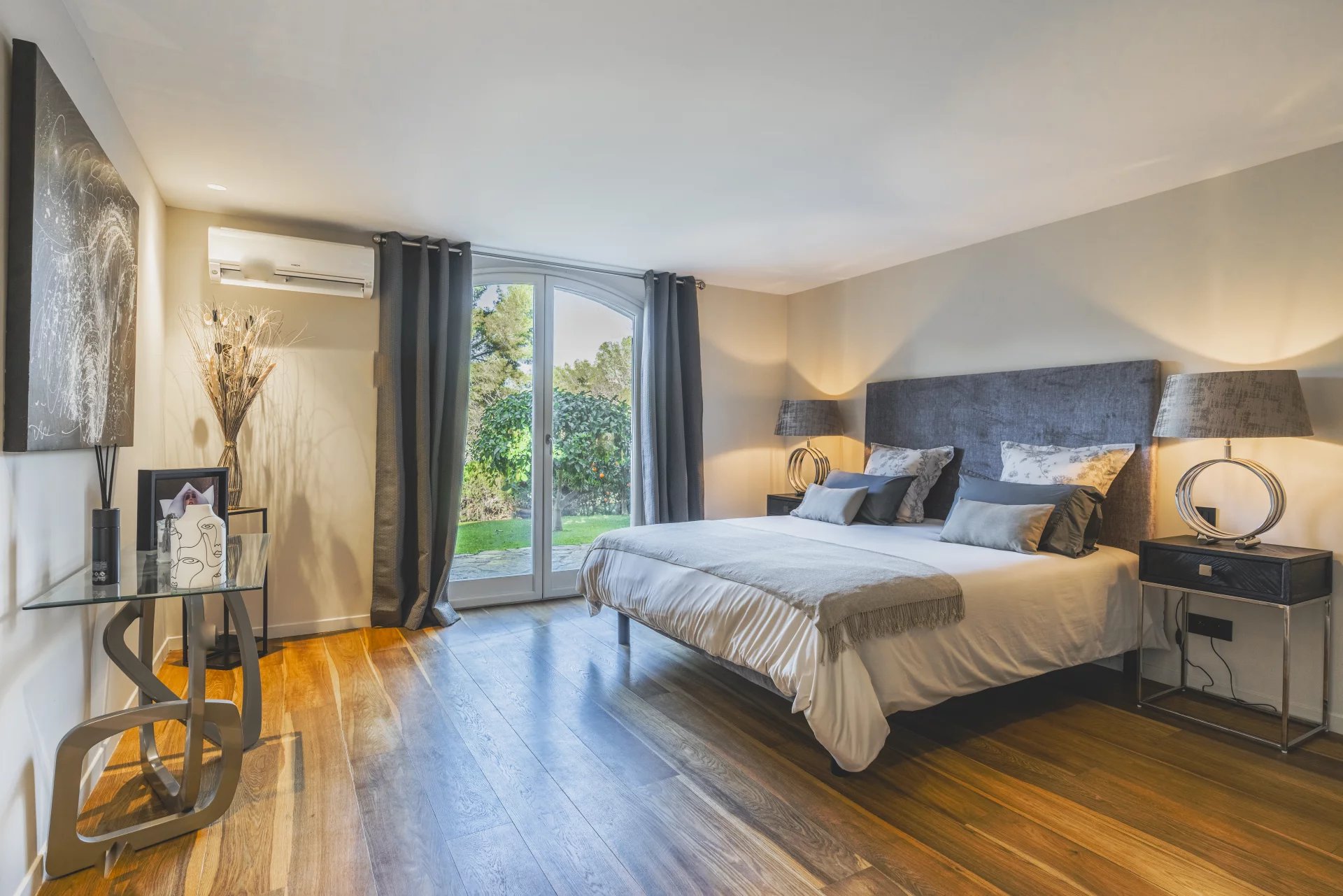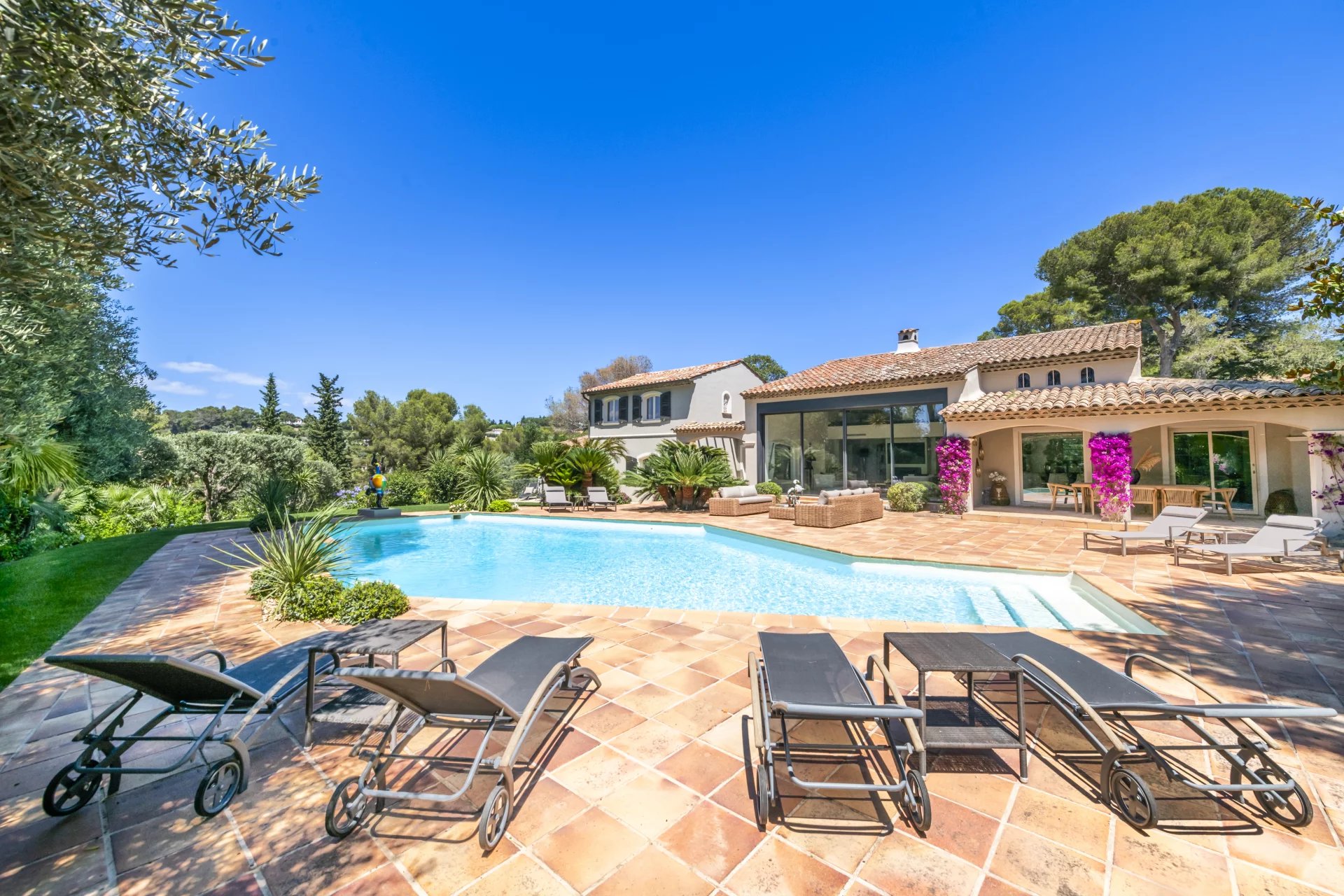 Praktisk plassert kun 15 minutter fra strendene ved La Croisette, strekker denne upåklagelig renoverte eiendommen seg over 430m² og ligger i et rolig og ettertraktet nabolag i Mougins. Plassert i et prestisjetungt område, skryter den av moderne fasiliteter og materialer av høy kvalitet.