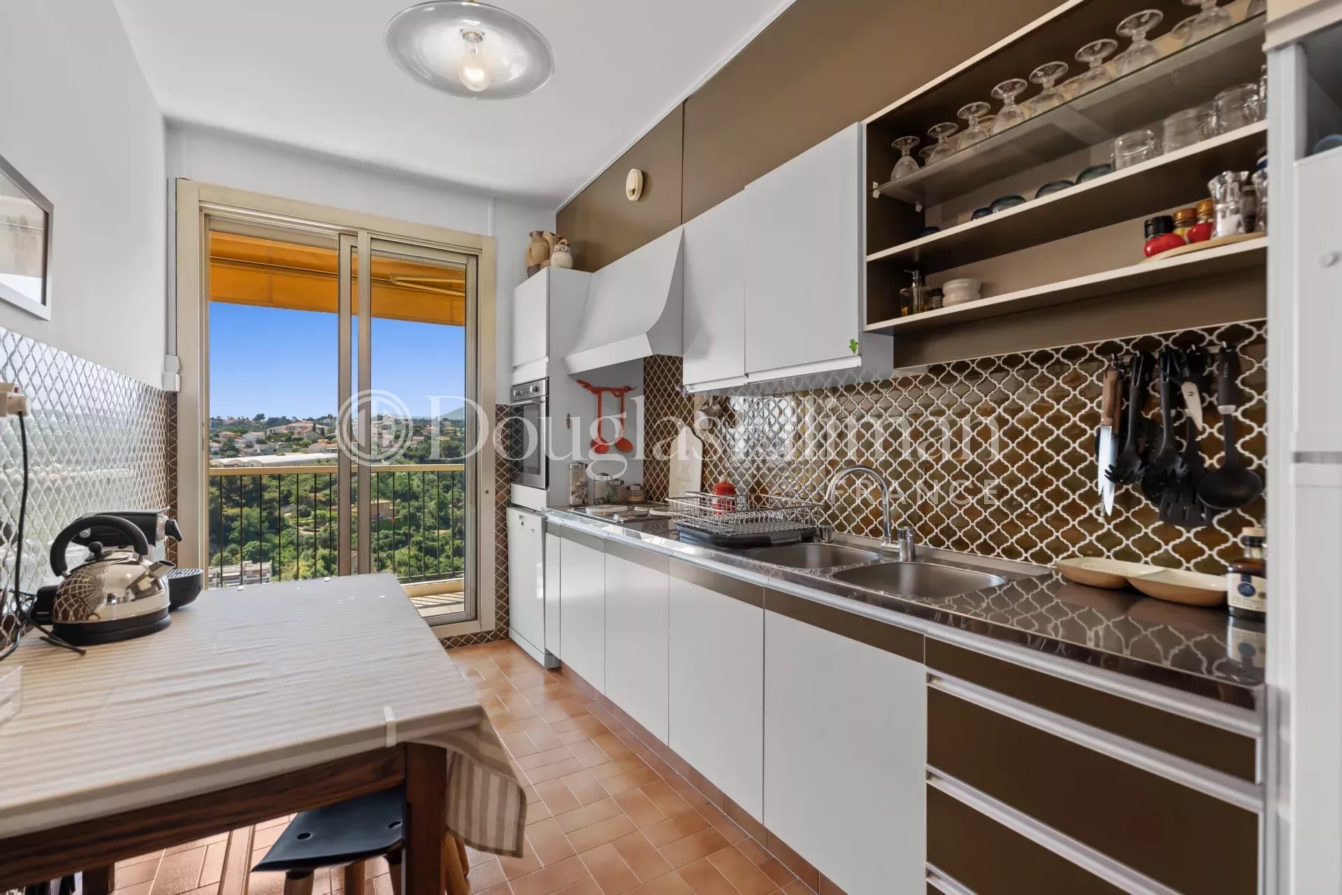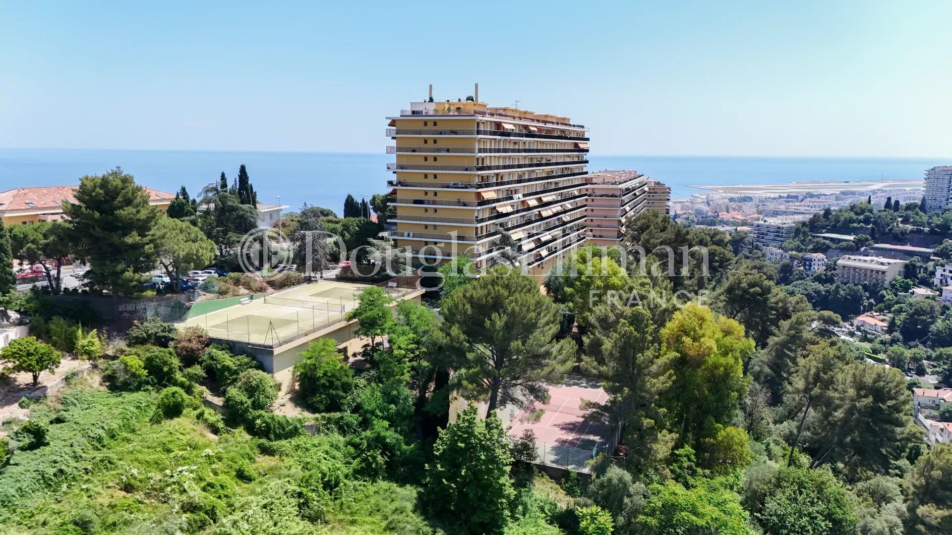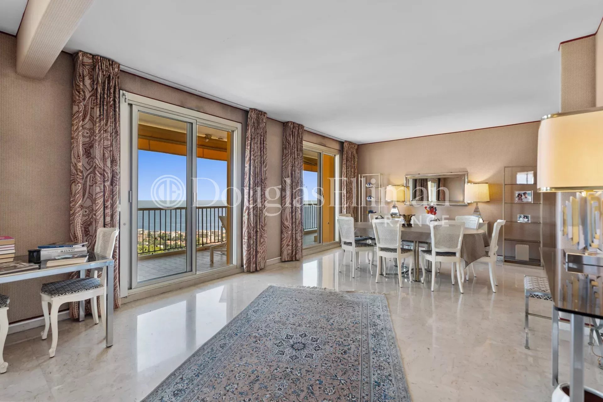Resultatet av å kombinere to leiligheter tilbyr sjenerøse volumer, to innganger og en fantastisk panoramautsikt som strekker seg fra Cap Ferrat over Baie des Anges til Cap d'Antibes.