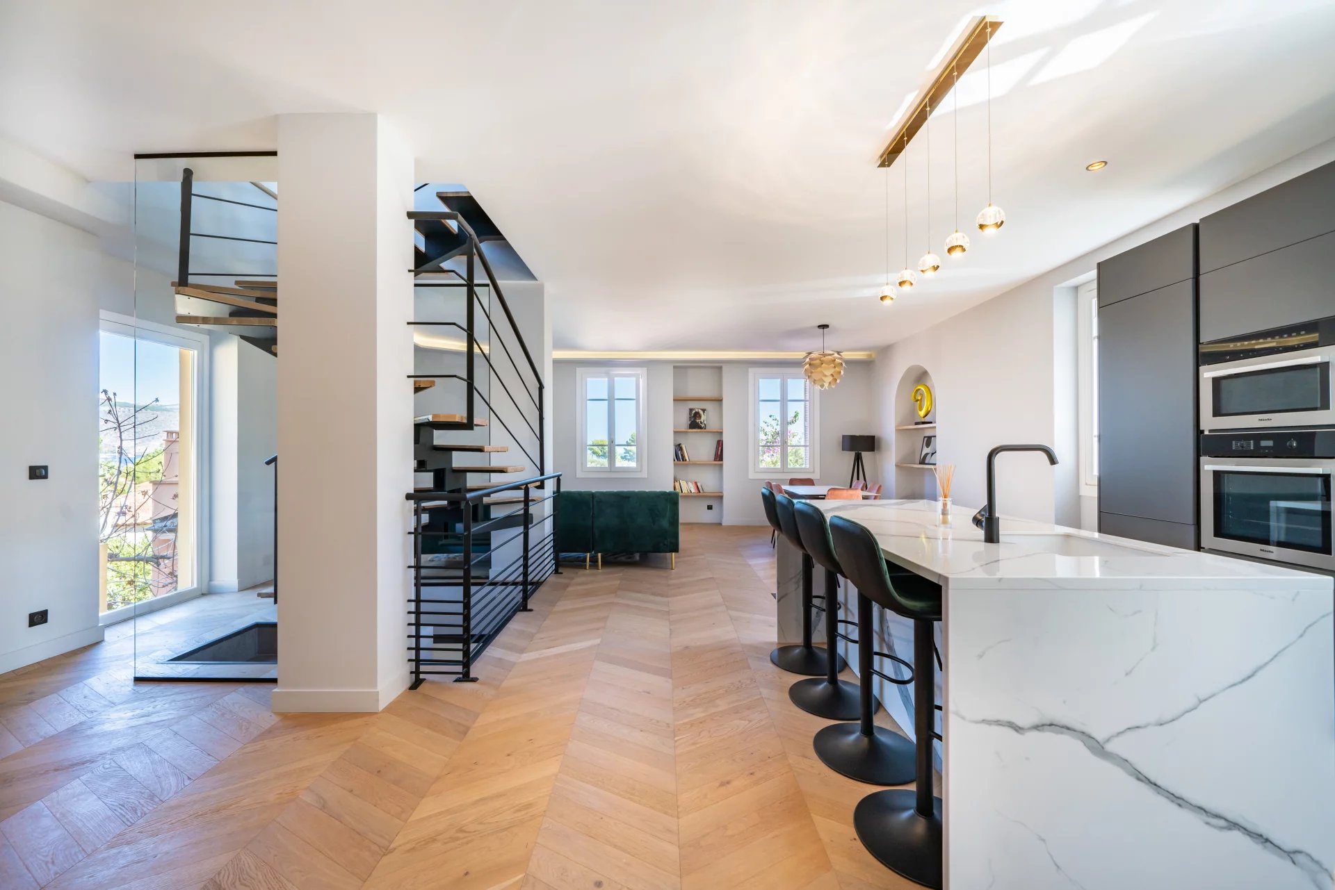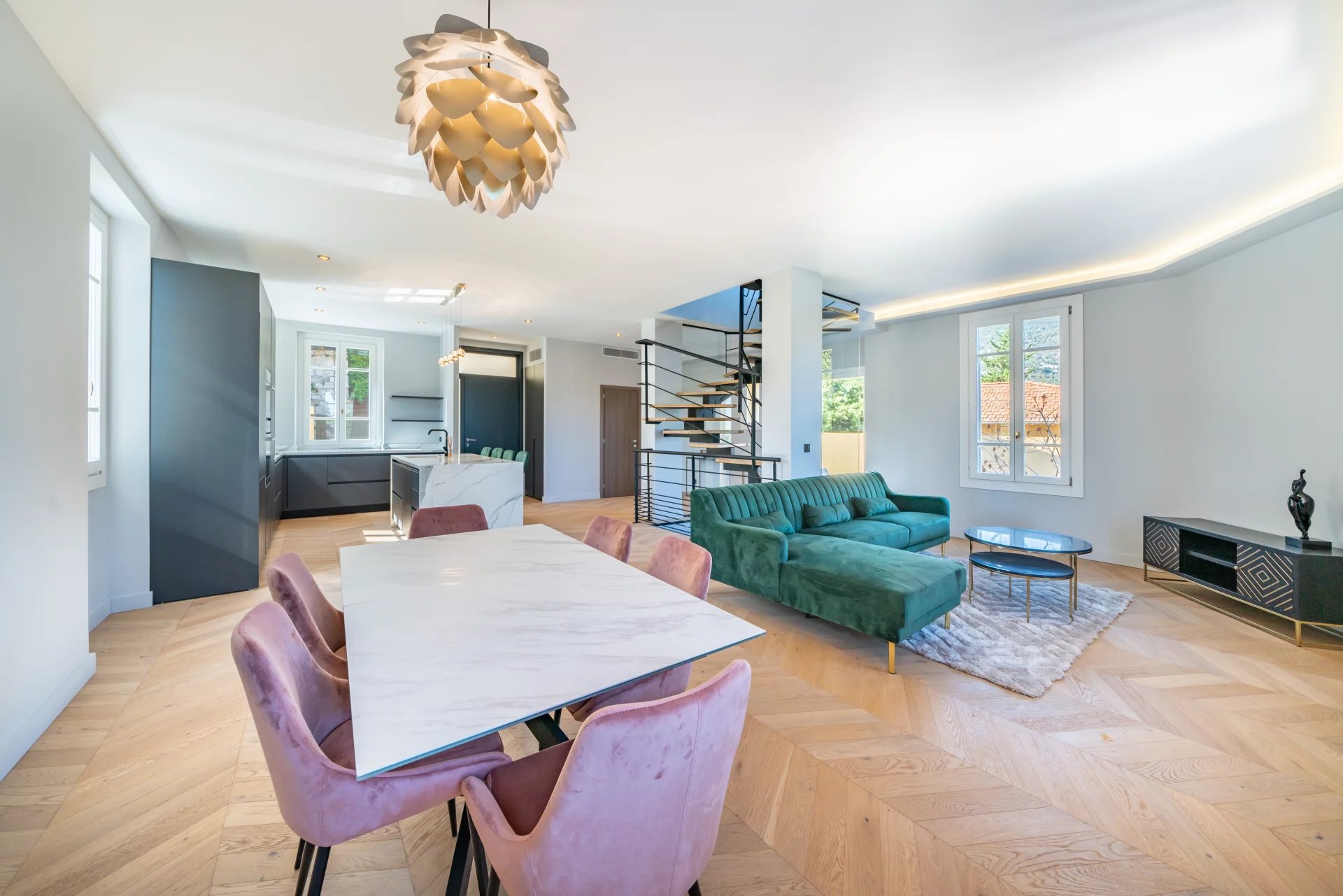 Ideell beliggenhet, nær sentrum og havet til fots, har denne vakre villaen på ca 230 m2 på tre plan blitt totalrenovert med kvalitetsmaterialer i en moderne og elegant ånd. Den består i første etasje, et romslig og moderne resepsjonsrom som åpner ut mot en utendørs terrasse, med spiseplass, åpent kjøkken og gjestetoalett. I første etasje har et vakkert hovedsoverom en balkong med havutsikt og et stort bad. To andre soverom deler et andre bad. Første etasje, under hovednivået, inkluderer et innendørsbasseng som åpner seg gjennom store vinduer mot en terrasse, en badstue og et dusjrom. Mulighet for å utvikle et idrettsområde på dette nivået. En liten uavhengig innkvartering og en parkeringsplass fullfører denne eiendommen.