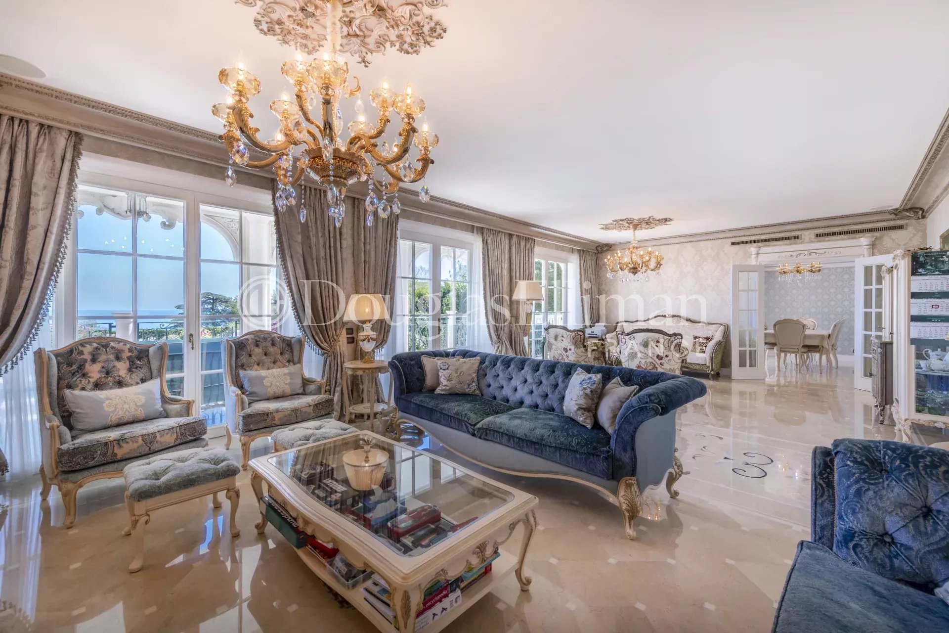 Denne praktfulle villaen på 600 m2 ligger i det svært ettertraktede Super Cannes-området, bare ti minutter fra Cannes sentrum, Croisetten og strendene, og vender mot sør med panoramautsikt over havet helt til Cap d'Antibes. Eiendommen har en flat tomt på 2300 m2 med et praktfullt svømmebasseng og en vakkert vedlikeholdt hage med frodig middelhavsvegetasjon, mange vakre blomster og velstelte plener. Den har 3 nivåer: