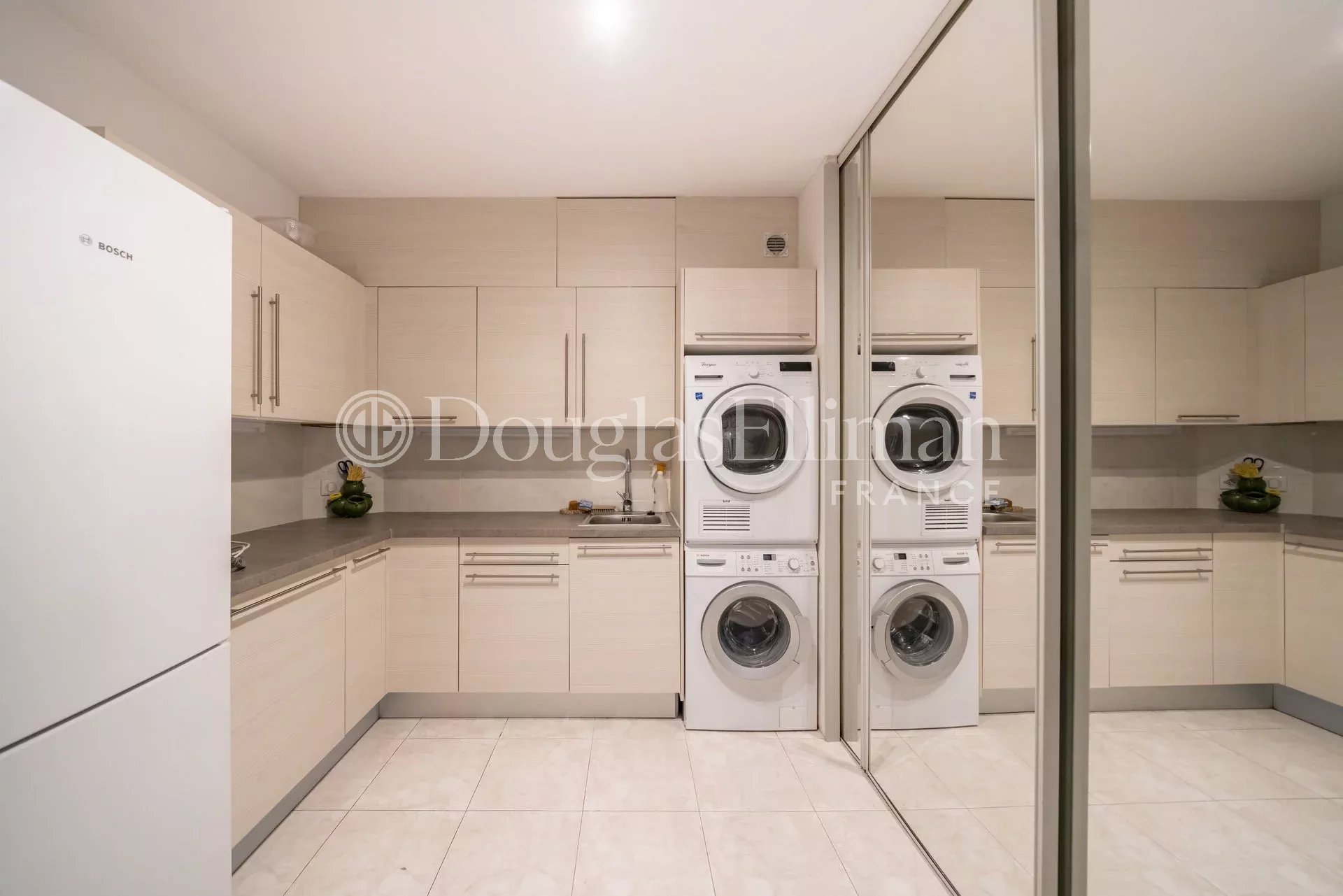 Garasje for 2 biler, parkeringsplass for sevearl biler, luftkondisjonering, alarm- og videoovervåkingssystem, vannmykner, elektrisk port.