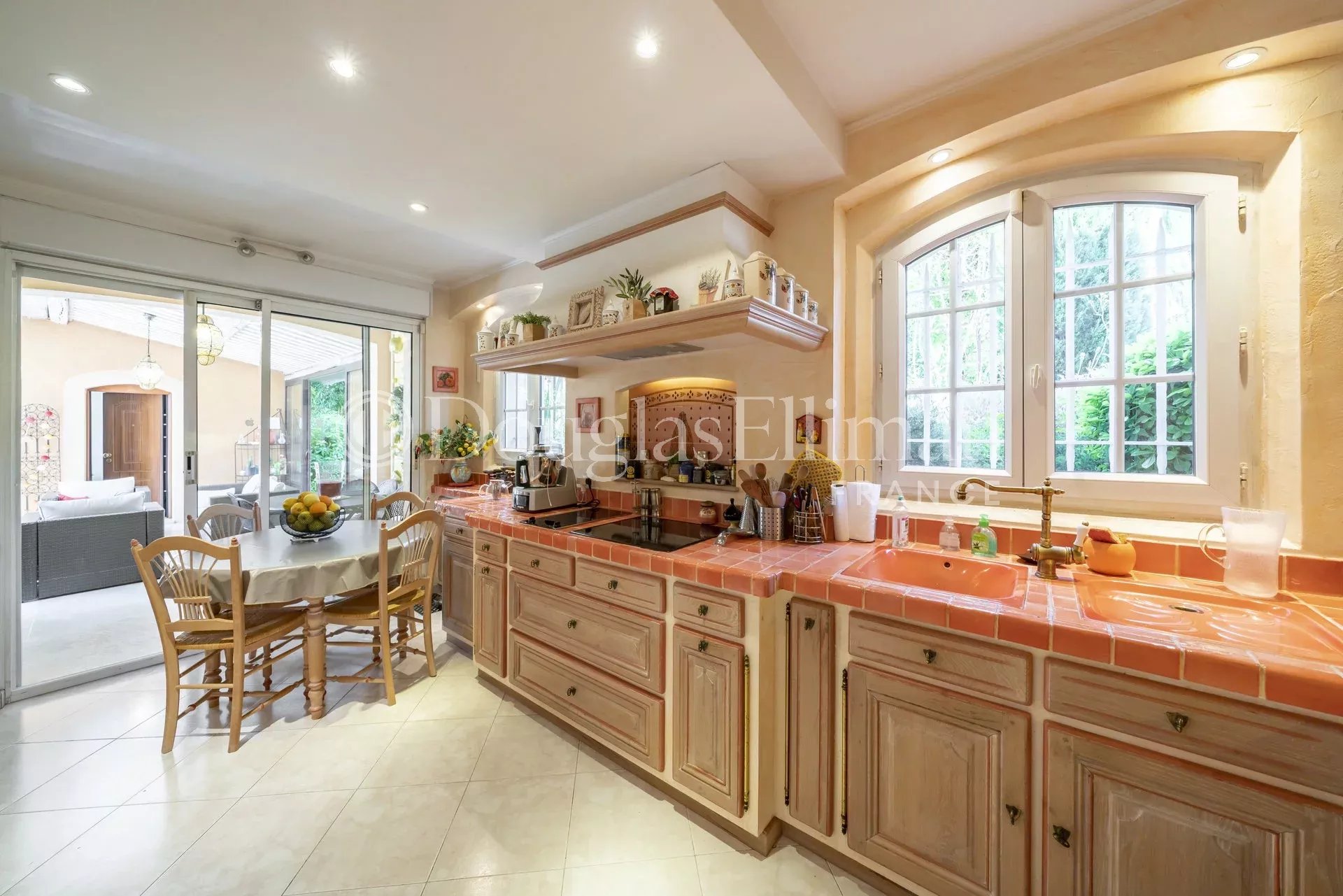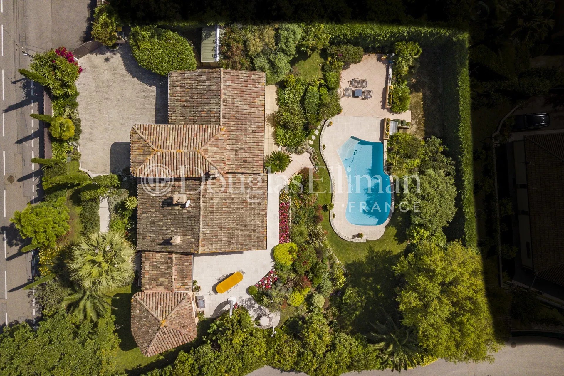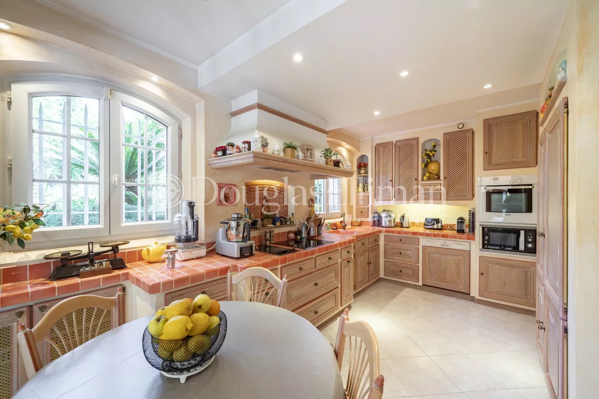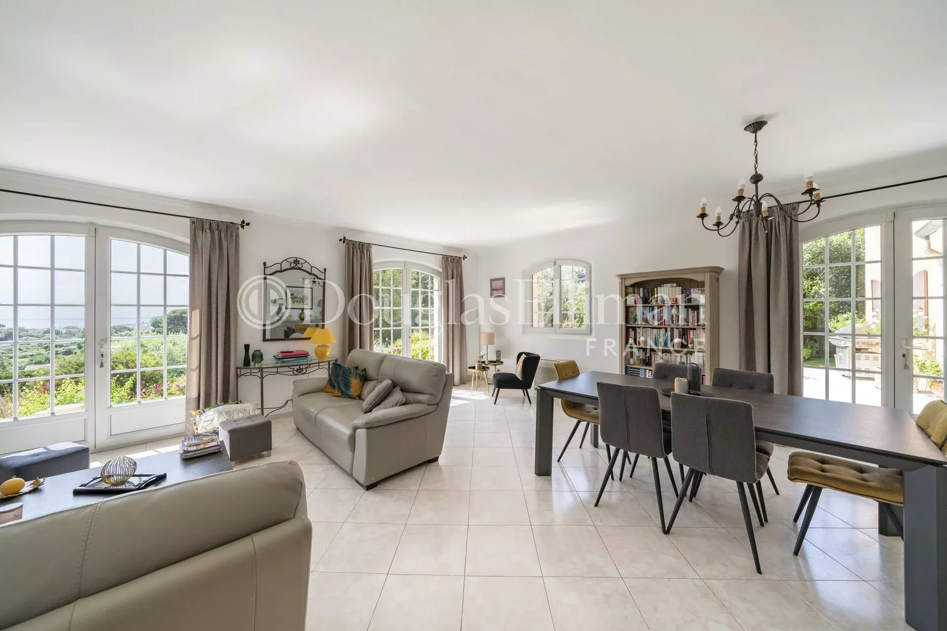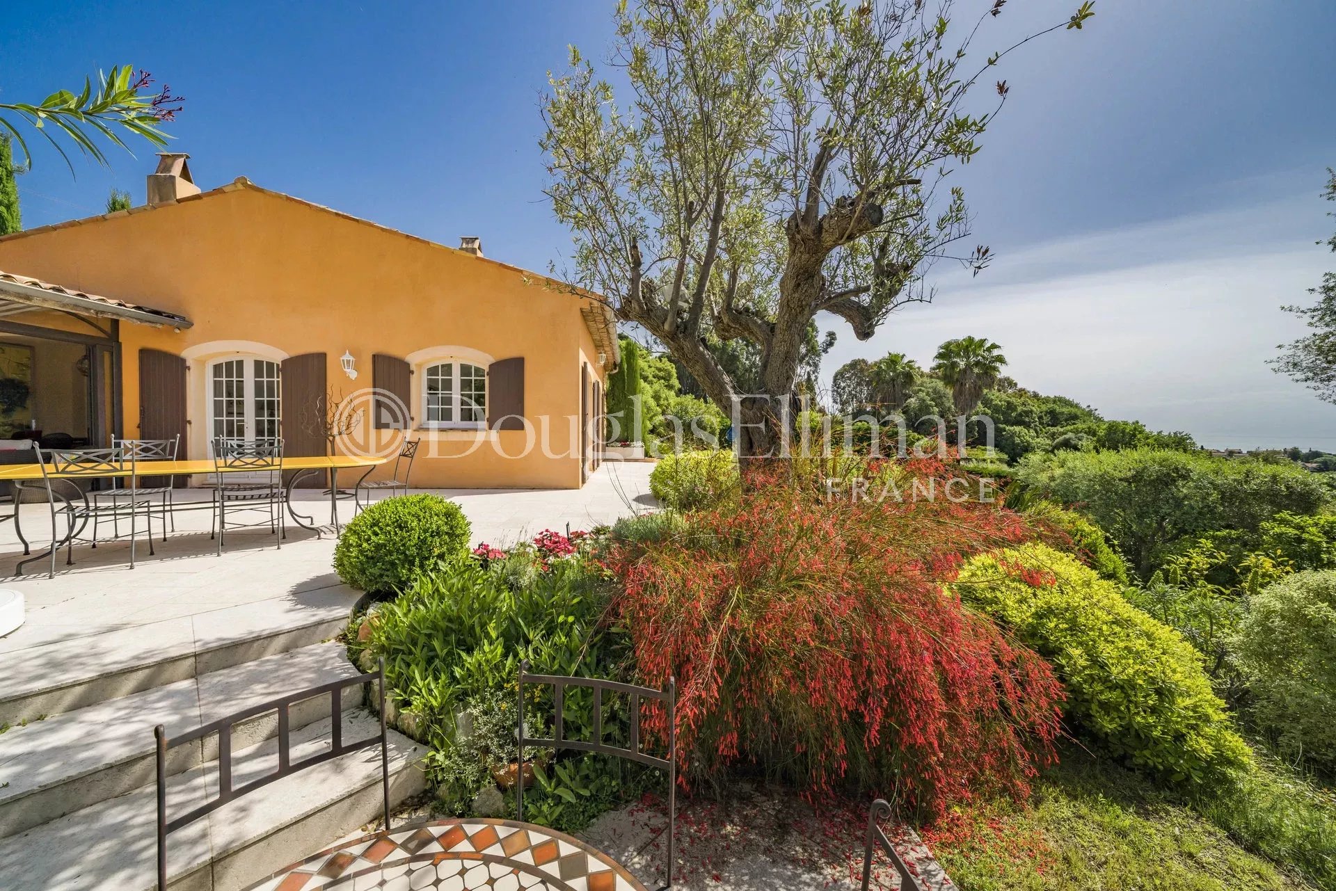 I et rolig område, kort vei til motorvei A8 og forskjellige fasiliteter, vakker villa i provencalsk stil på rundt 202 kvm boareal med praktfull utsikt over havet og omgivelsene, i utmerket tilstand, med moden hage på 1550 kvm, svømmebasseng og petanquestripe. Sørlig og østlig eksponering, mange koselige terrasser hvor du kan nyte solen, utsikten og roen.