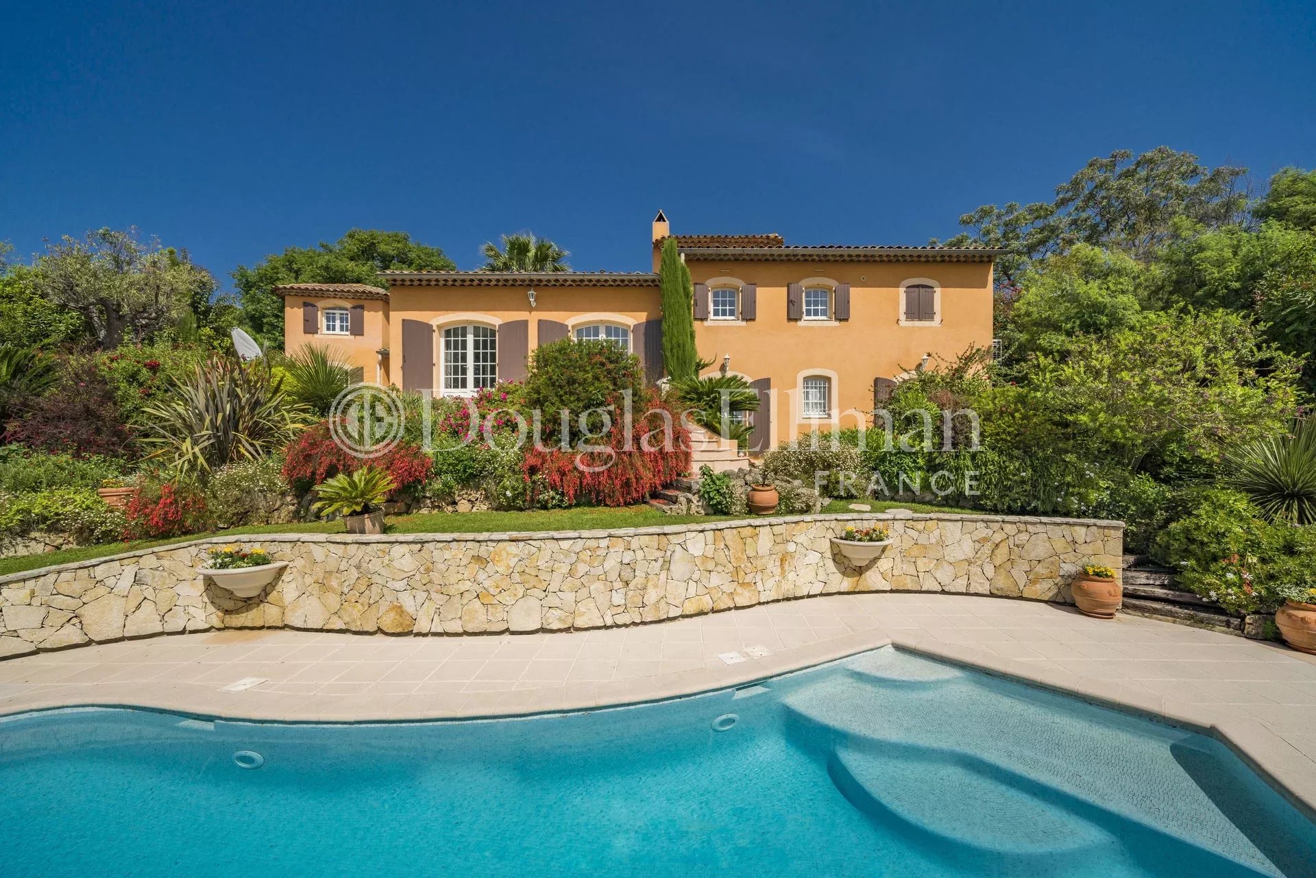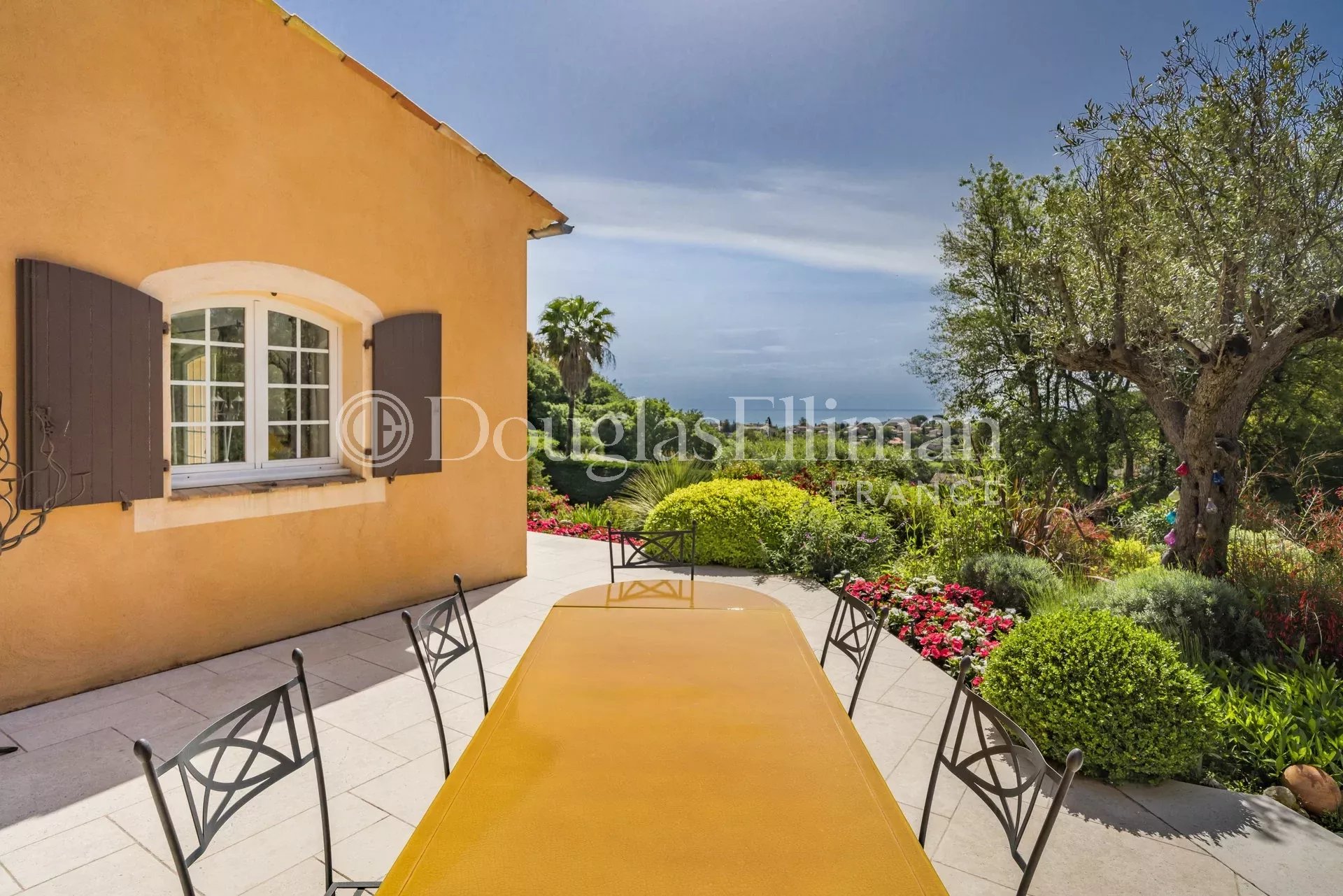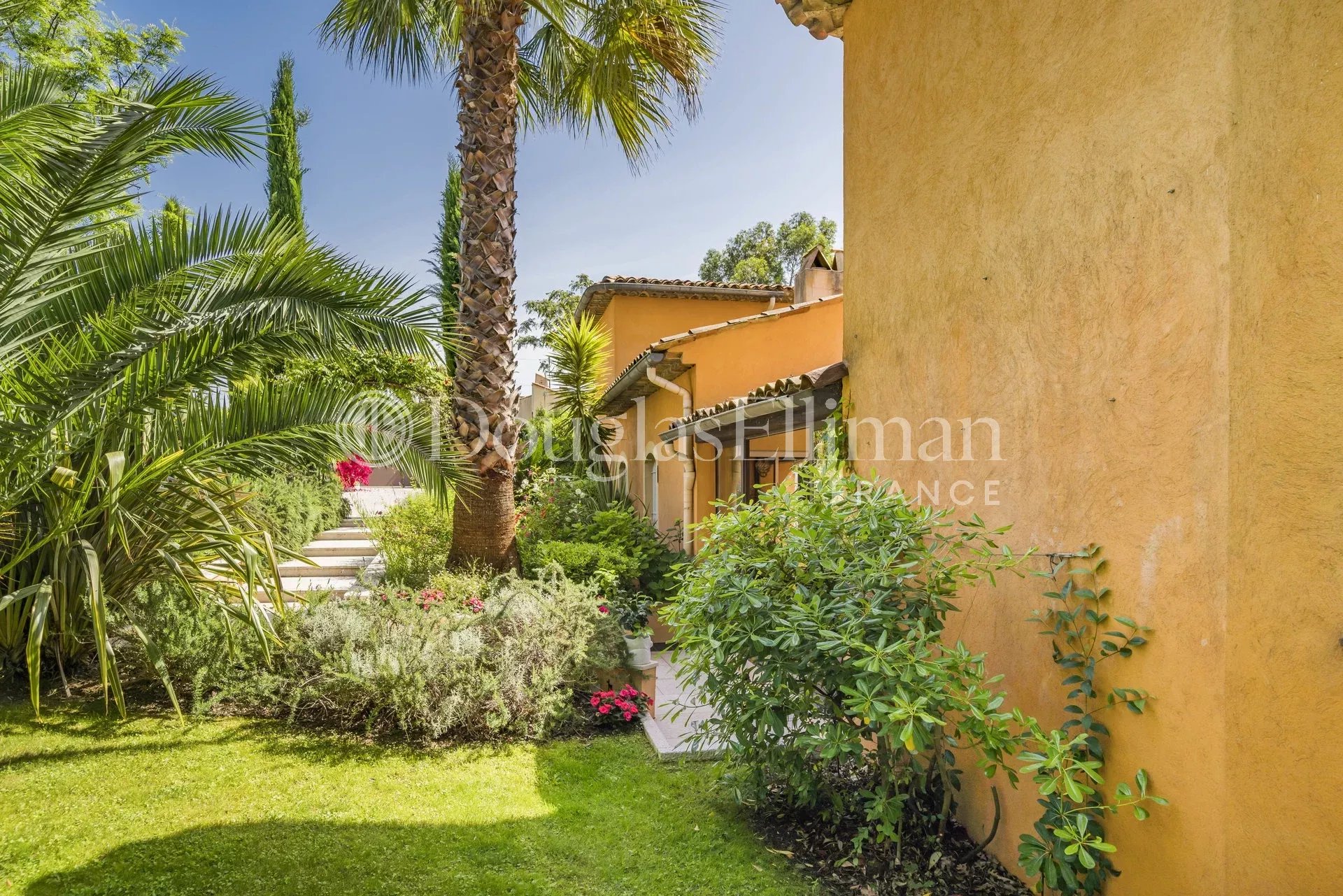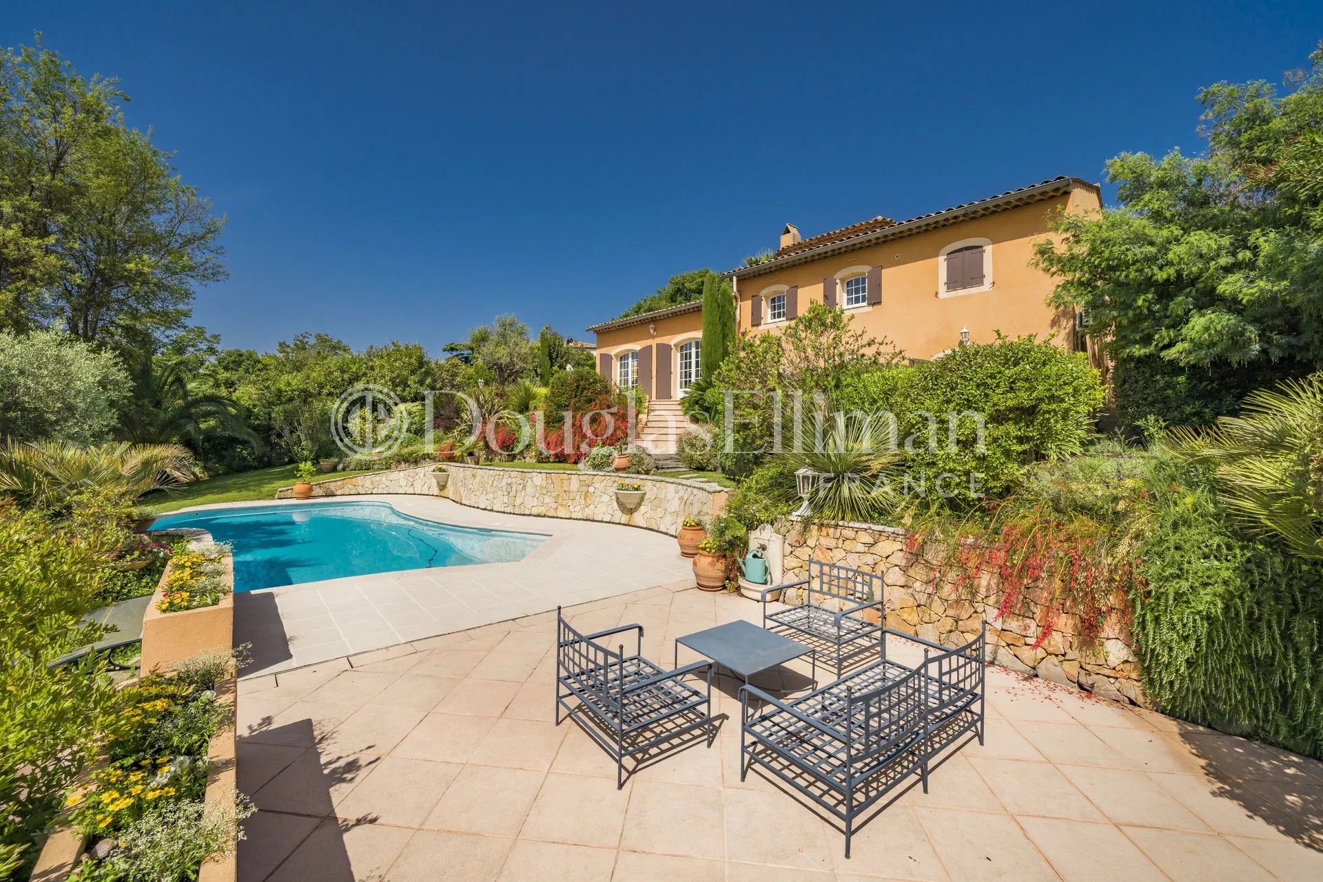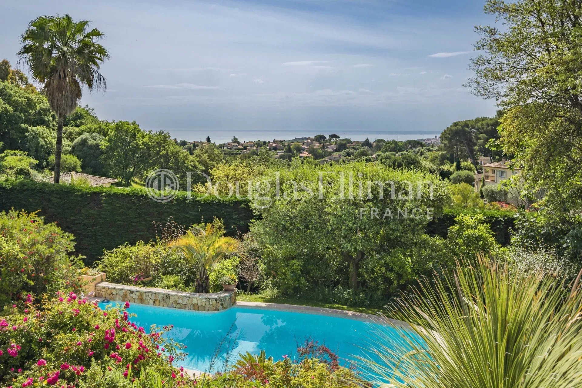 I et rolig område, kort vei til motorvei A8 og forskjellige fasiliteter, vakker villa i provencalsk stil på rundt 202 kvm boareal med praktfull utsikt over havet og omgivelsene, i utmerket tilstand, med moden hage på 1550 kvm, svømmebasseng og petanquestripe. Sørlig og østlig eksponering, mange koselige terrasser hvor du kan nyte solen, utsikten og roen.