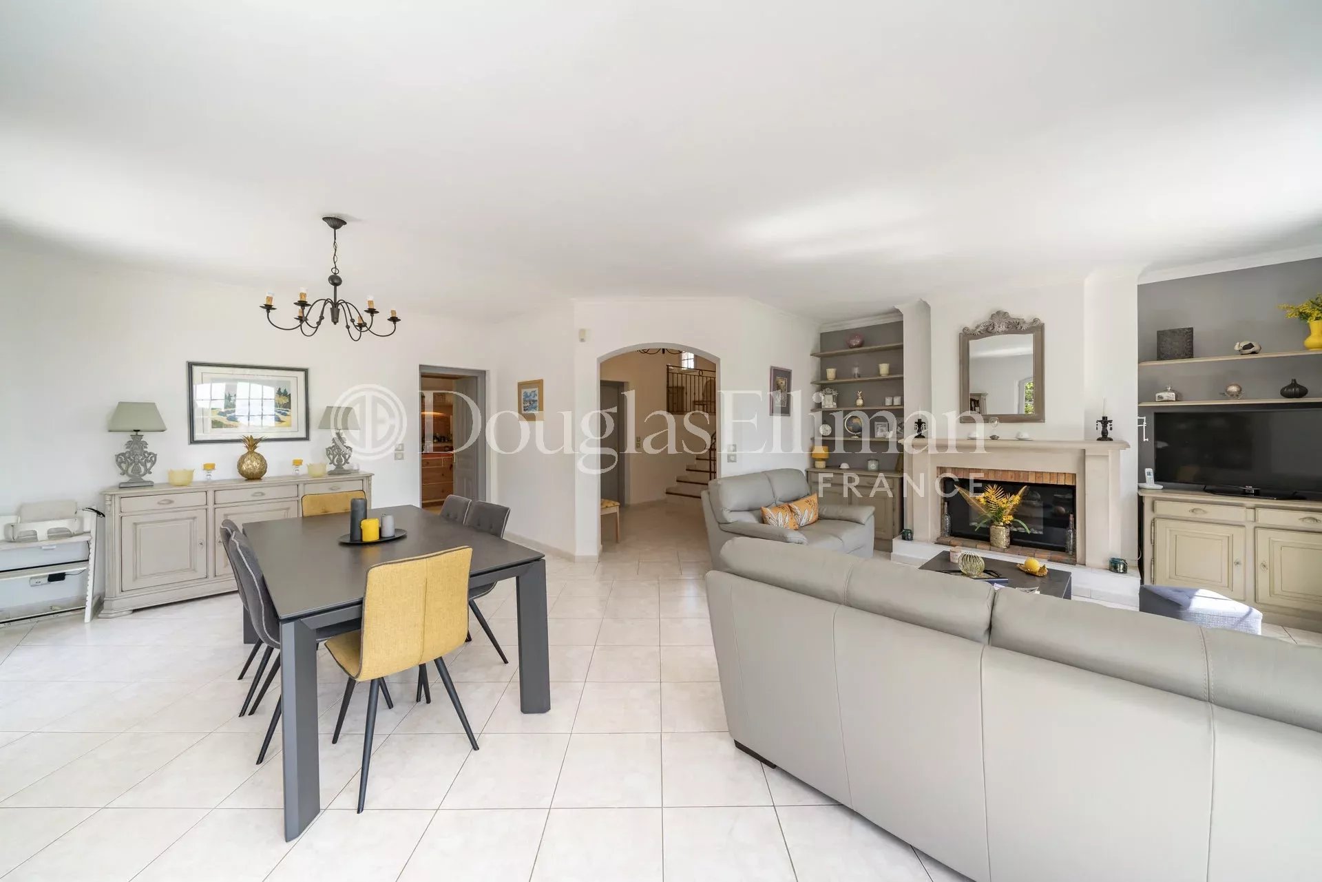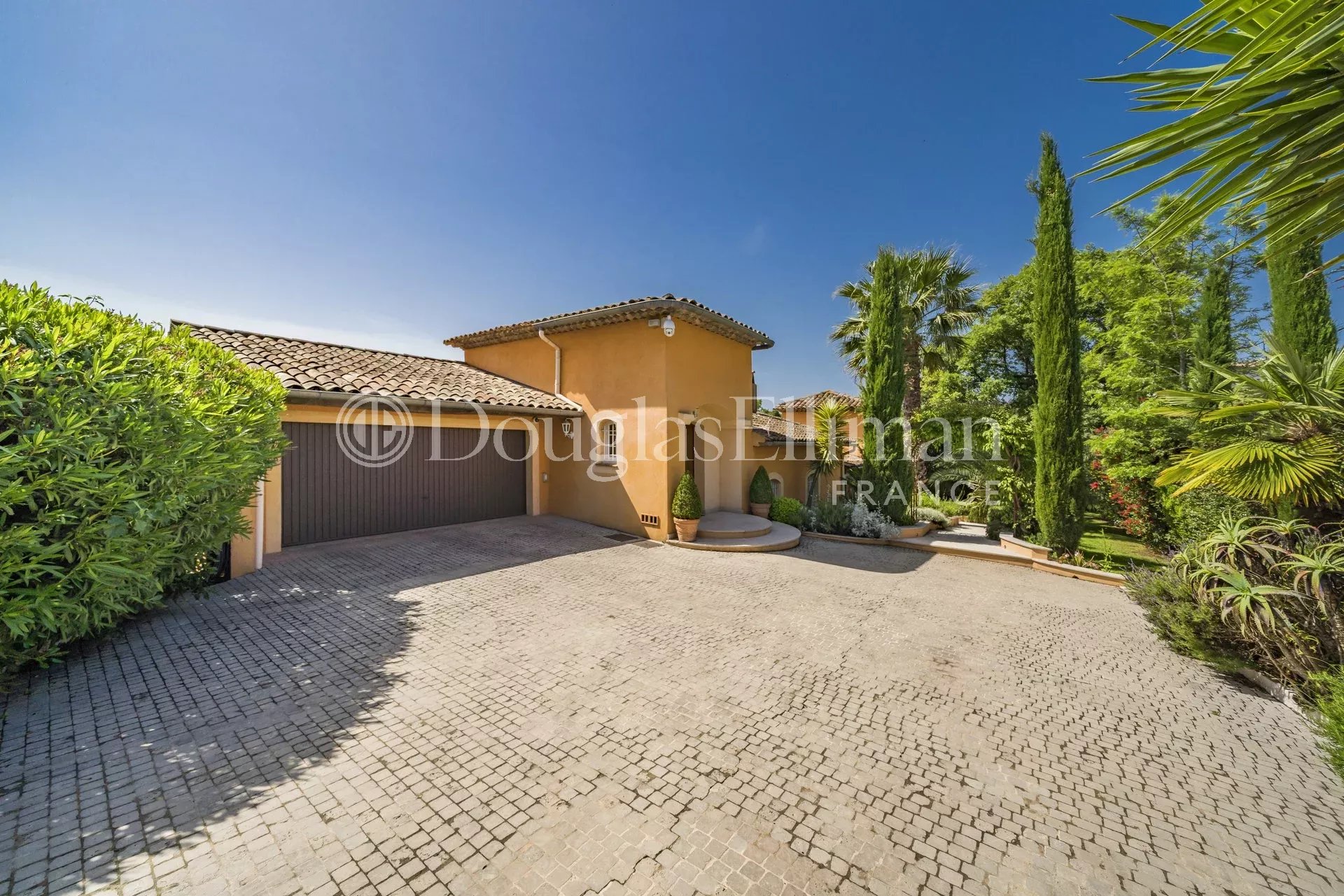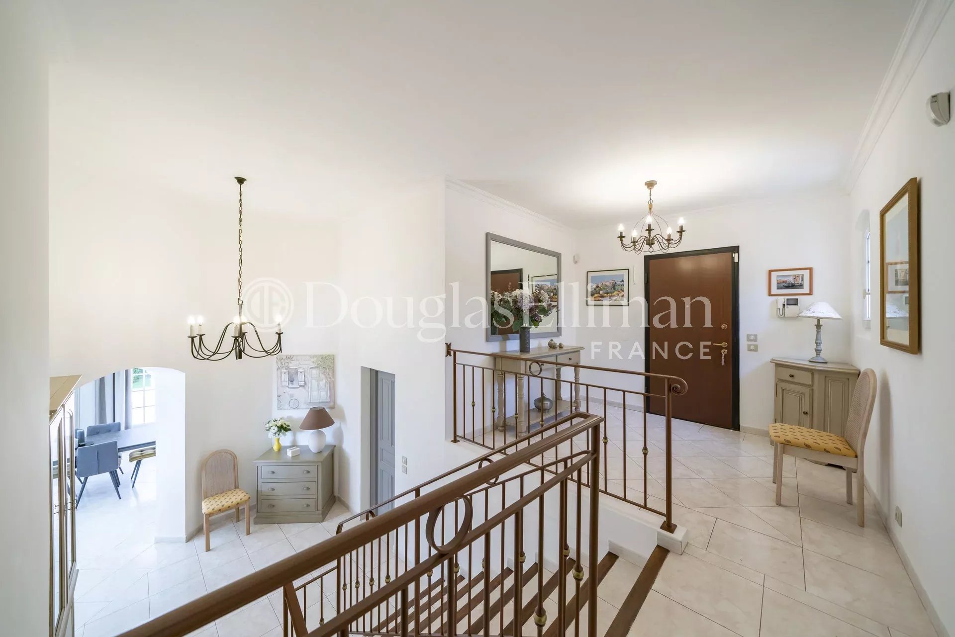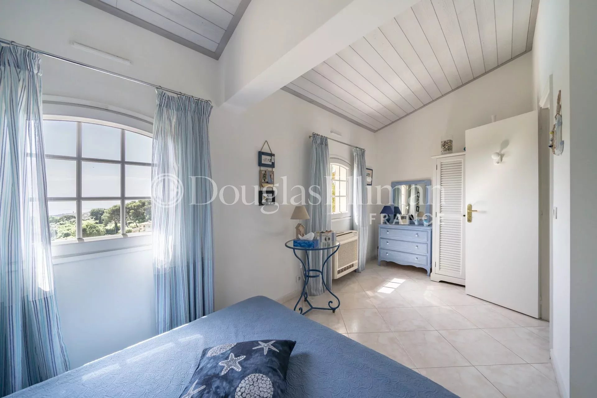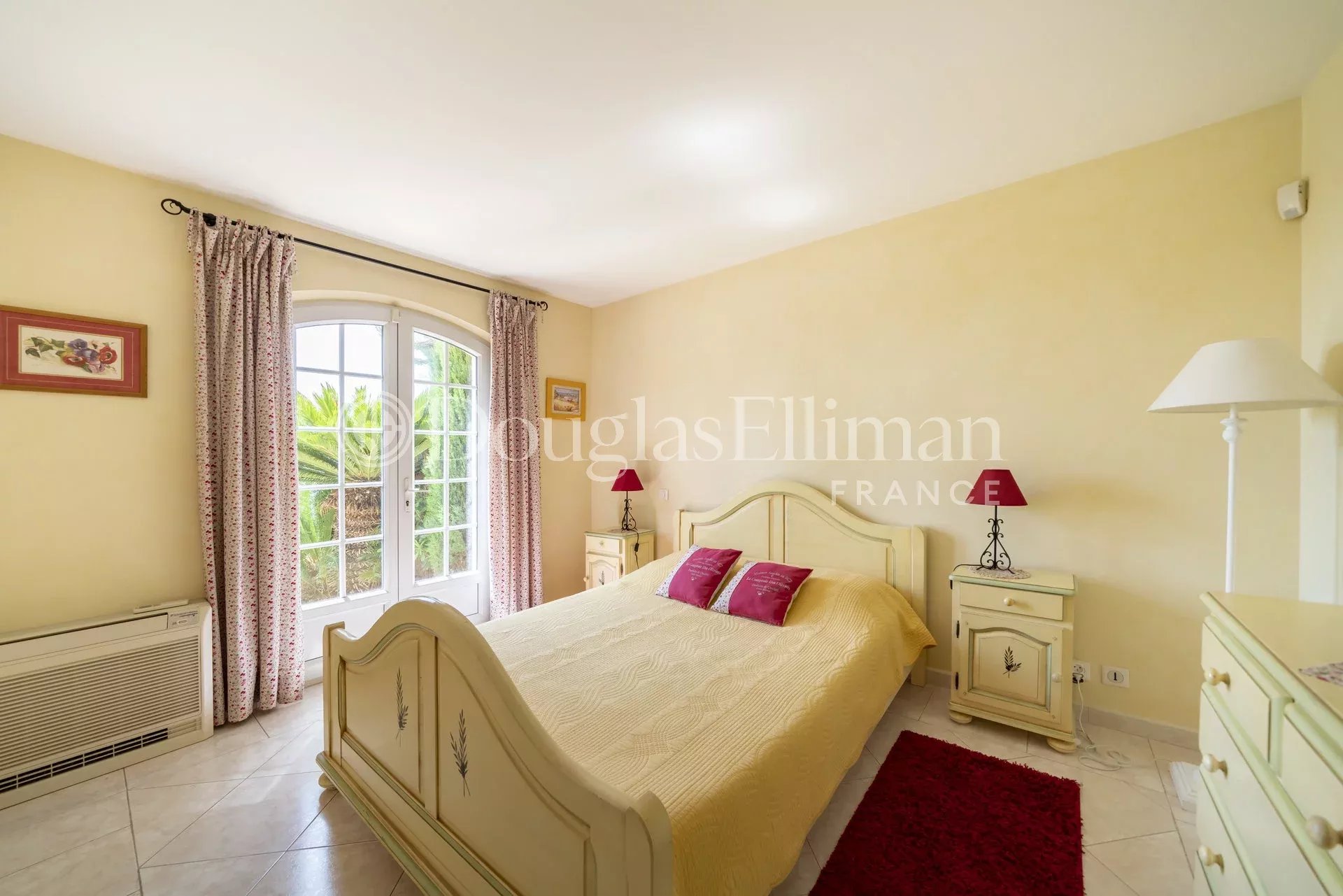I et rolig område, kort vei til motorvei A8 og forskjellige fasiliteter, vakker villa i provencalsk stil på rundt 202 kvm boareal med praktfull utsikt over havet og omgivelsene, i utmerket tilstand, med moden hage på 1550 kvm, svømmebasseng og petanquestripe. Sørlig og østlig eksponering, mange koselige terrasser hvor du kan nyte solen, utsikten og roen.