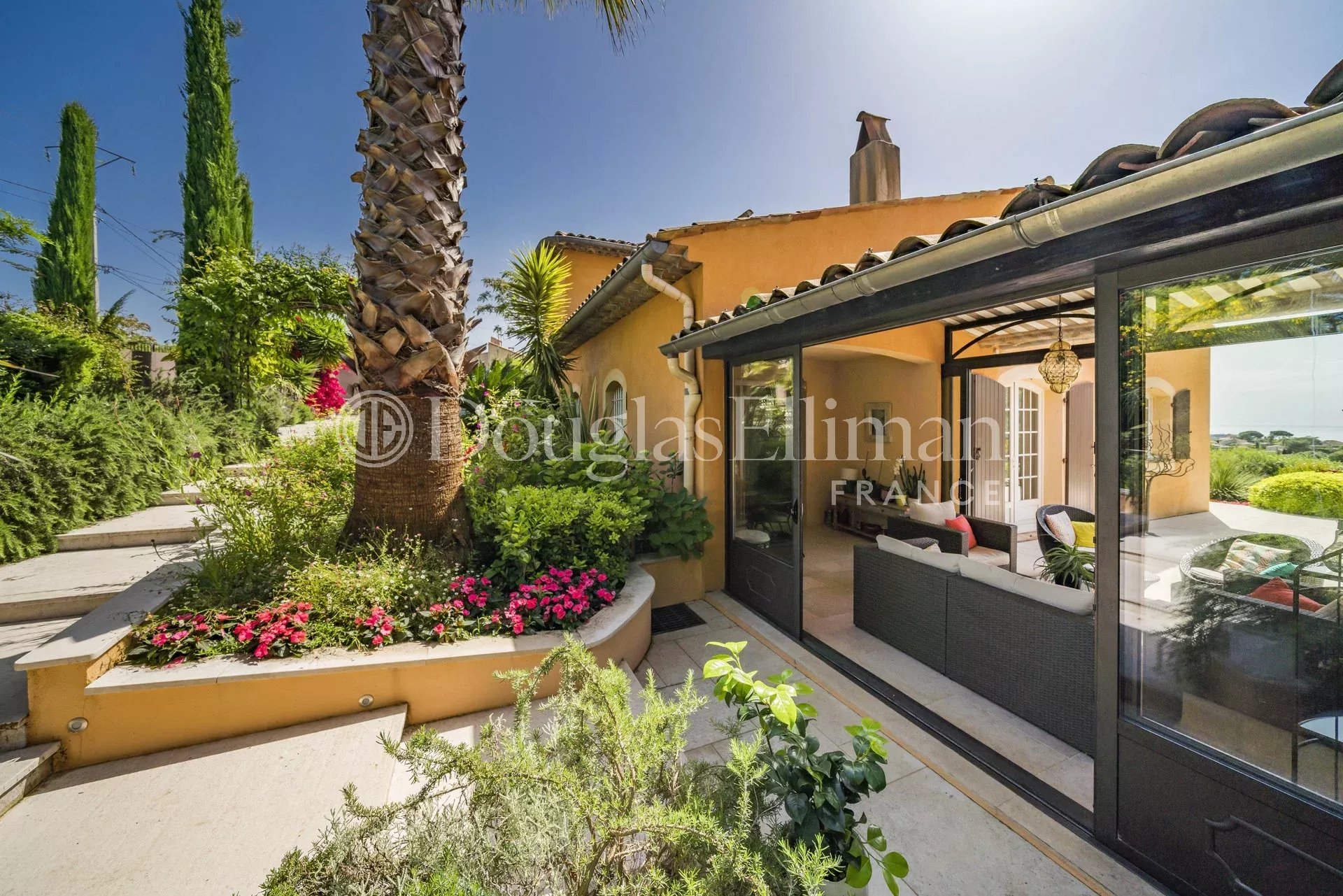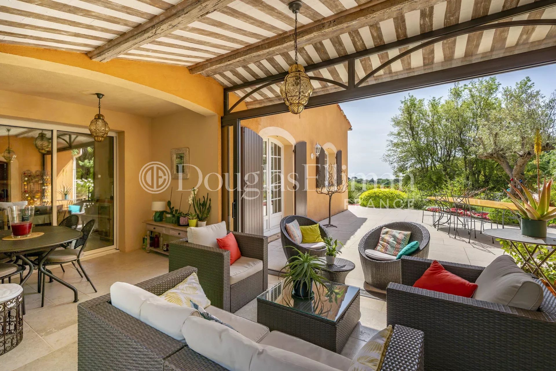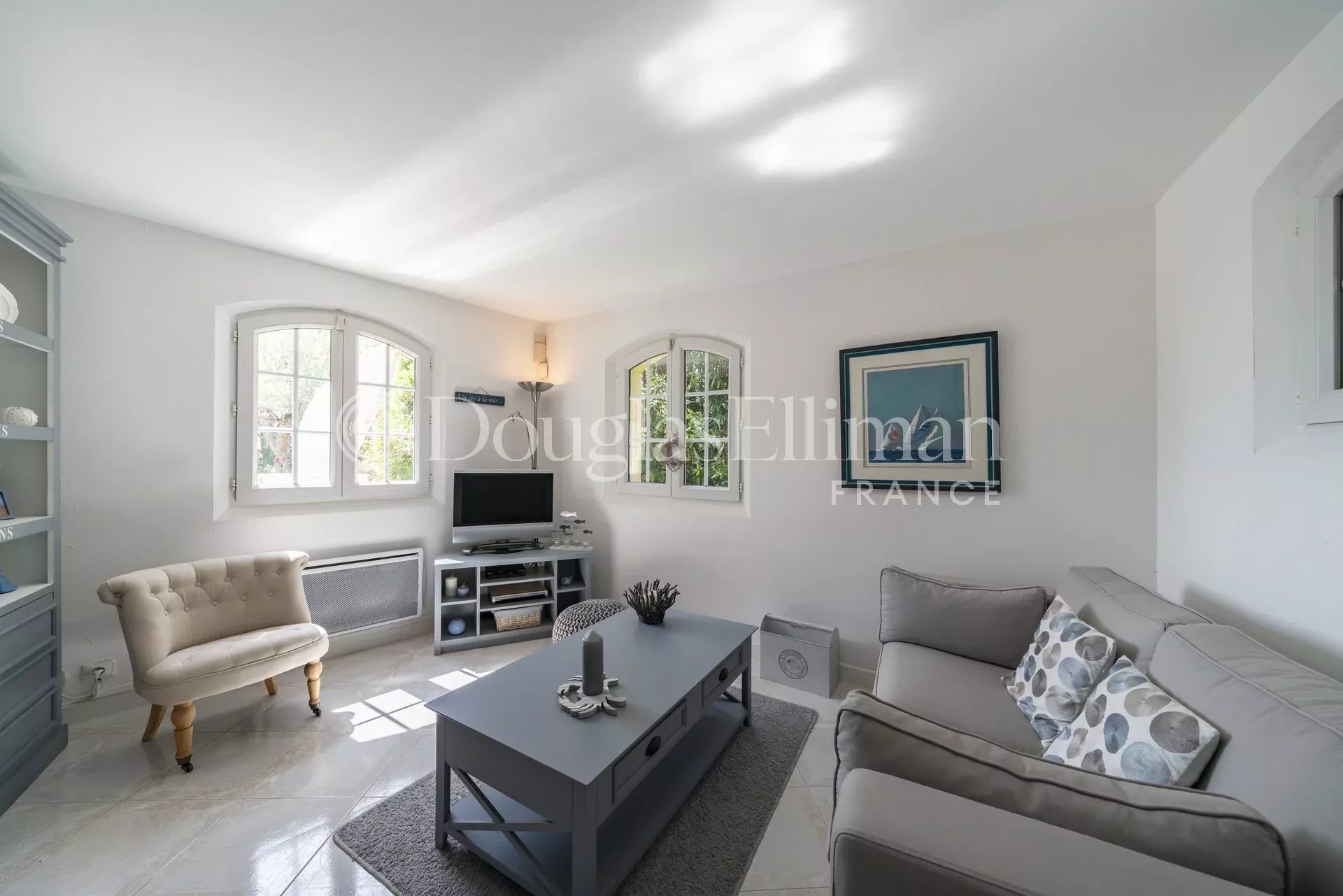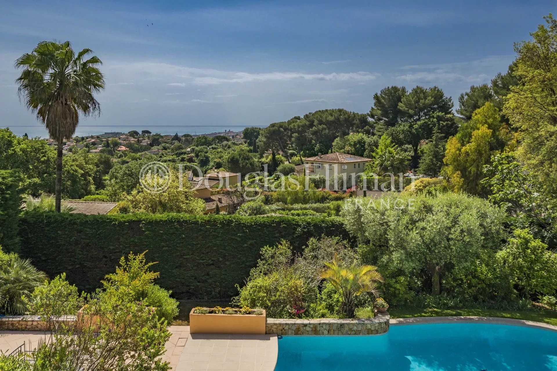 I et rolig område, kort vei til motorvei A8 og forskjellige fasiliteter, vakker villa i provencalsk stil på rundt 202 kvm boareal med praktfull utsikt over havet og omgivelsene, i utmerket tilstand, med moden hage på 1550 kvm, svømmebasseng og petanquestripe. Sørlig og østlig eksponering, mange koselige terrasser hvor du kan nyte solen, utsikten og roen.
