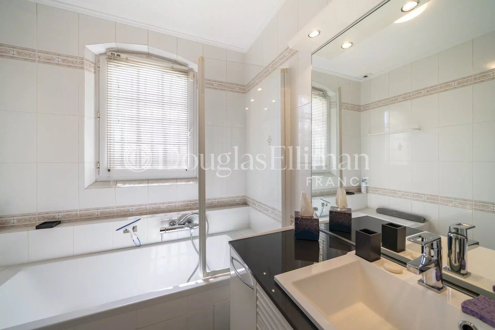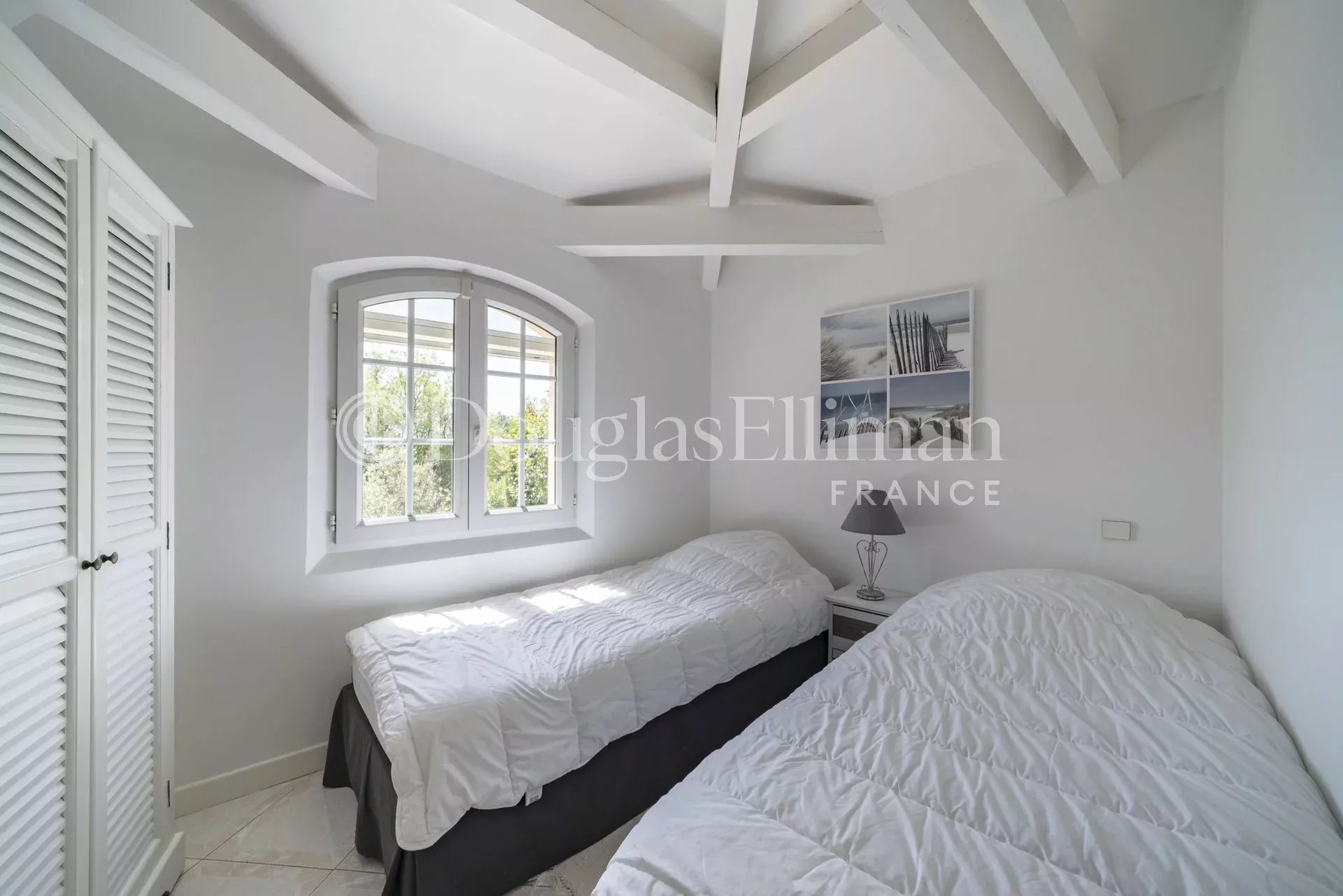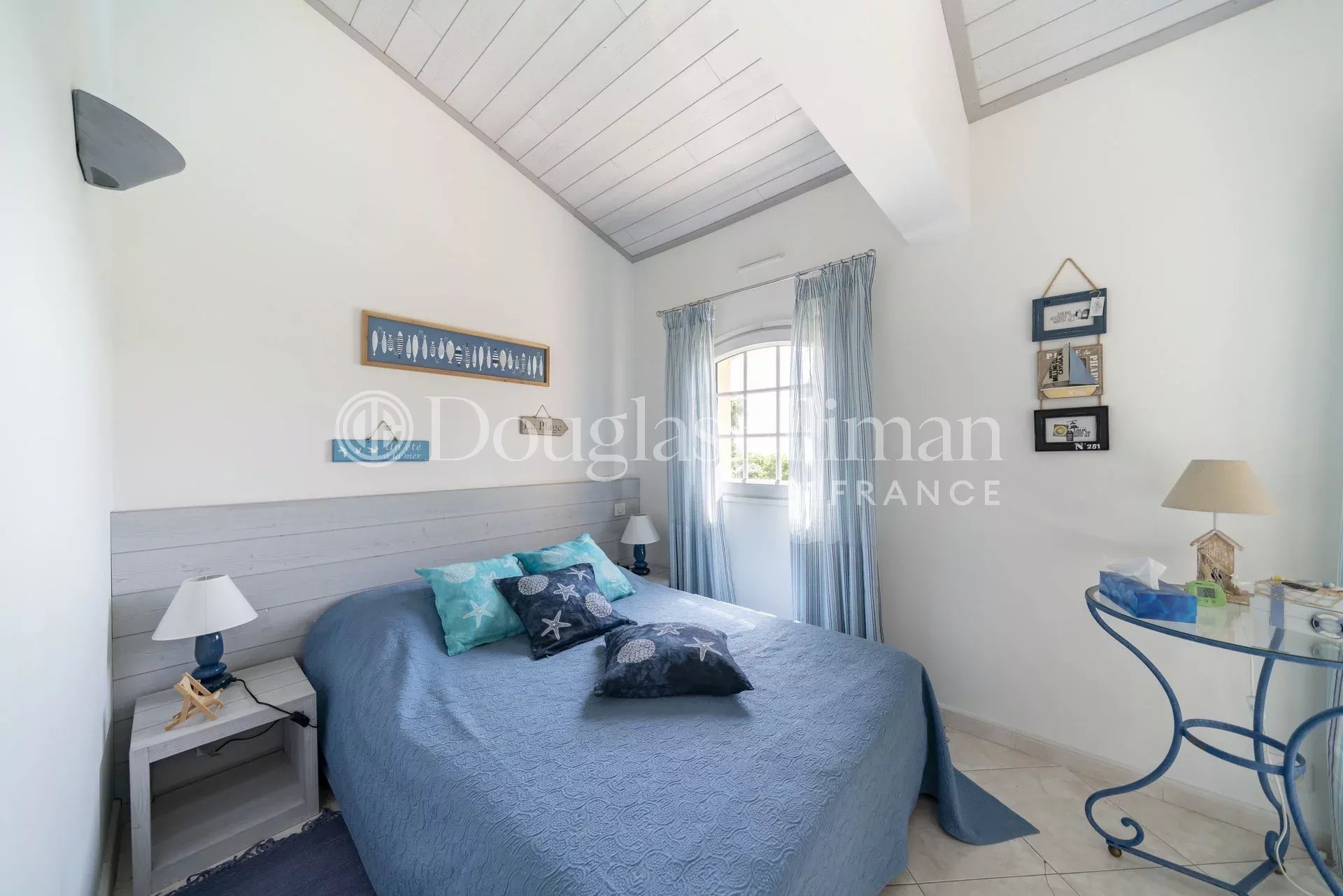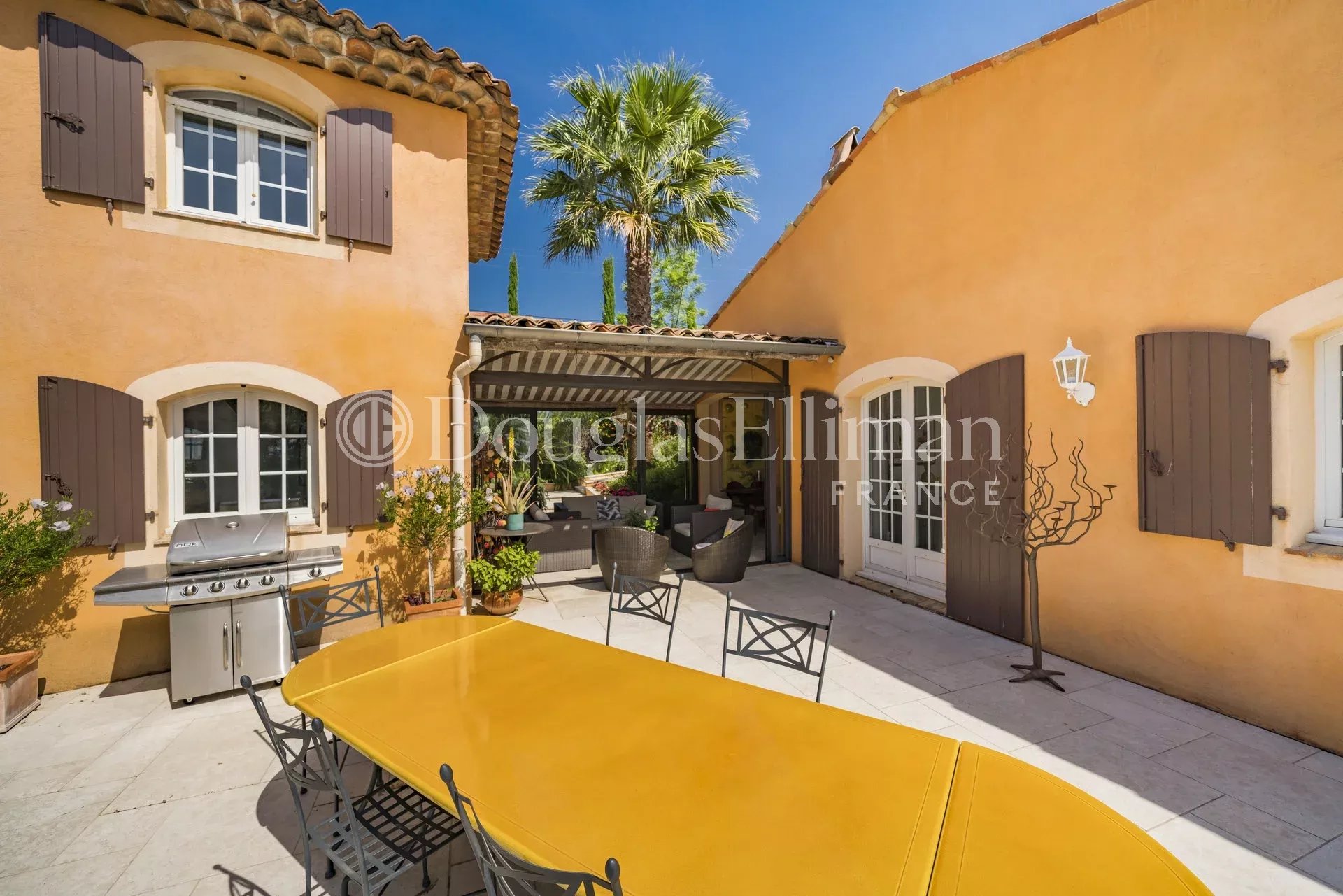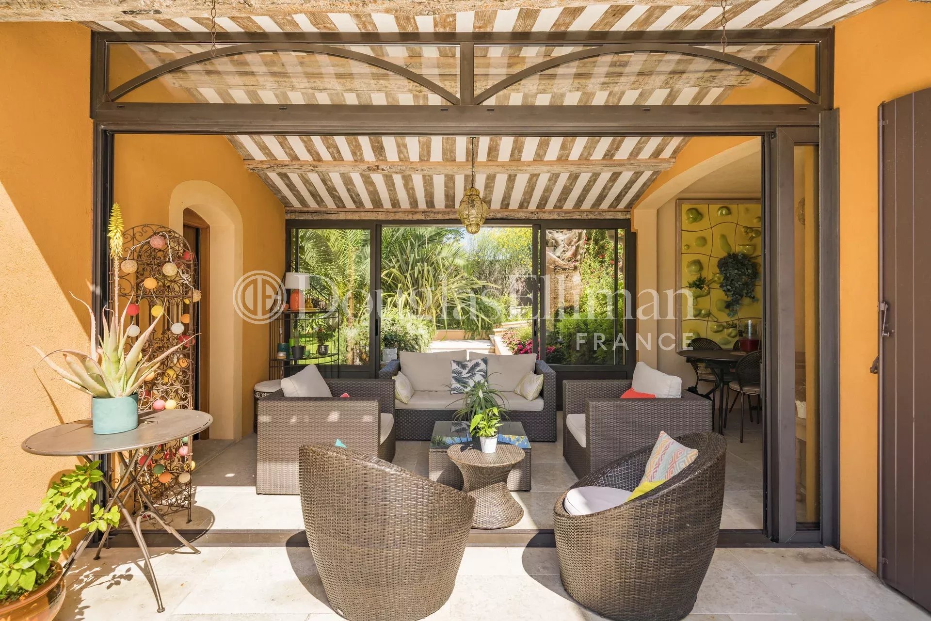 I et rolig område, kort vei til motorvei A8 og forskjellige fasiliteter, vakker villa i provencalsk stil på rundt 202 kvm boareal med praktfull utsikt over havet og omgivelsene, i utmerket tilstand, med moden hage på 1550 kvm, svømmebasseng og petanquestripe. Sørlig og østlig eksponering, mange koselige terrasser hvor du kan nyte solen, utsikten og roen.