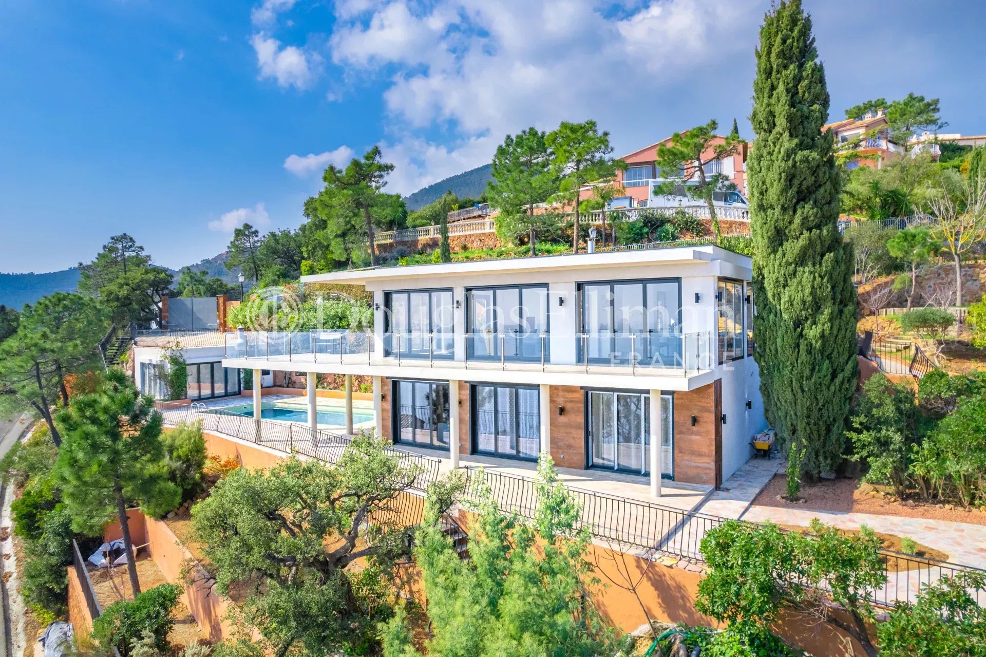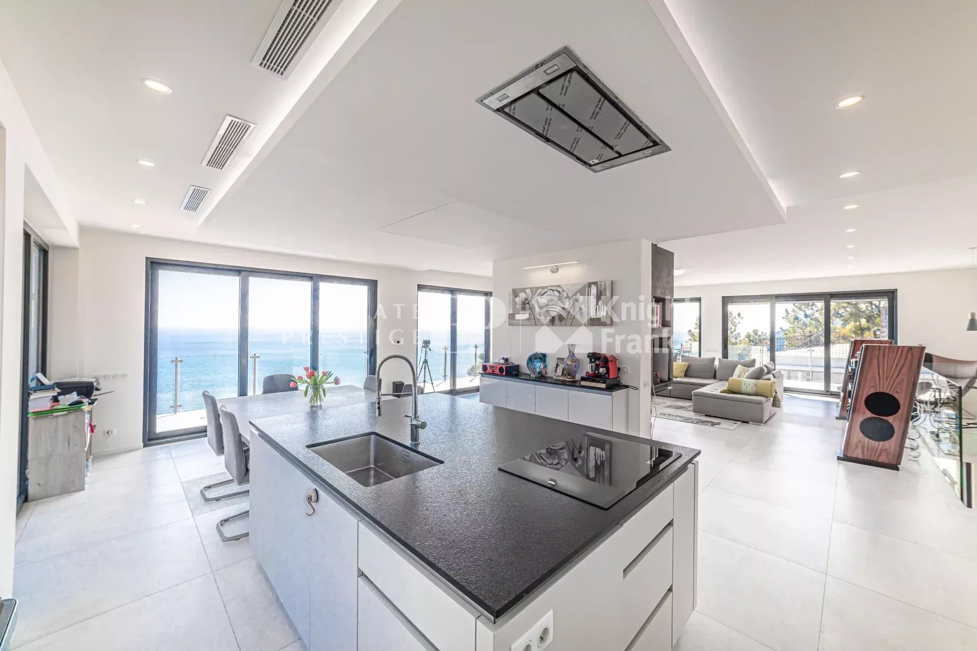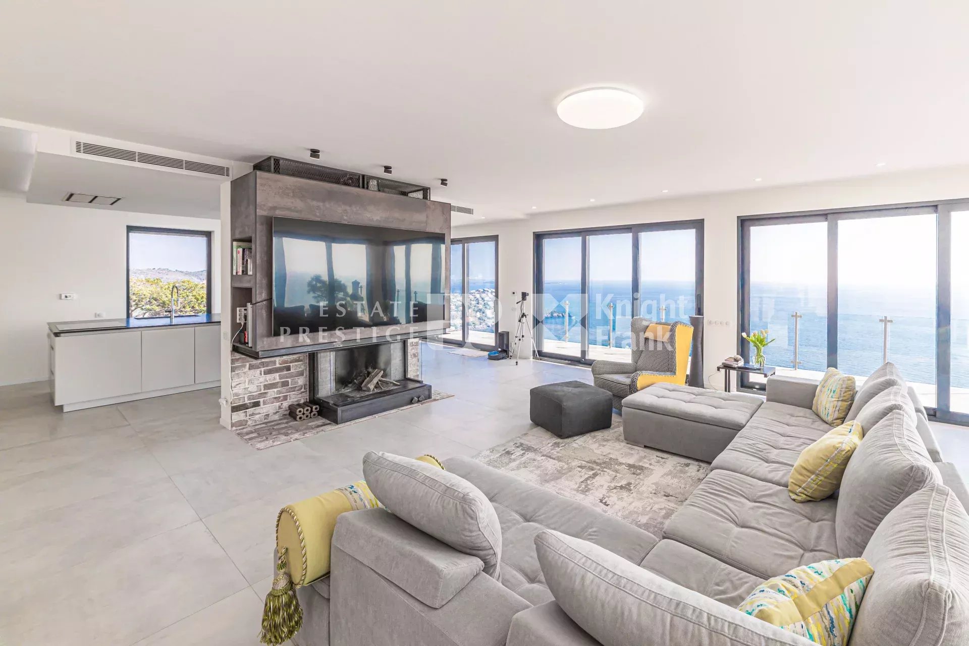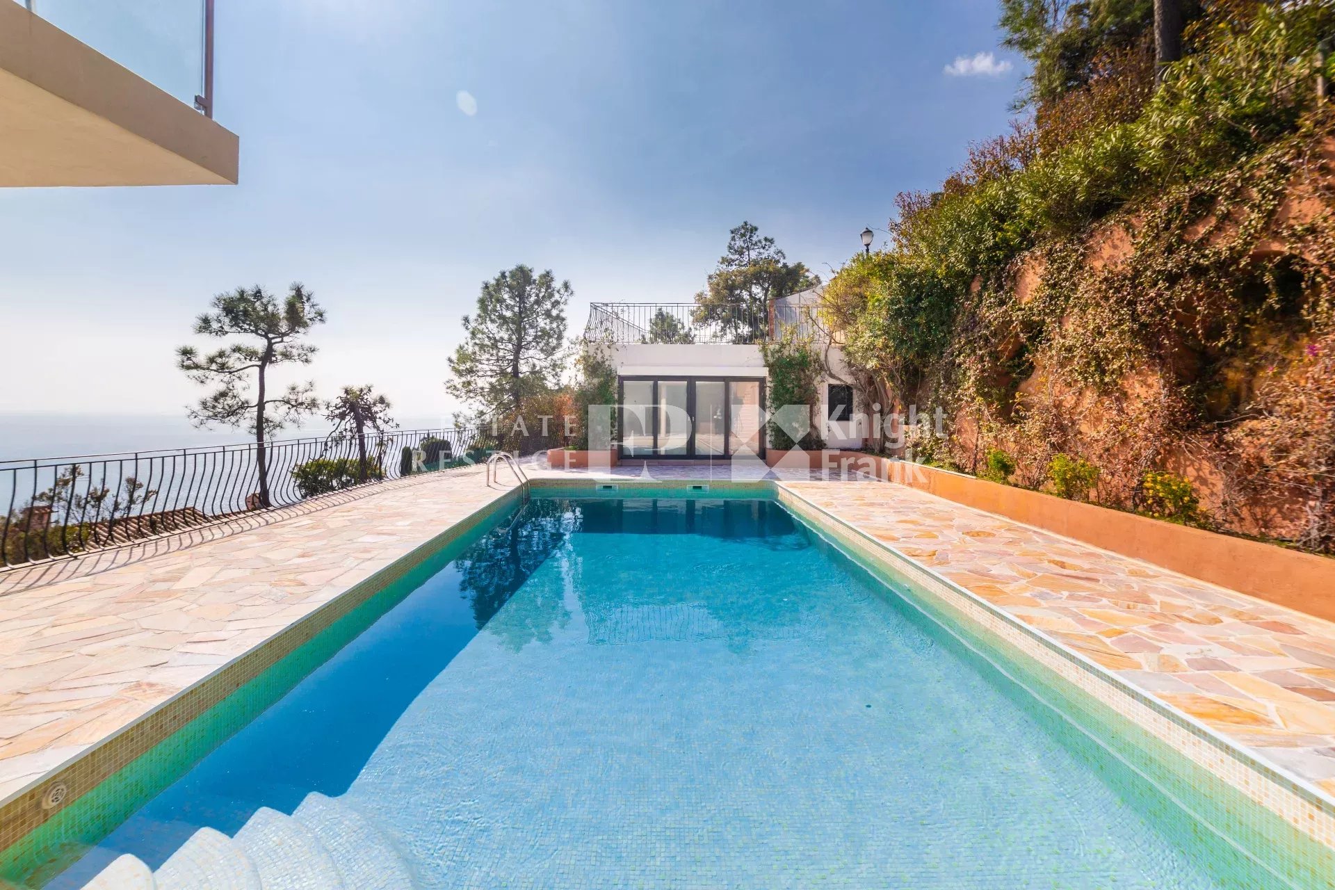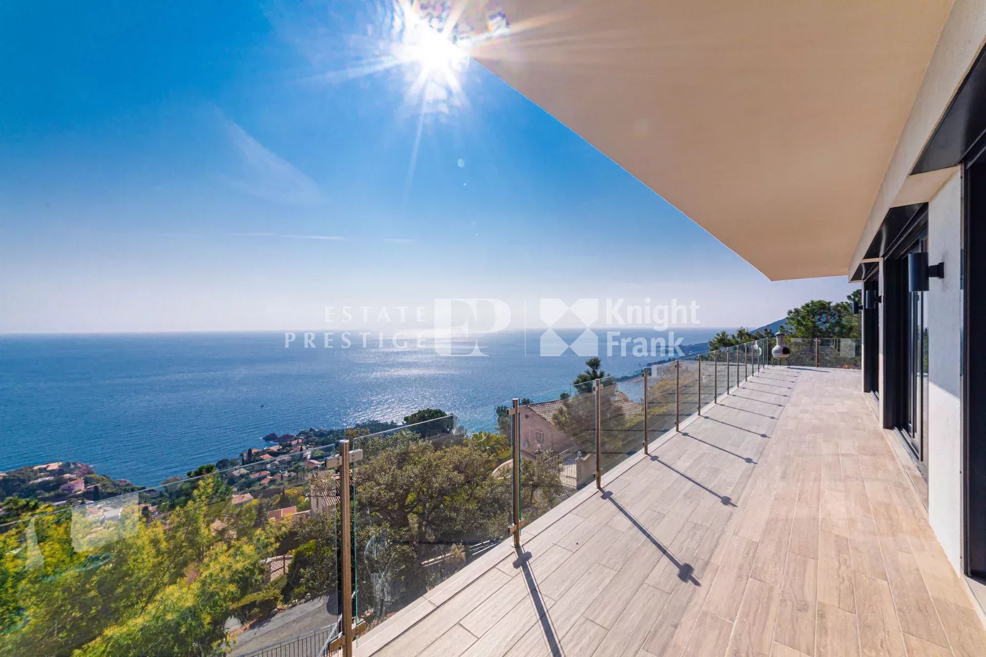 En stor svømmebasseng, omgitt av terrasser, gir den perfekte rammen for å betrakte det drømmeaktige panoramaet over Riviera-buktene.