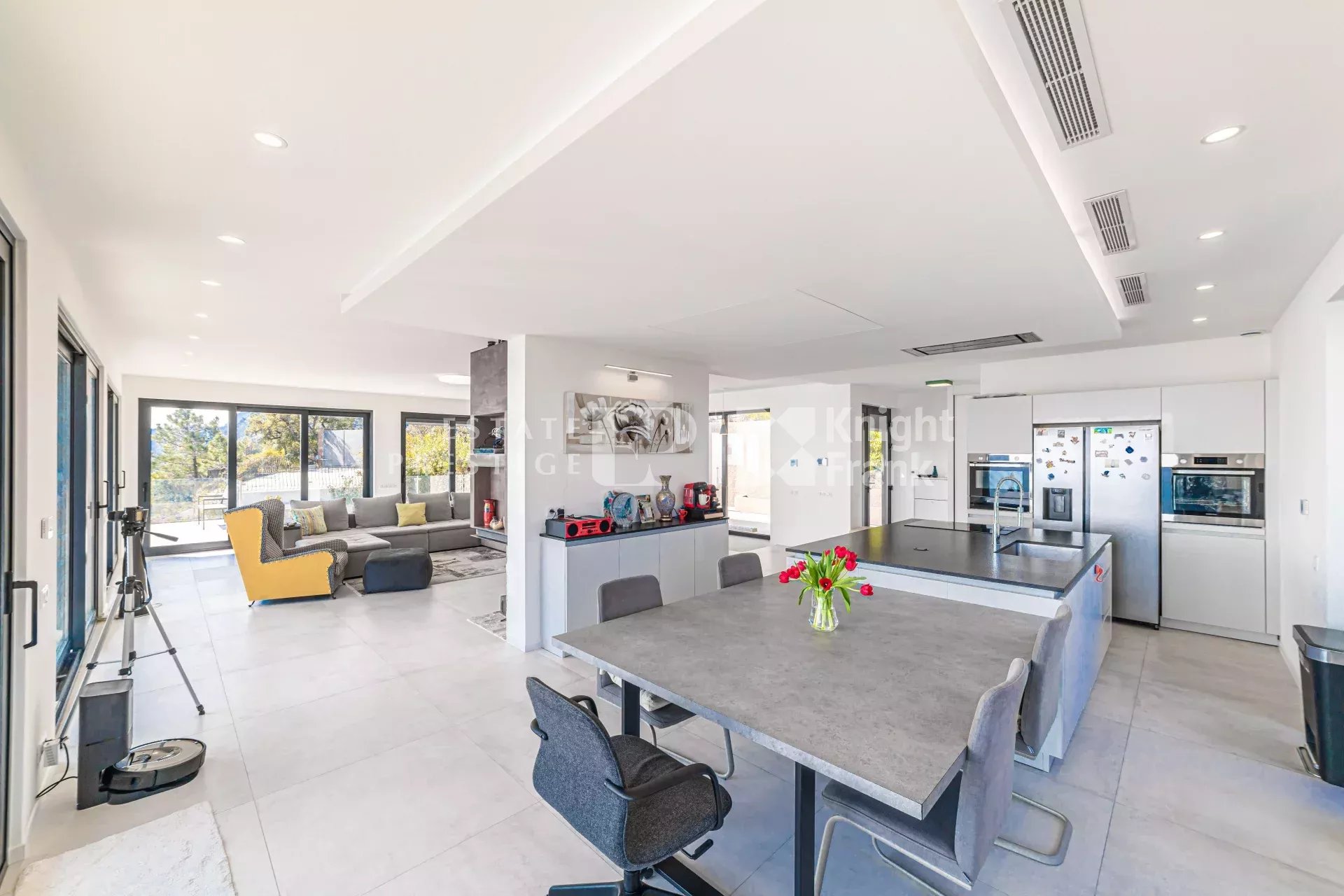 Denne moderne residensen med store volumer og badet i naturlig lys, tilbyr et innbydende resepsjonsområde som smidig kobler seg til et fullt utstyrt kjøkken, som fører ut til en fantastisk terrasse på 100m².