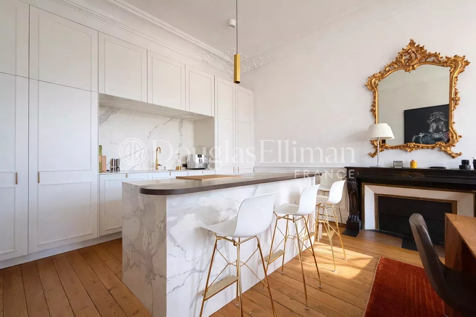 I Bordeauxs gylne triangel, et steinkast fra trikken og butikkene, ligger denne leiligheten på 164 m² i andre etasje med heis i et byhus.