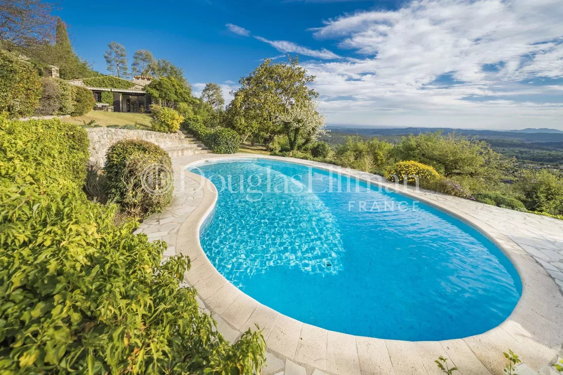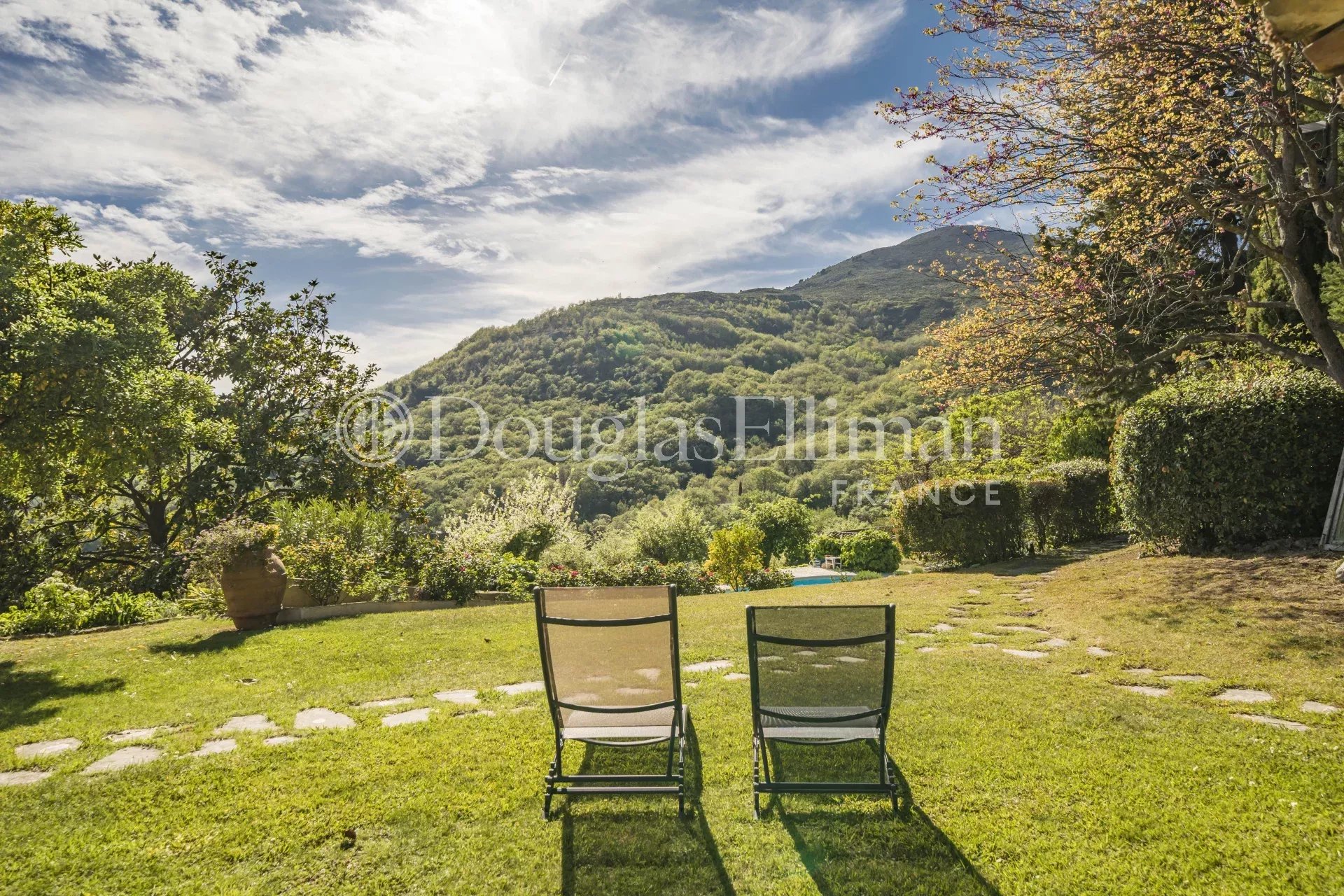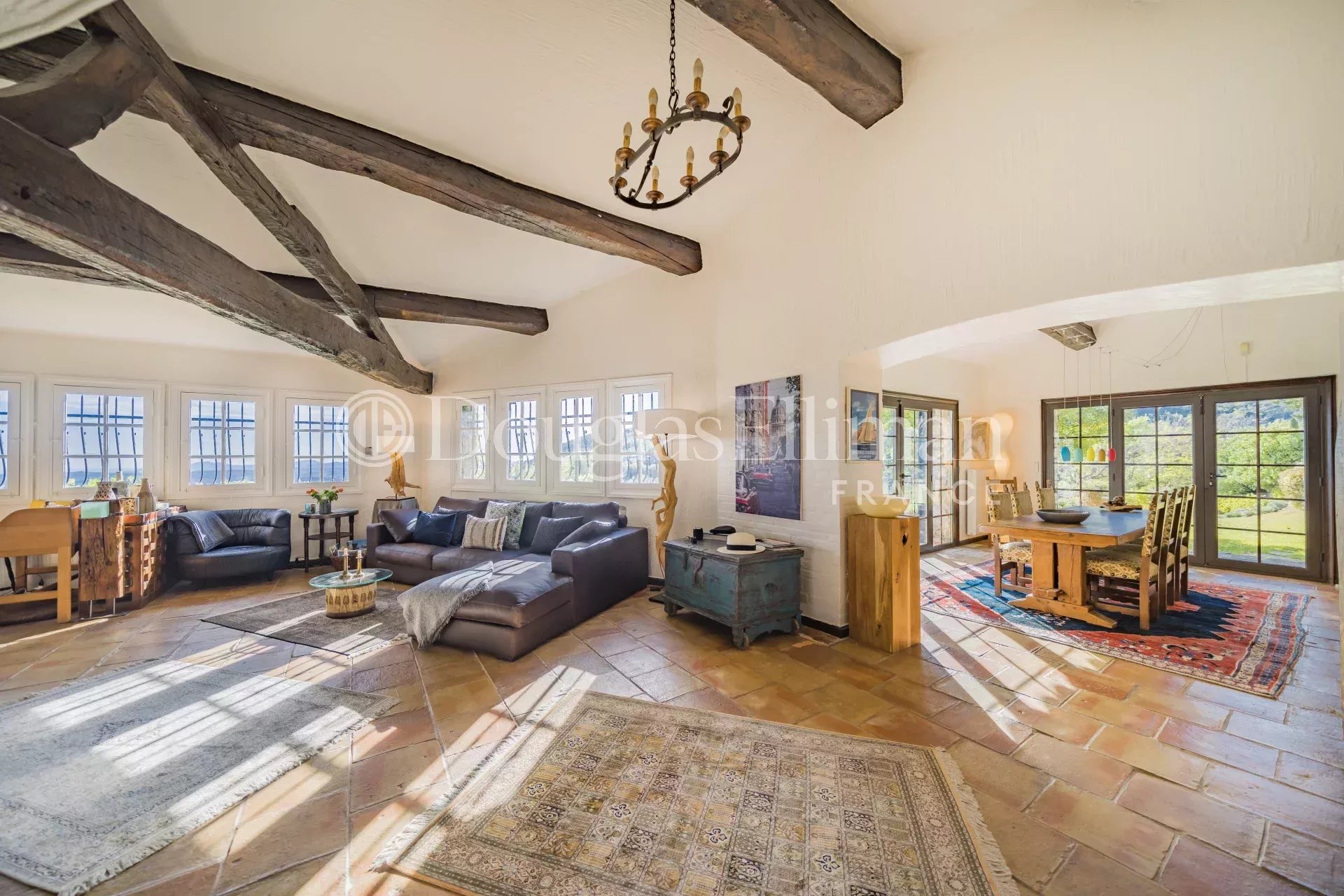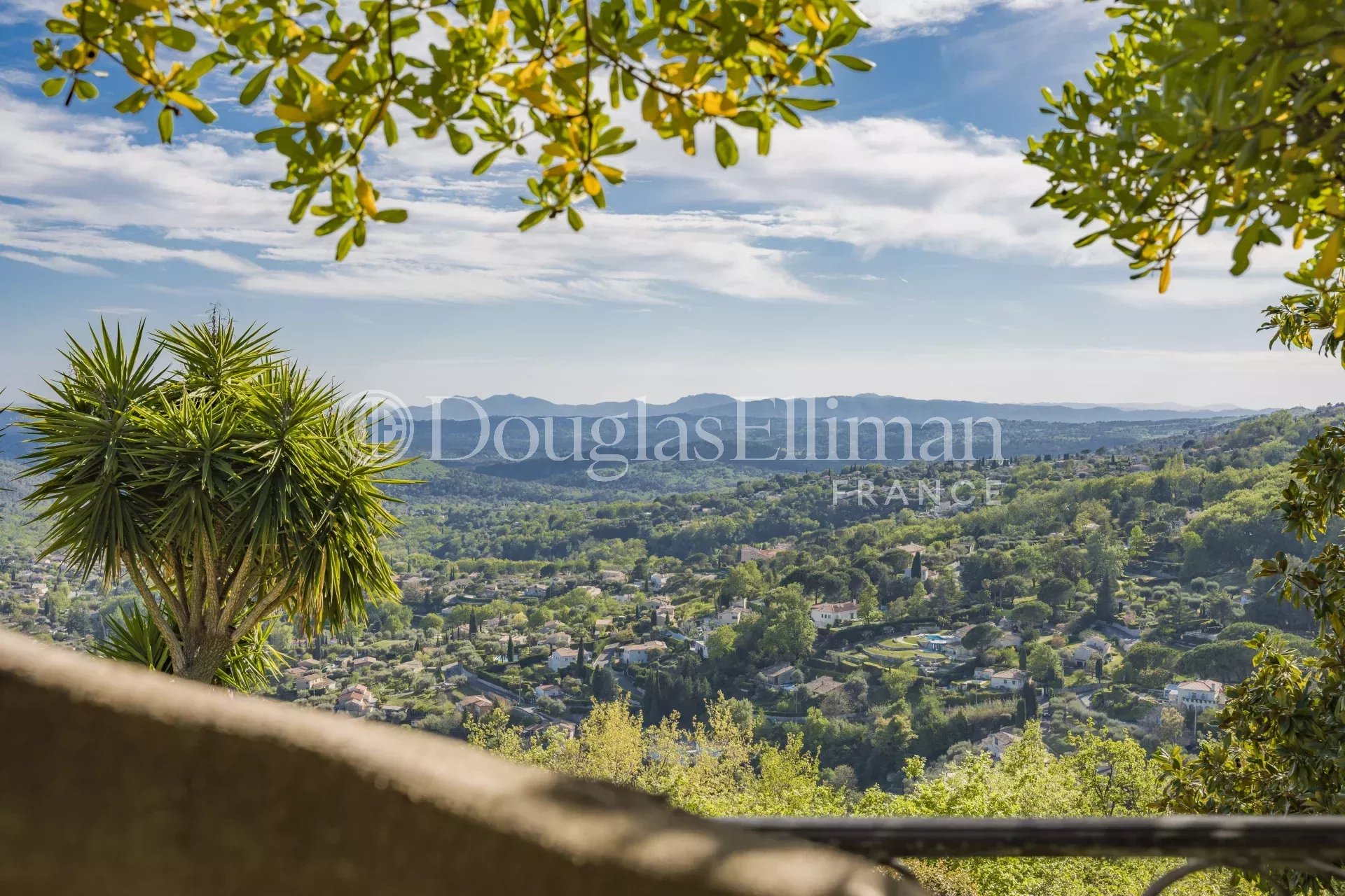 Denne sjarmerende villaen ligger i et fredelig miljø i Vence, og tilbyr en klar utsikt over havet og det omkringliggende landskapet, og skaper et vakkert og variert landskap. Du kan beundre de frodige åsene og det glitrende havet fra flere terrasser, inkludert hovedsoverommets private terrasse.