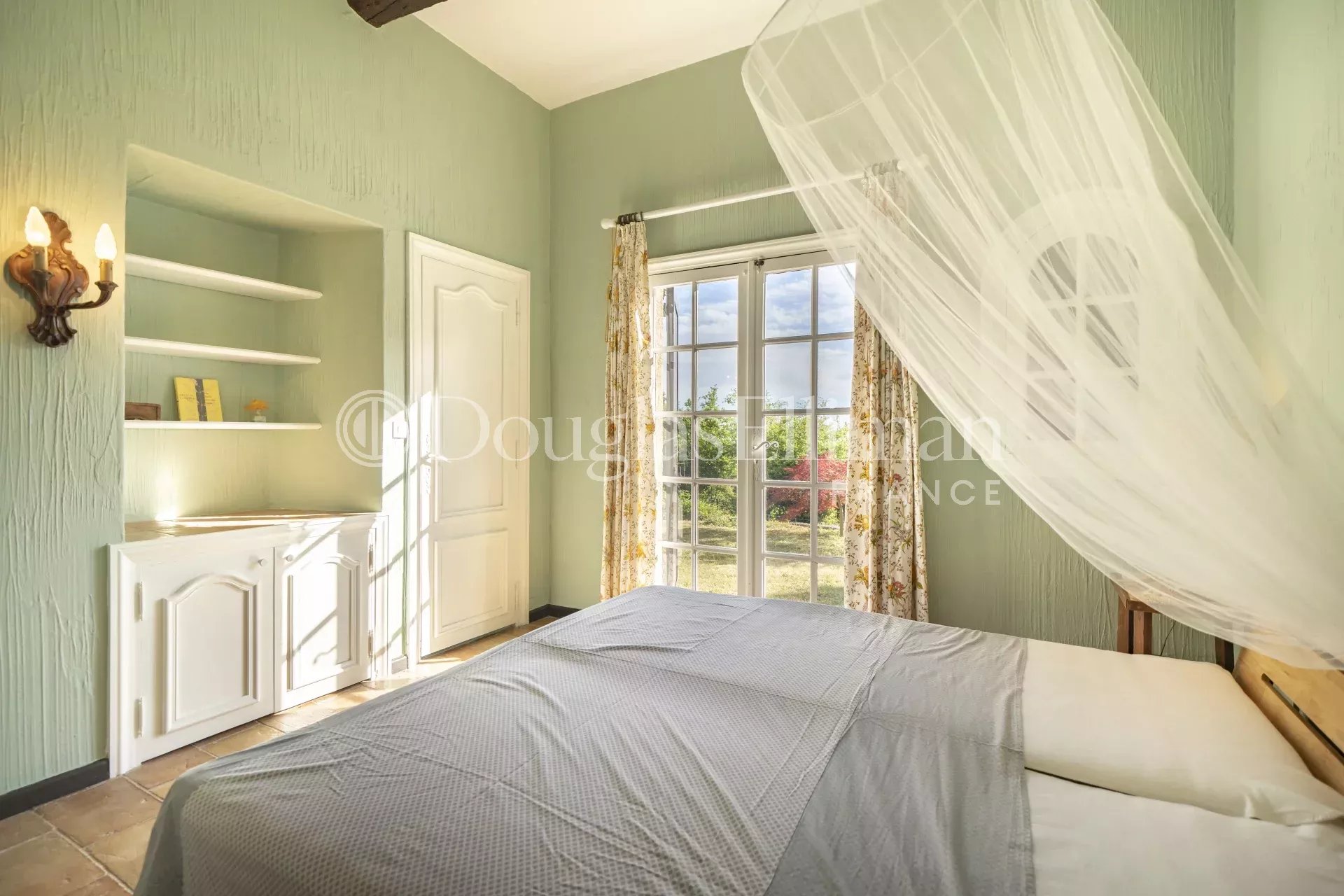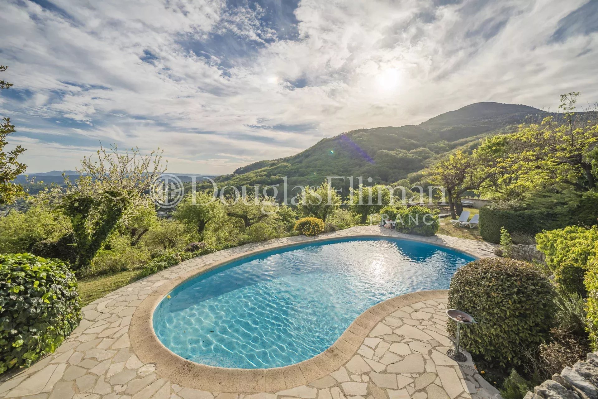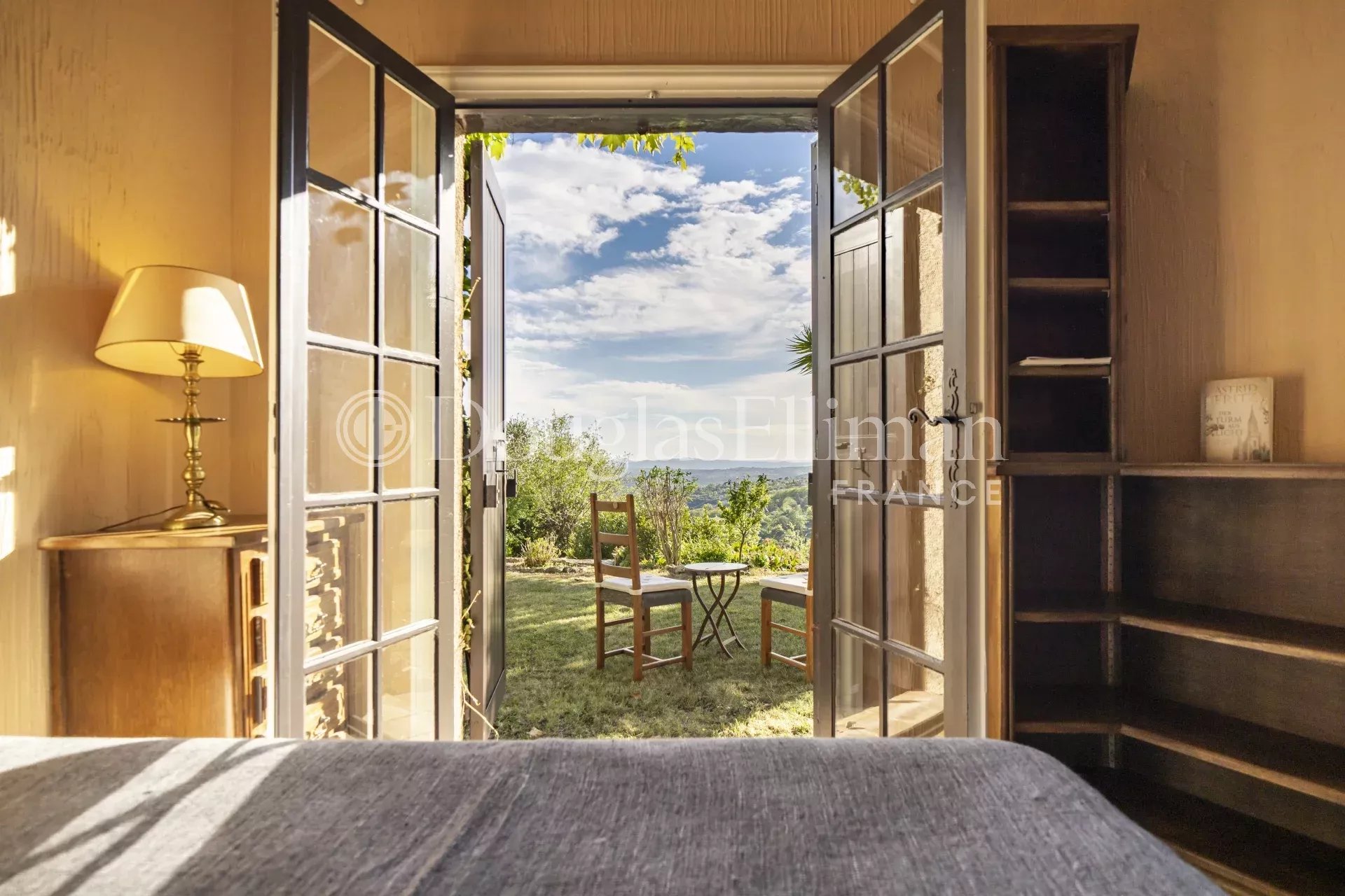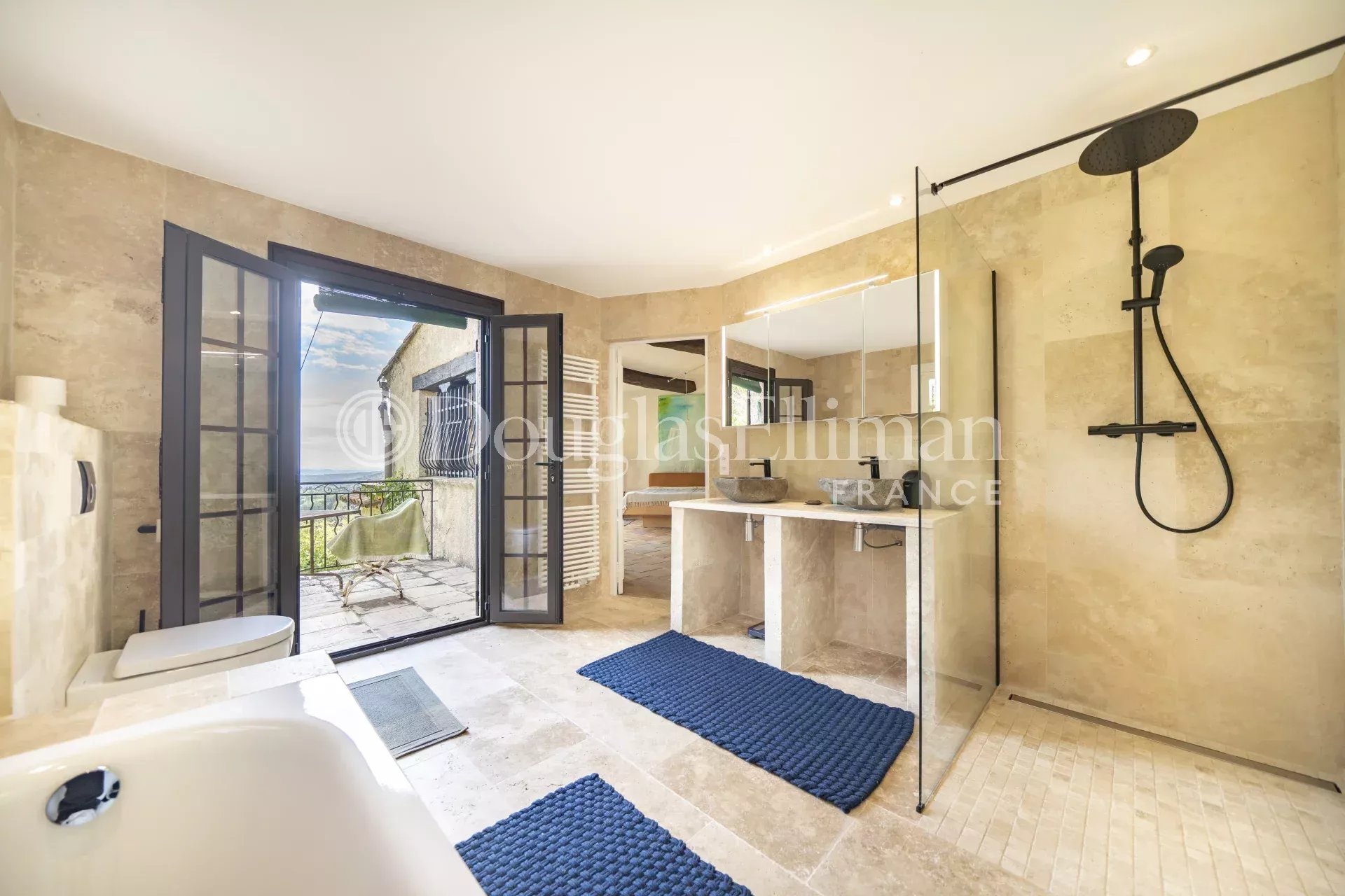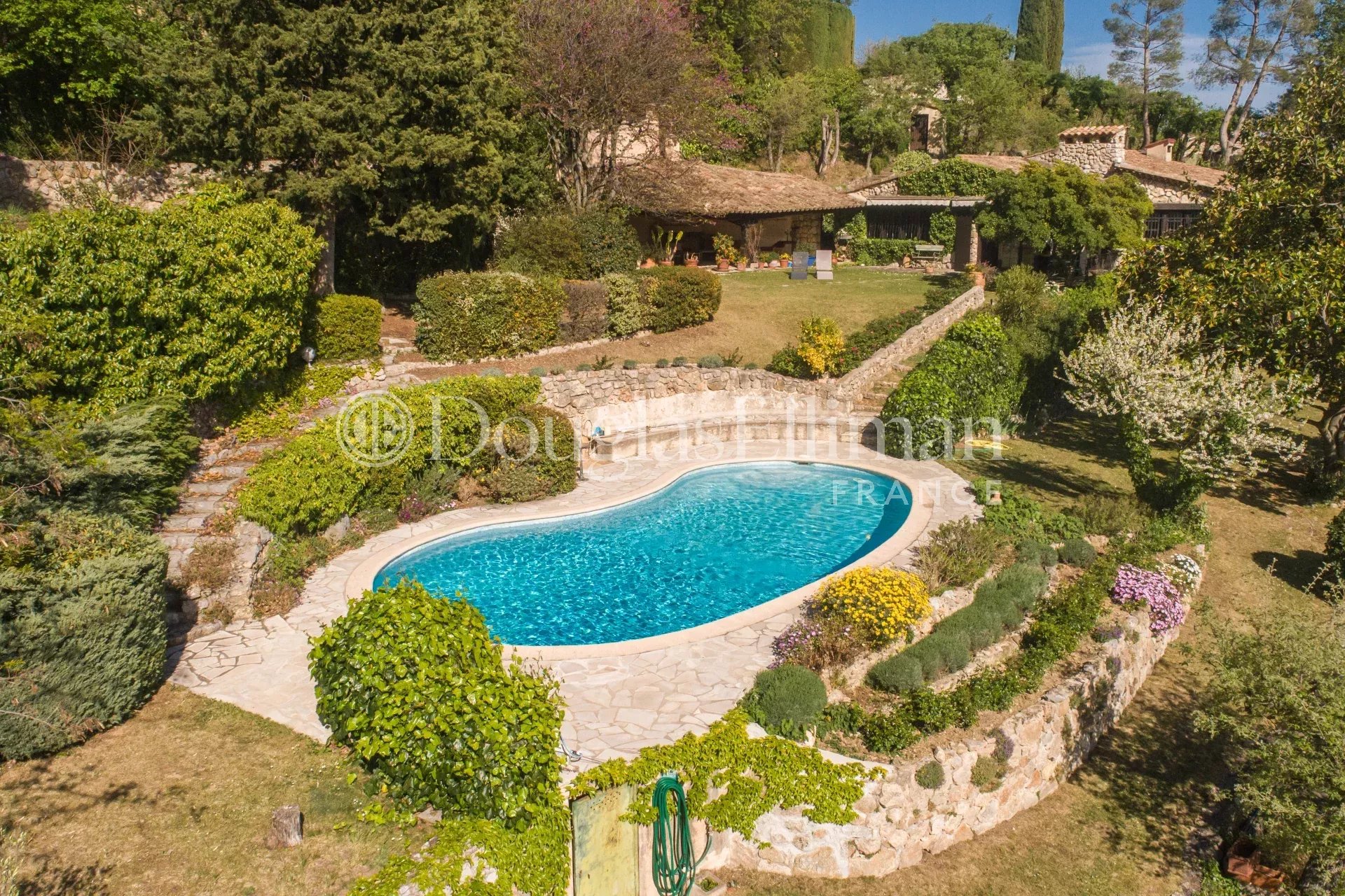 Denne sjarmerende villaen ligger i et fredelig miljø i Vence, og tilbyr en klar utsikt over havet og det omkringliggende landskapet, og skaper et vakkert og variert landskap. Du kan beundre de frodige åsene og det glitrende havet fra flere terrasser, inkludert hovedsoverommets private terrasse.
