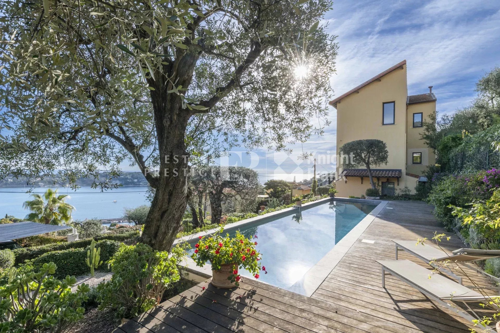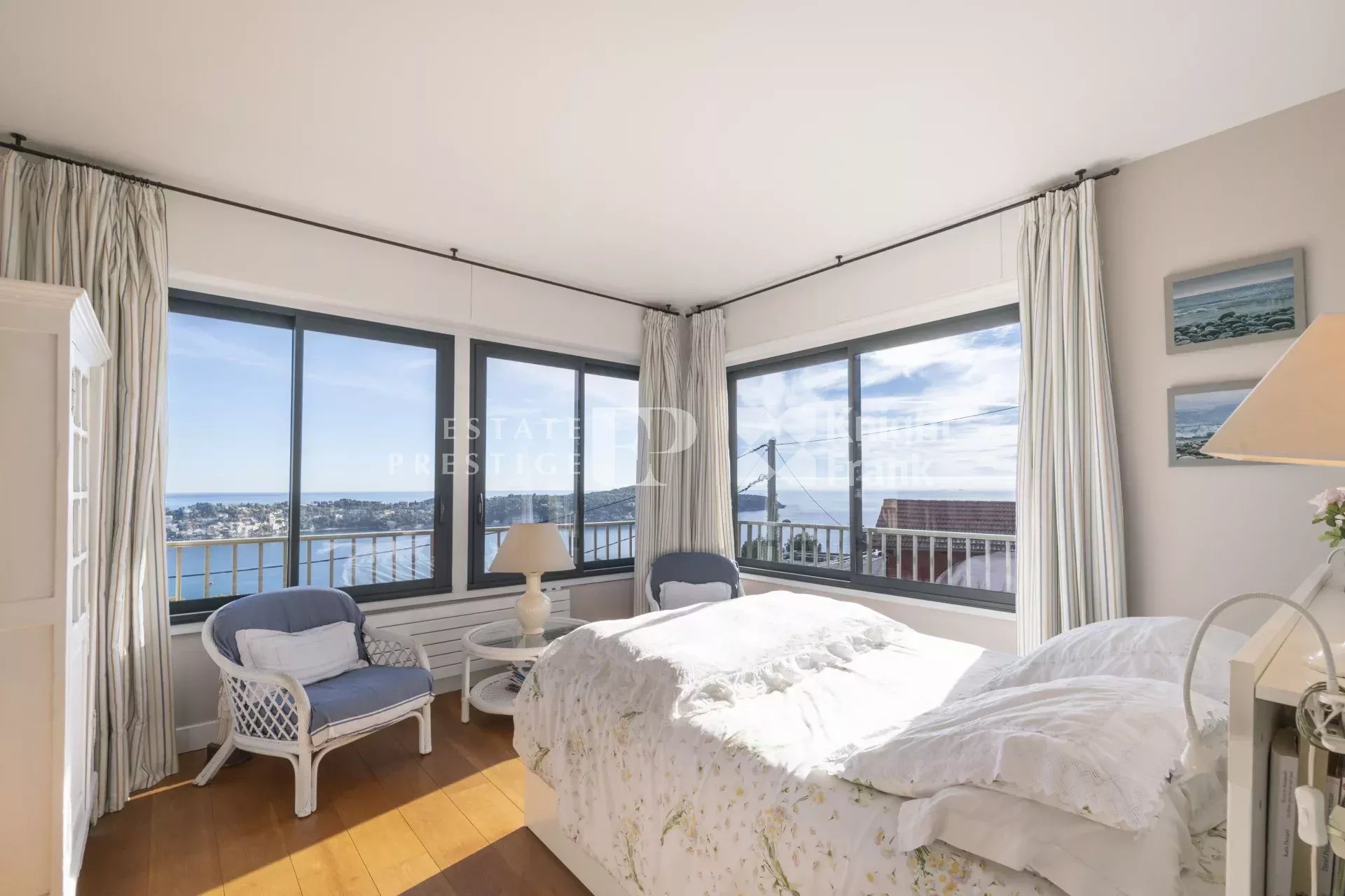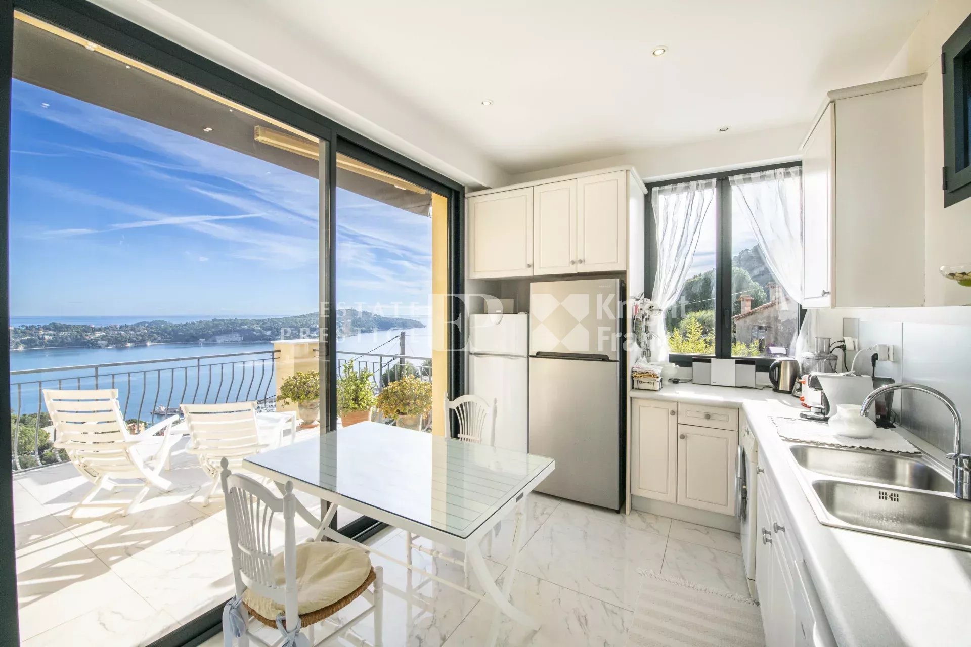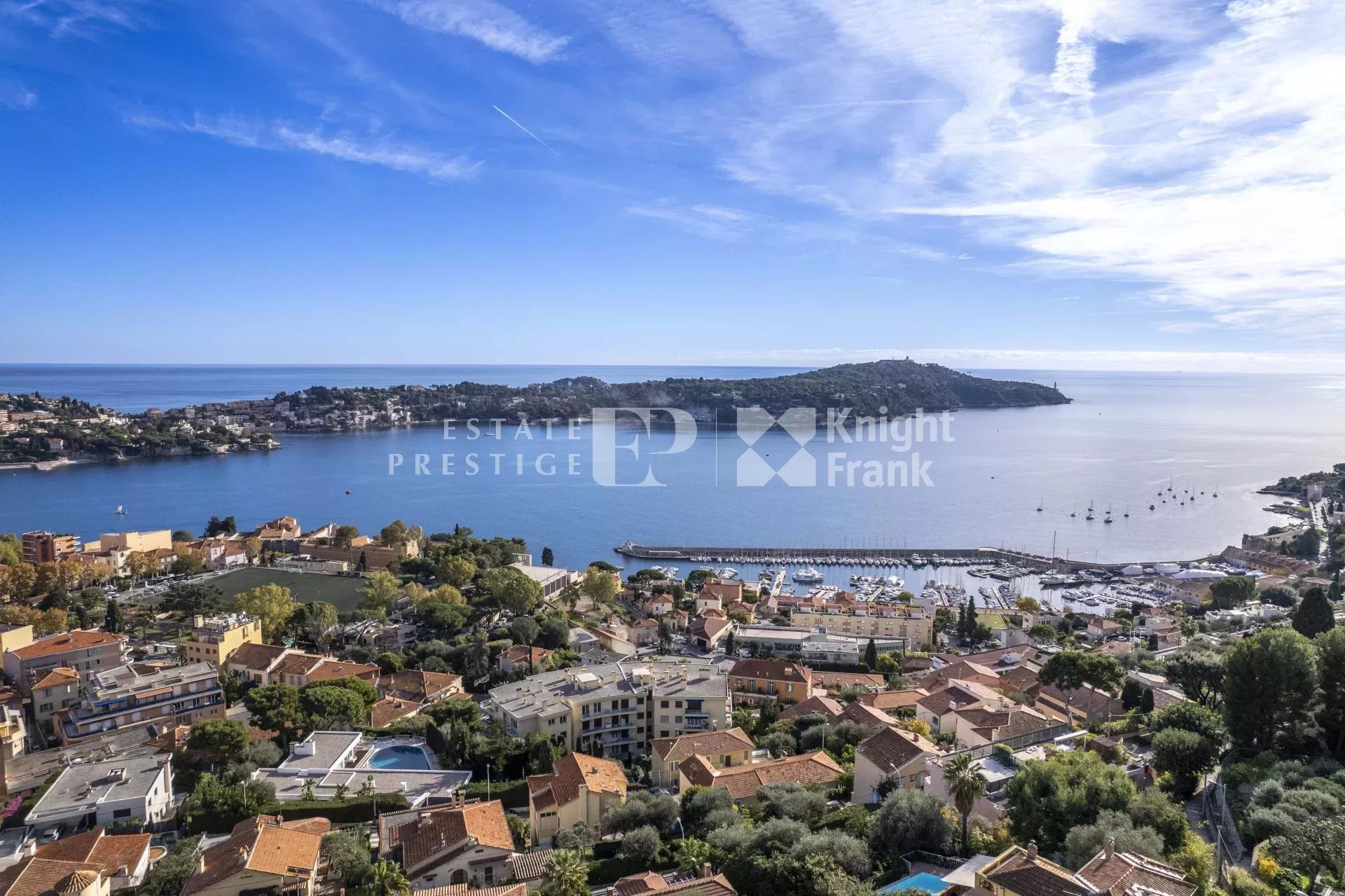 В популярном жилом районе, тихая, красивая двухуровневая квартира на 1 и 2 этаже полностью отремонтированной виллы. Из всех номеров этого уникального пентхауса открывается потрясающий вид на море. Он состоит из 2-го уровня большой яркой гостиной с большими раздвижными окнами, открывающимися на красивую террасу с видом на море, и большой хорошо оборудованной кухни с прямым выходом на террасу для приема пищи с видом на залив Вильфранш.