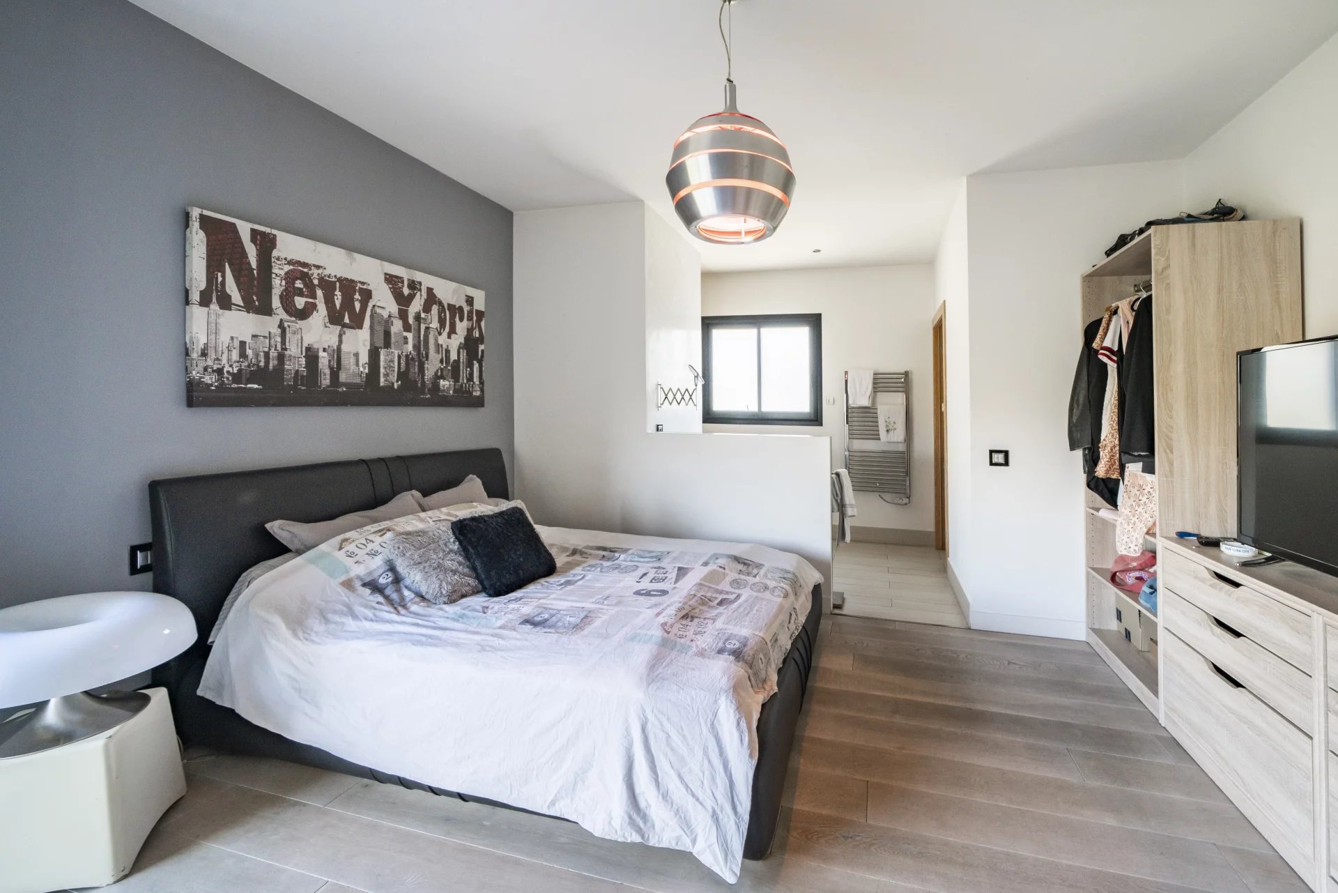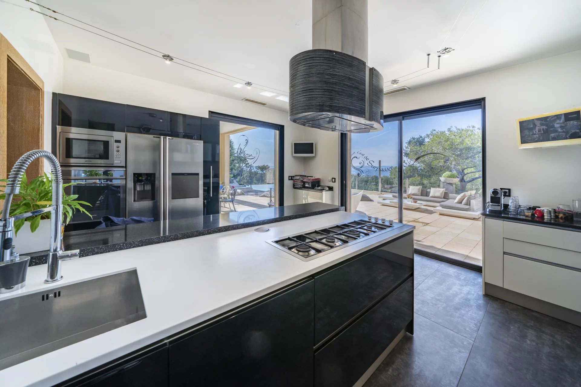 Очень светлая и просторная вилла, расположенная в Сен-Поль-де-Ванс, предлагает оазис тишины и спокойствия. Состоит из очень просторной гостиной открытой планировки с обеденной зоной, полностью оборудованной кухни с барной стойкой и 3 спален с ванными комнатами. Основная спальня оборудована гардеробной, ванной комнатой, душем, туалетом и собственной террасой. Игровая комната и еще одна комната, которую можно превратить в фитнес-центр или кинозал.