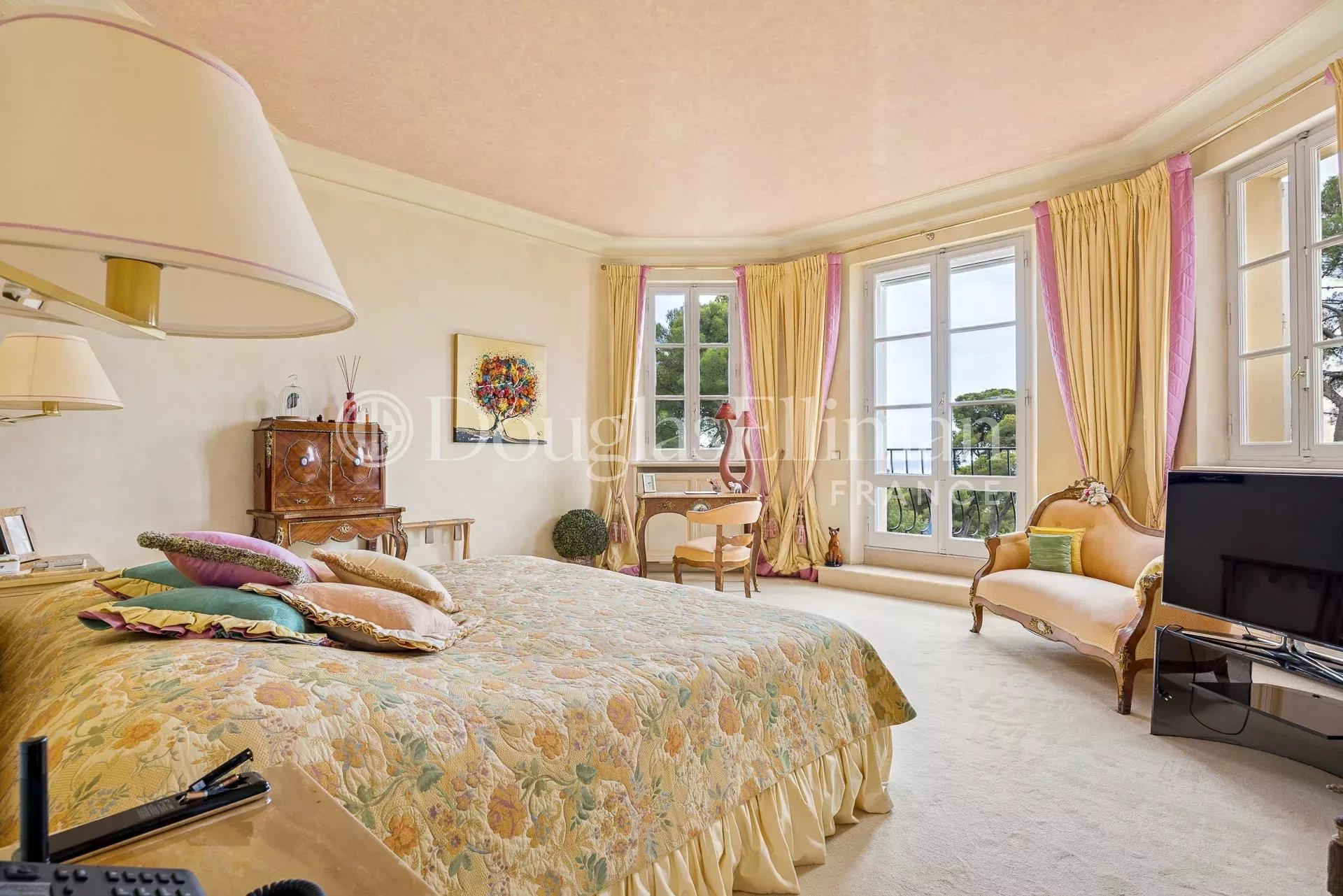 Окна выходят на юг и юго-запад, поэтому в течение всего дня здесь оптимально светит солнце. Идеальное расположение в конце тупика обеспечивает абсолютную тишину и спокойствие, полную безопасность и легкий доступ к центру Канн и их пляжам.