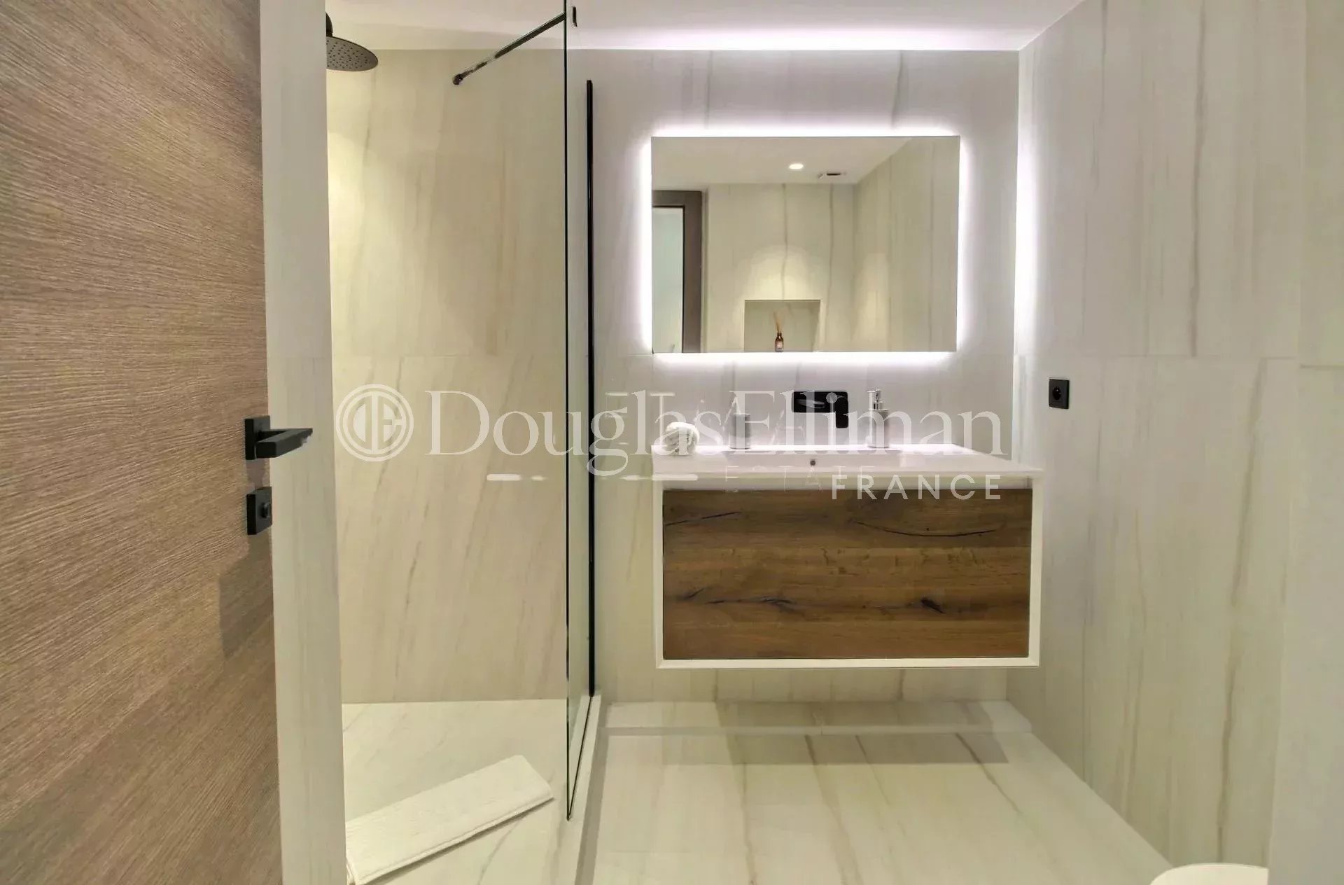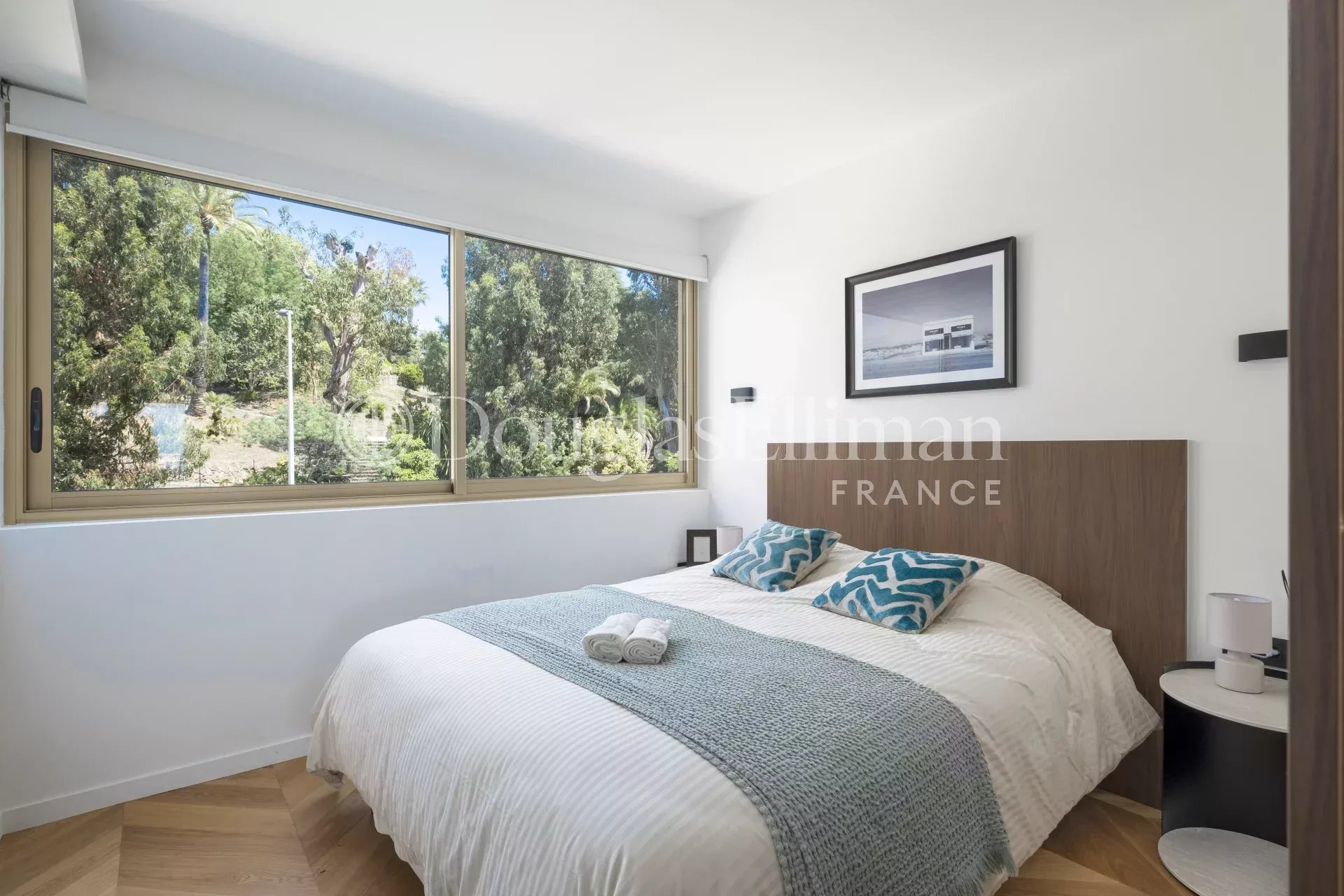 Квартира с панорамным видом на Канны и Леринские острова, выходящая на юг/запад, состоит из большой гостиной с кухней открытого плана, трех спален с ванными комнатами и террасы площадью 27 м2.