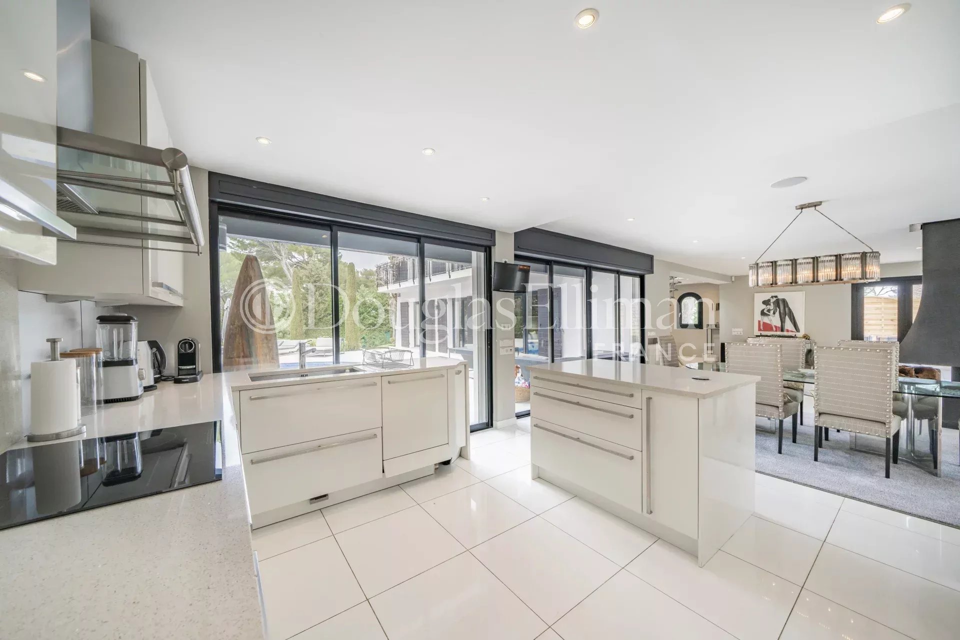 Эта современная вилла расположена в 400 метрах от пляжа на мысе Антиб. Недвижимость предлагает большой гараж, ландшафтный сад и бассейн с окружающими террасами. Большая гостиная с камином, обеденная зона, полностью оборудованная современная кухня, гостевой санузел, гостиная с лестницей из стекла и стали, ведущей на 1-й этаж. 4 спальни с ванными комнатами. На южную сторону и в конце тихой жилой дороги.