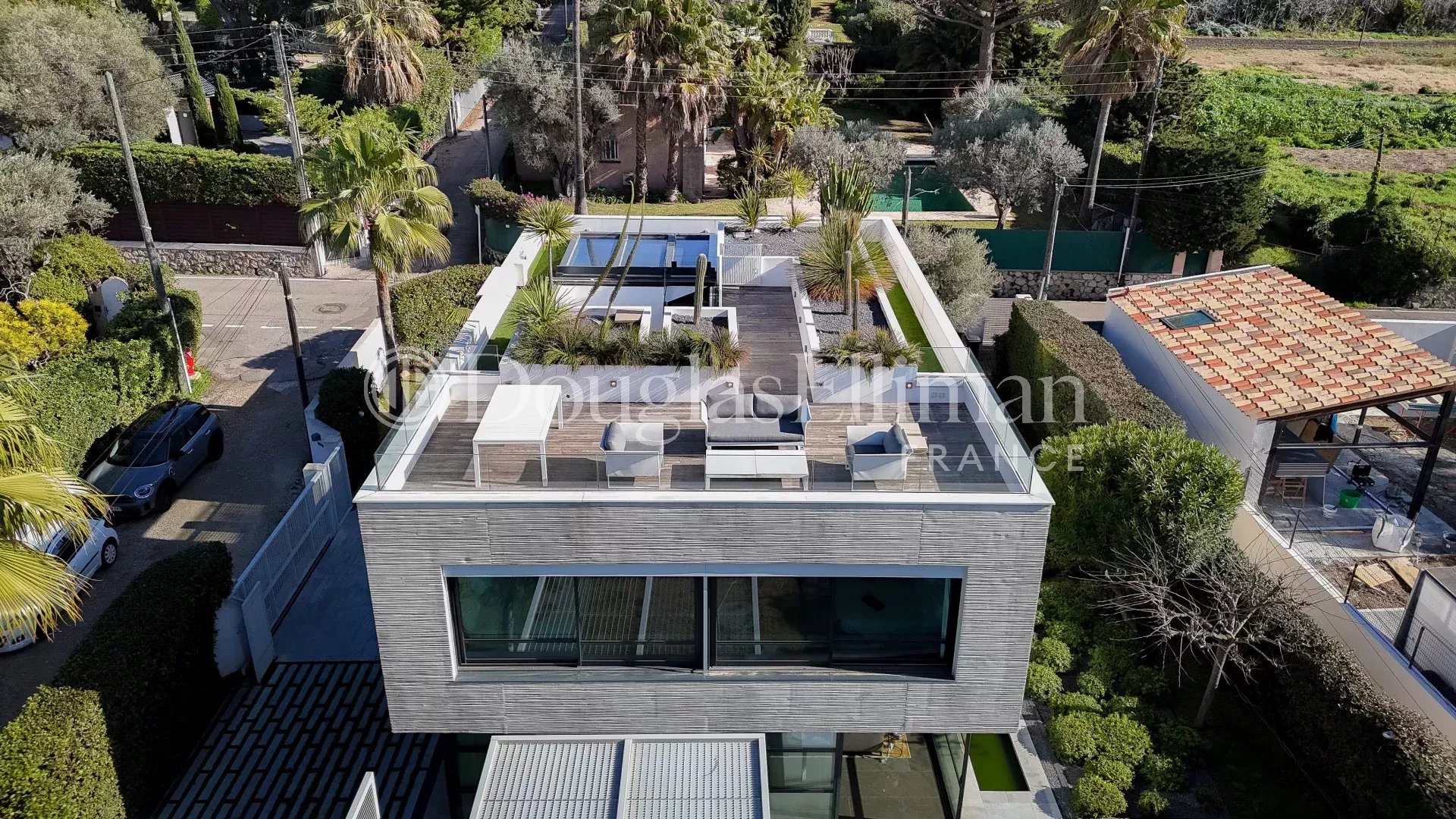 Имеется окруженная садом с кактусами терраса на крыше, где в зоне отдыха можно наслаждаться панорамным видом на побережье Средиземного моря. Есть винный погреб на 600 бутылок, игровая комната с возможностью использовать ее в качестве спа или домашнего кинотеатра, прачечная и большой подвал. Также в этом простом в управлении и стильном доме есть 2 парковочных места, система автоматизации дома, видеокамеры, радиолокационная система охраны, электрические ворота, автоматическая система полива сада.