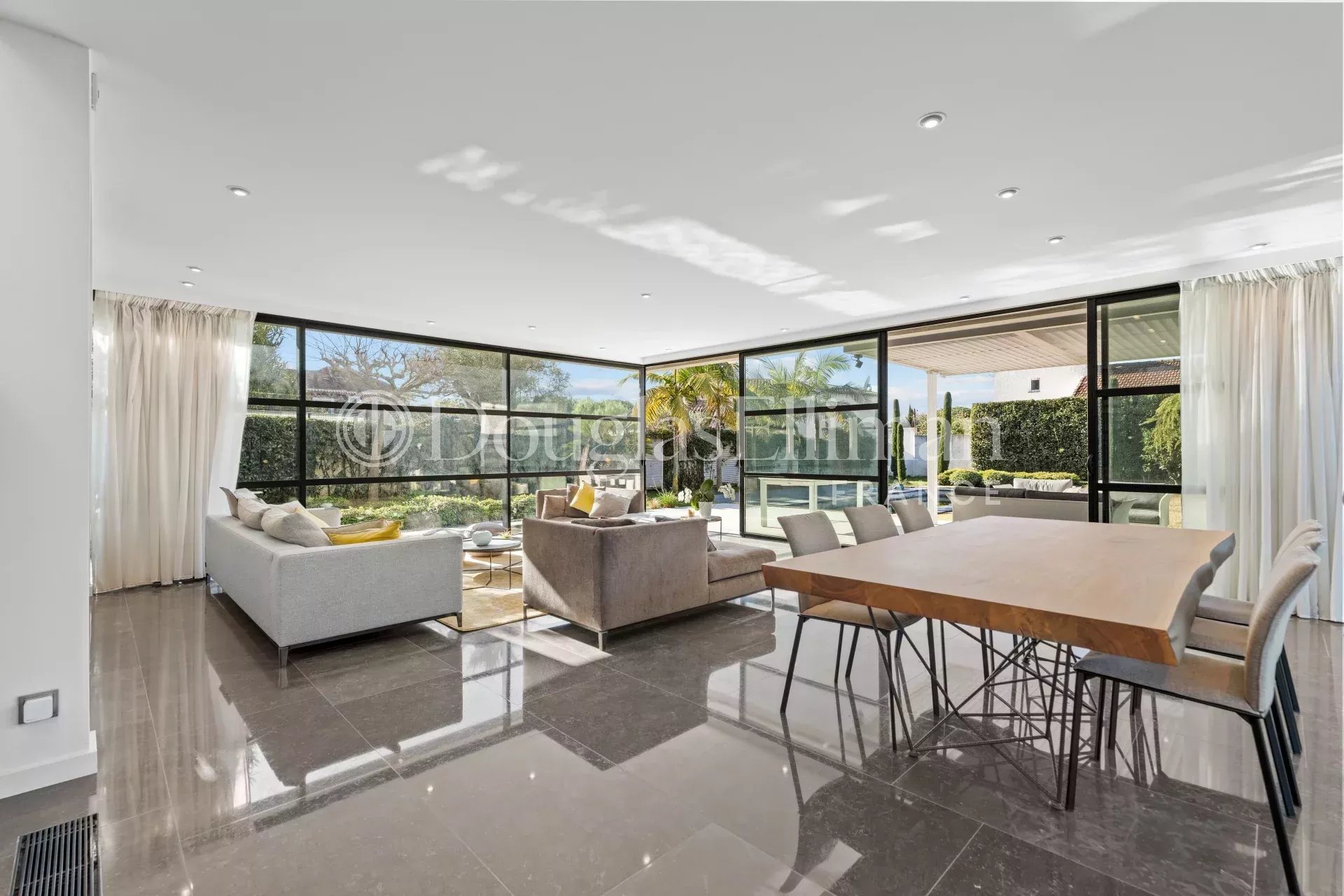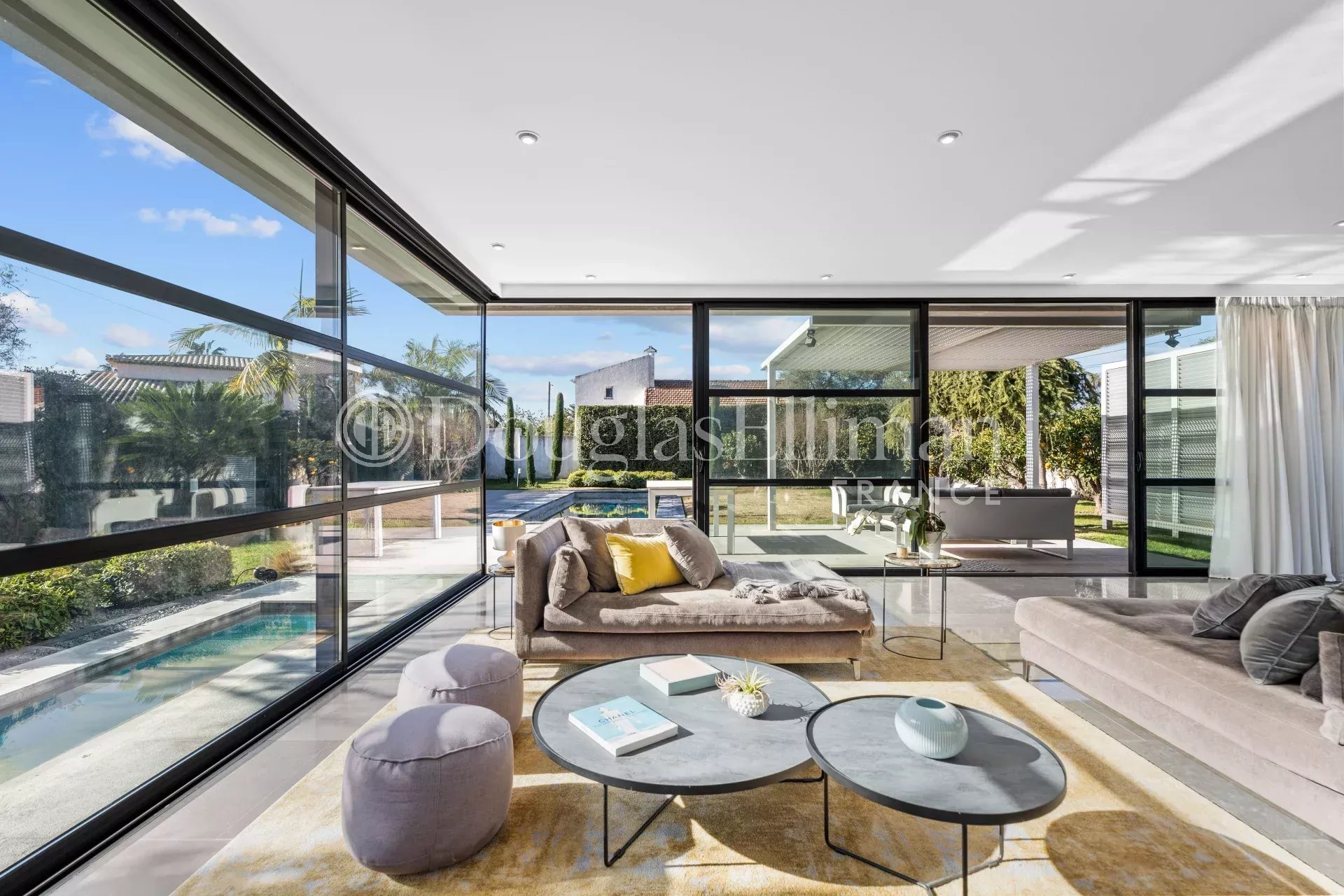 Расположенная на западной стороне мыса Антиб всего в нескольких минутах ходьбы от пляжей, эта вилла состоит из просторной гостиной с выдвижными окнами эркера, выходящими на обеденную зону под открытым небом. Есть плоский сад для принятия солнечных ванн с бассейном из натурального камня. Есть лестница, представляющая собой шедевр архитектуры, и открывающаяся стеклянная крыша, соединяющая 3 уровня с общей жилой площадью 318 м². На уровне сада имеются гостиная, отдельная и полностью оборудованная кухня, гостевой санузел и первая спальня с собственной ванной комнатой. На втором уровне есть хозяйская спальня с собственной гардеробной и ванной комнатой, еще 3 двухместные спальни и 2 душевые.