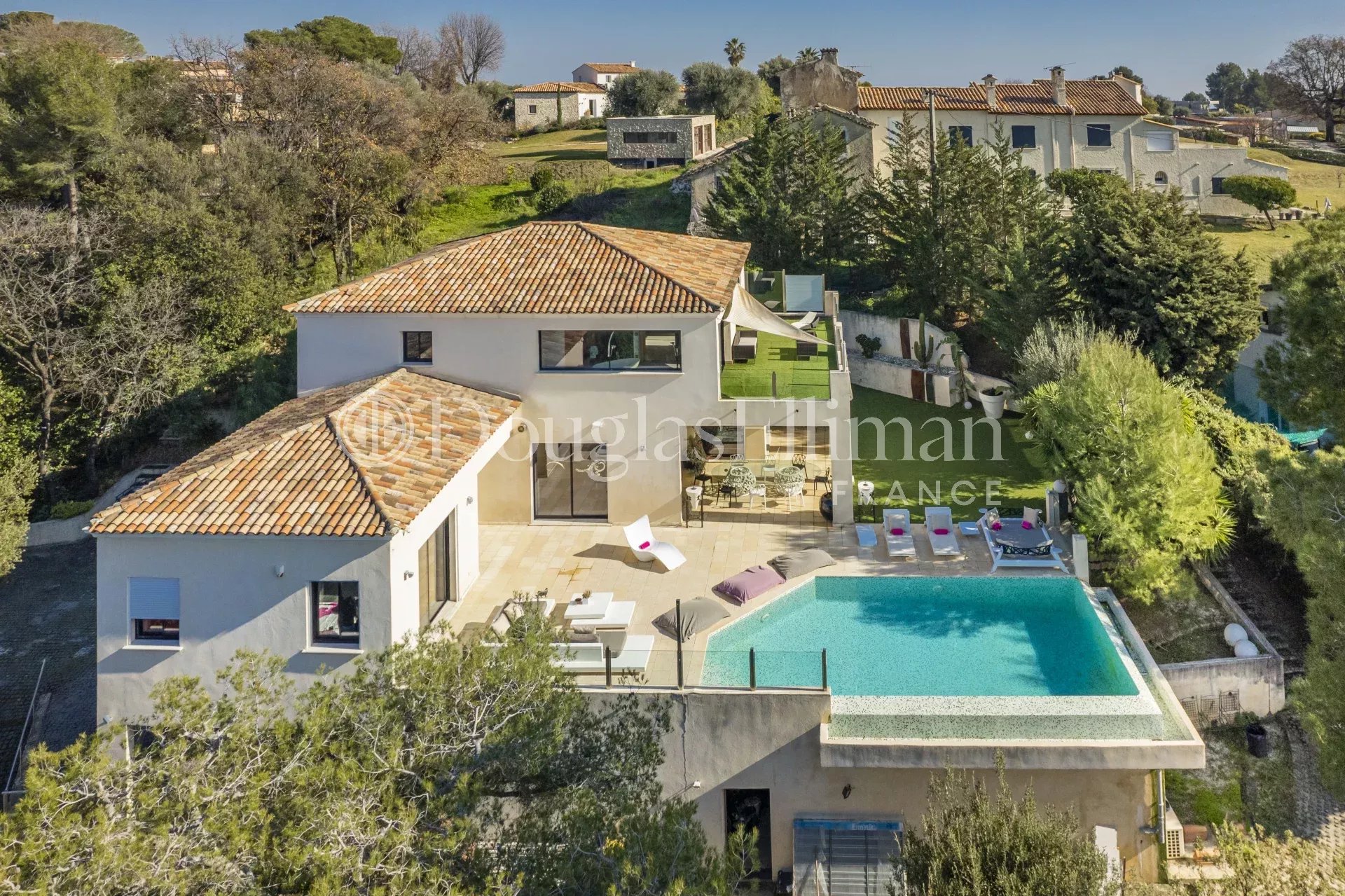 Очень светлая и просторная вилла, расположенная в Сен-Поль-де-Ванс, предлагает оазис тишины и спокойствия. Состоит из очень просторной гостиной открытой планировки с обеденной зоной, полностью оборудованной кухни с барной стойкой и 3 спален с ванными комнатами. Основная спальня оборудована гардеробной, ванной комнатой, душем, туалетом и собственной террасой. Игровая комната и еще одна комната, которую можно превратить в фитнес-центр или кинозал.