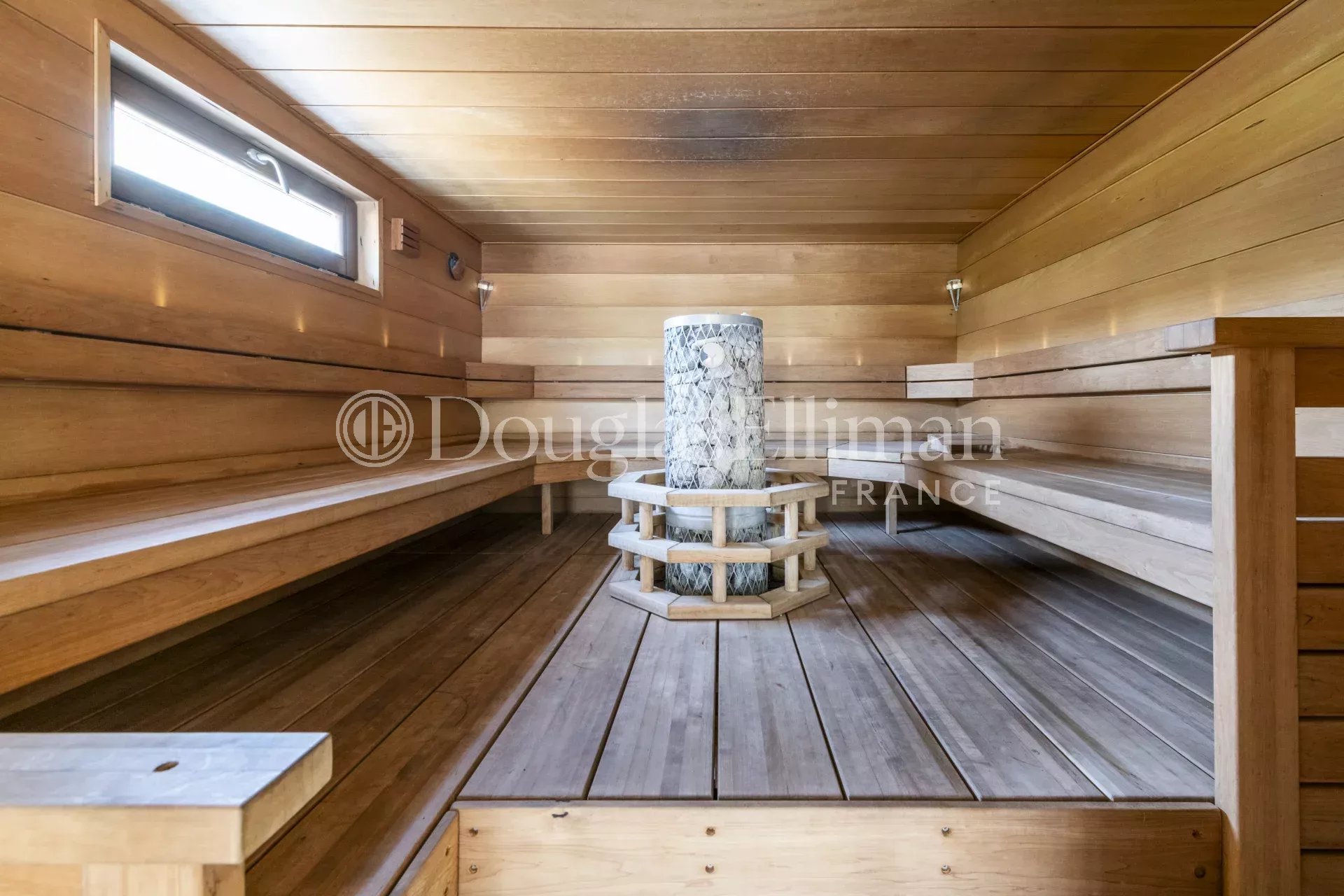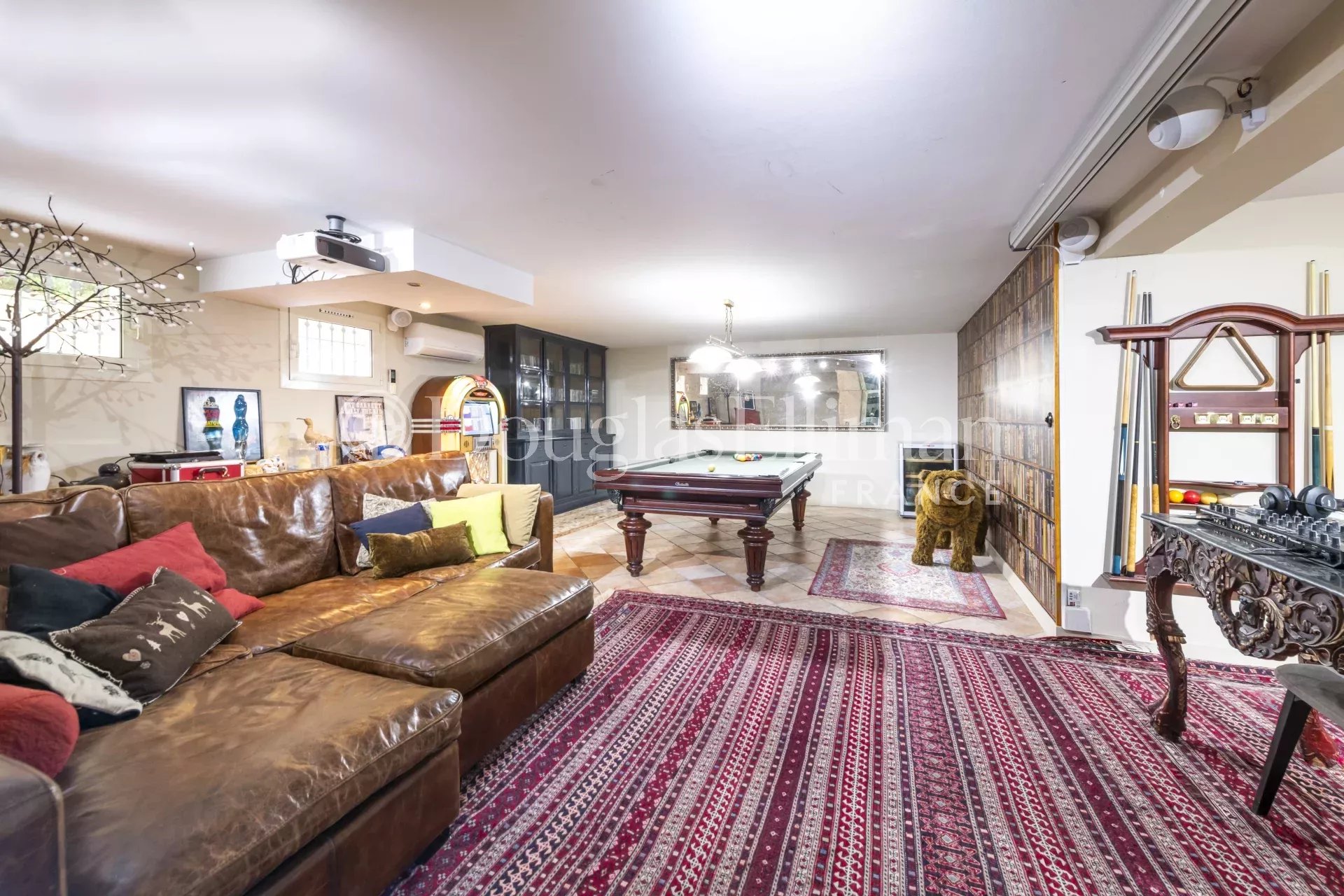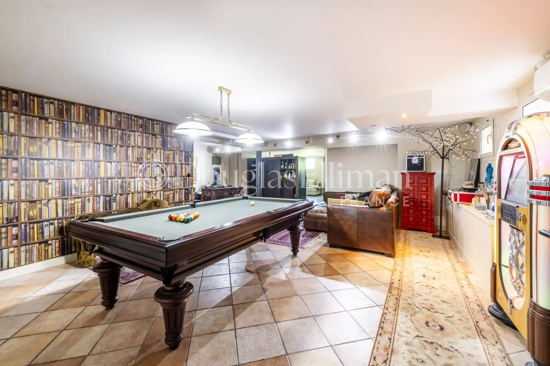 На цокольном этаже с отдельным входом находится большое помещение, включающее студию с ванной комнатой, игровую комнату, прачечную и винный погреб.