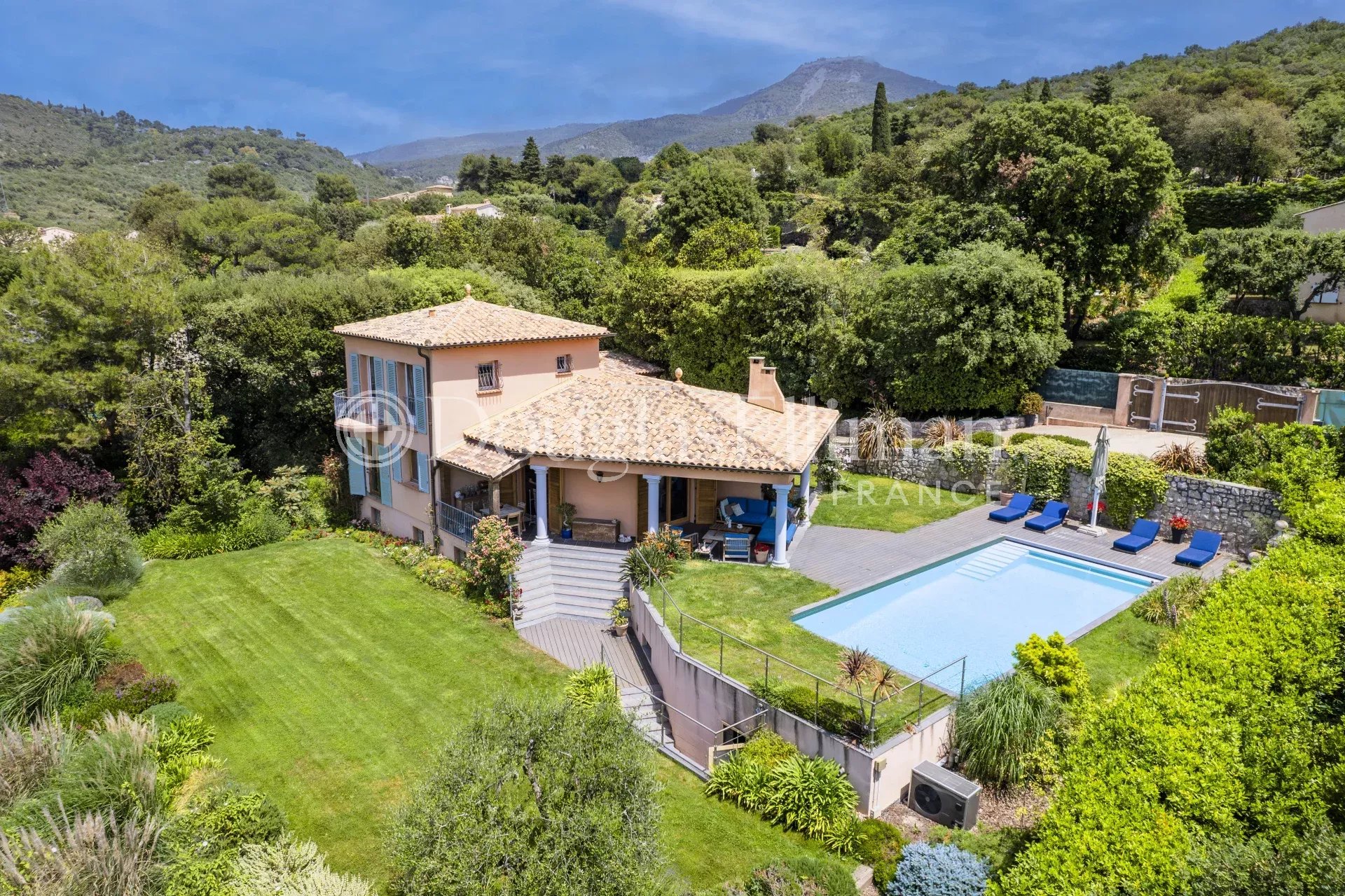 ЭКСКЛЮЗИВНОСТЬ - У ворот Монако, в спокойном, охраняемом частном владении, расположена приятная собственность на красивом участке площадью около 1800 м² с большим бассейном, окруженным газоном.