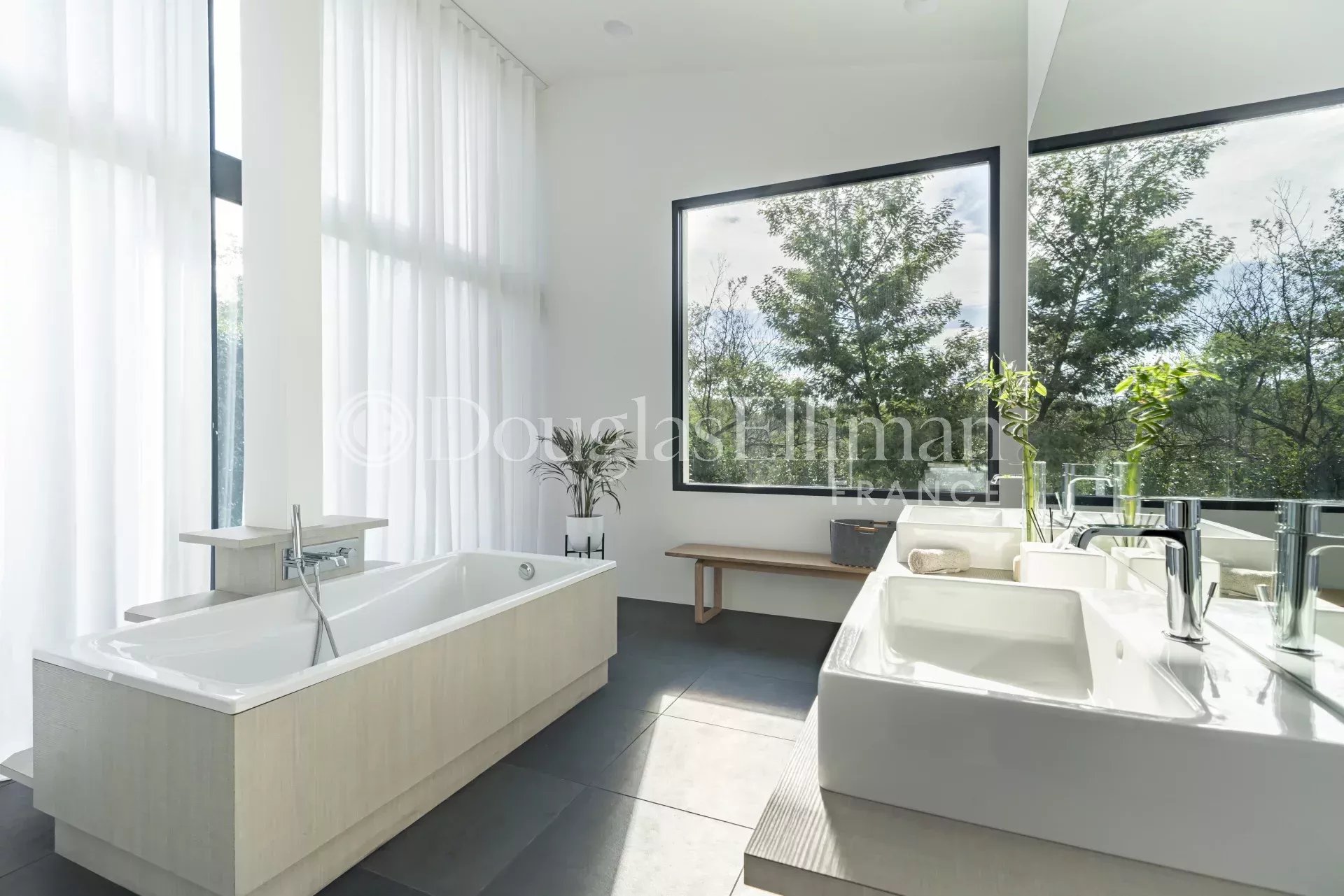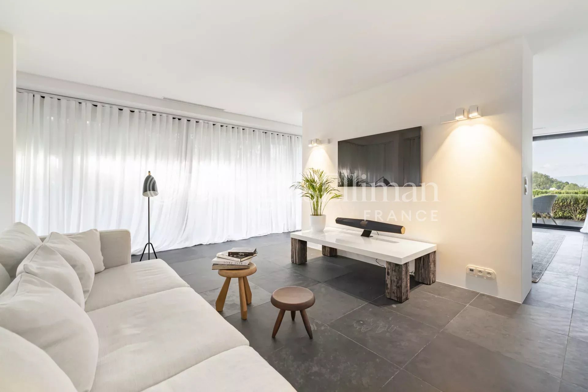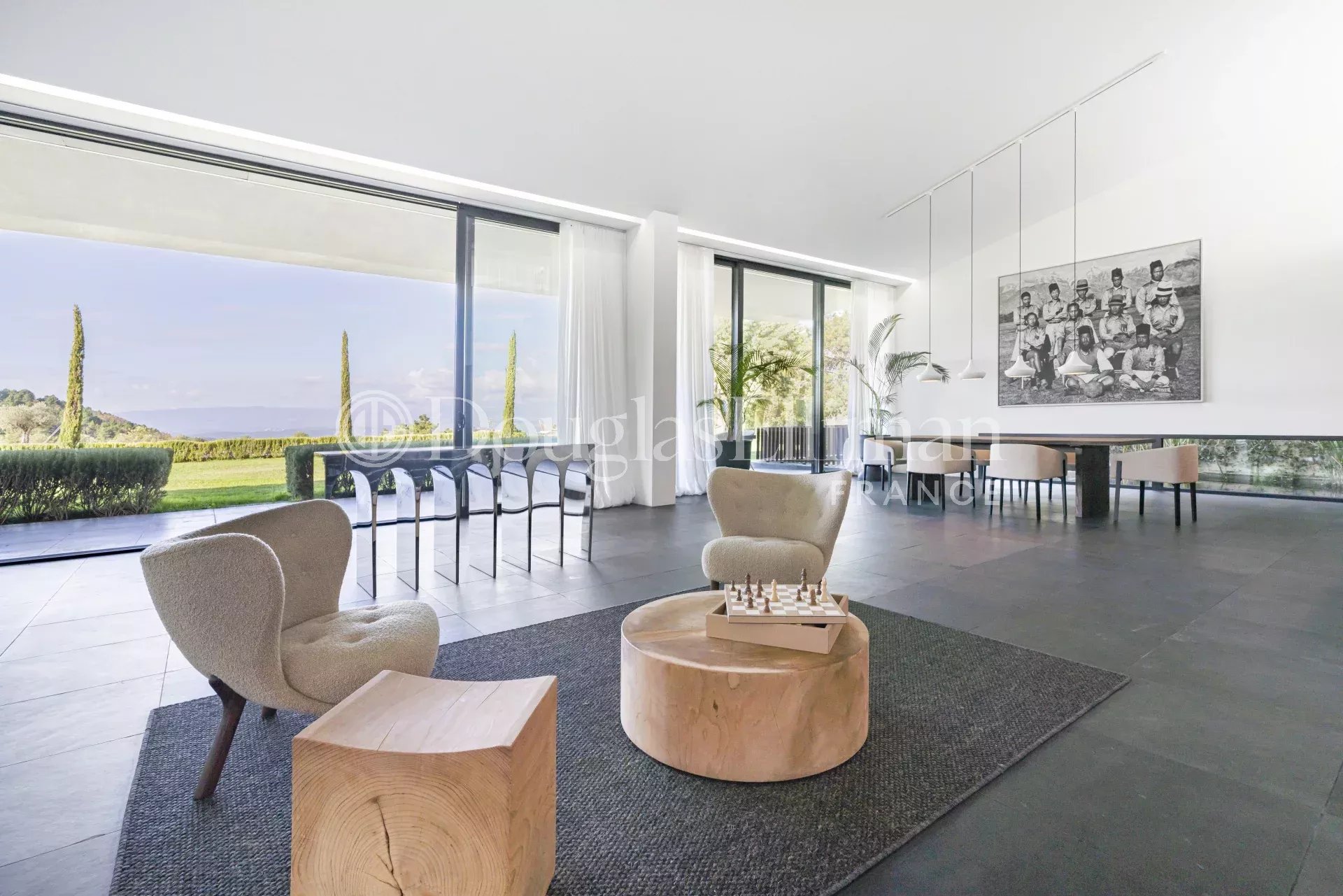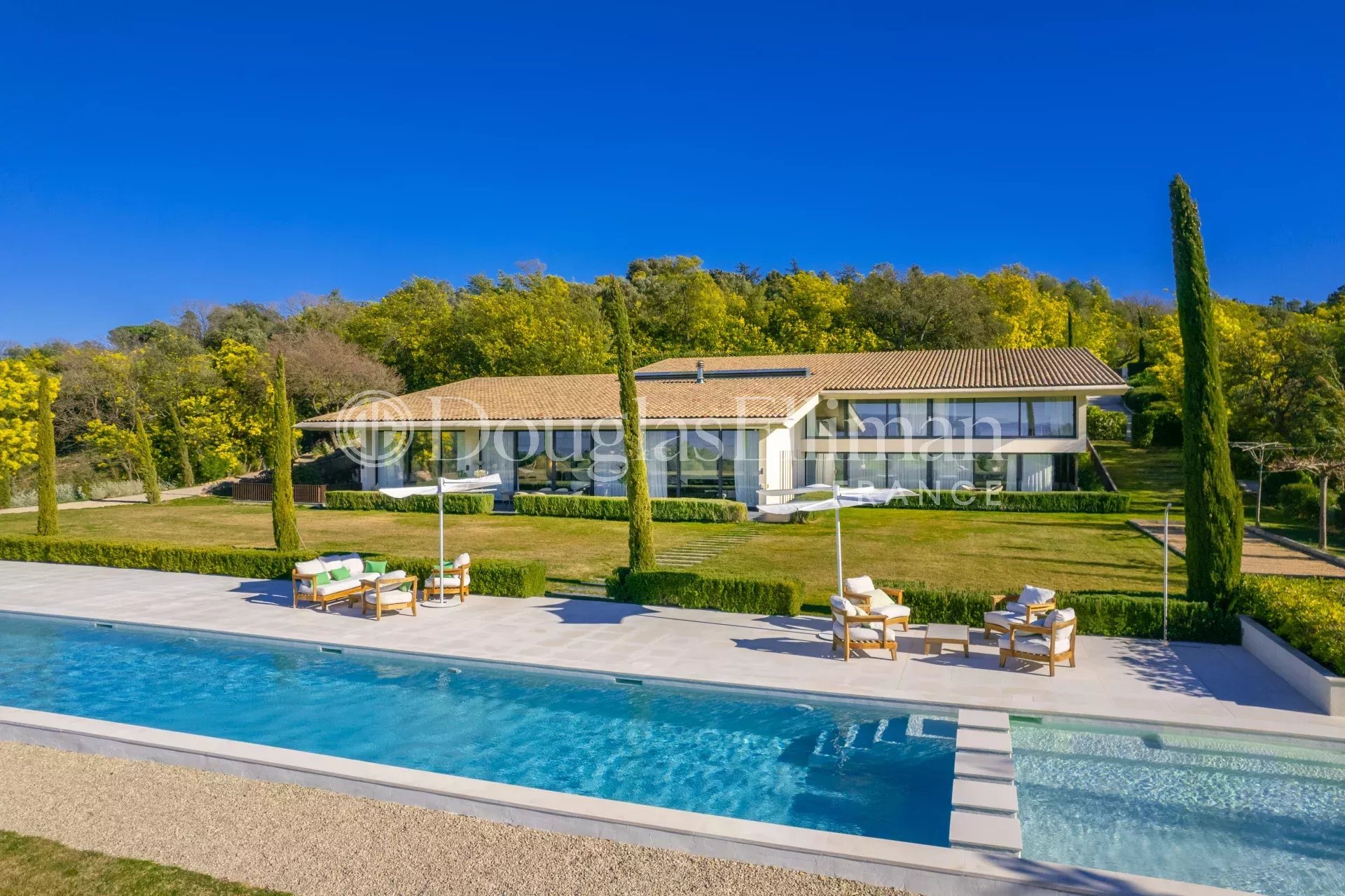 Эта роскошная вилла, построенная по проекту архитектора всего в 25 минутах езды от Канн, на холмах Таннерон, имеет панорамный вид на массив Эстерель и окружающую сельскую местность.