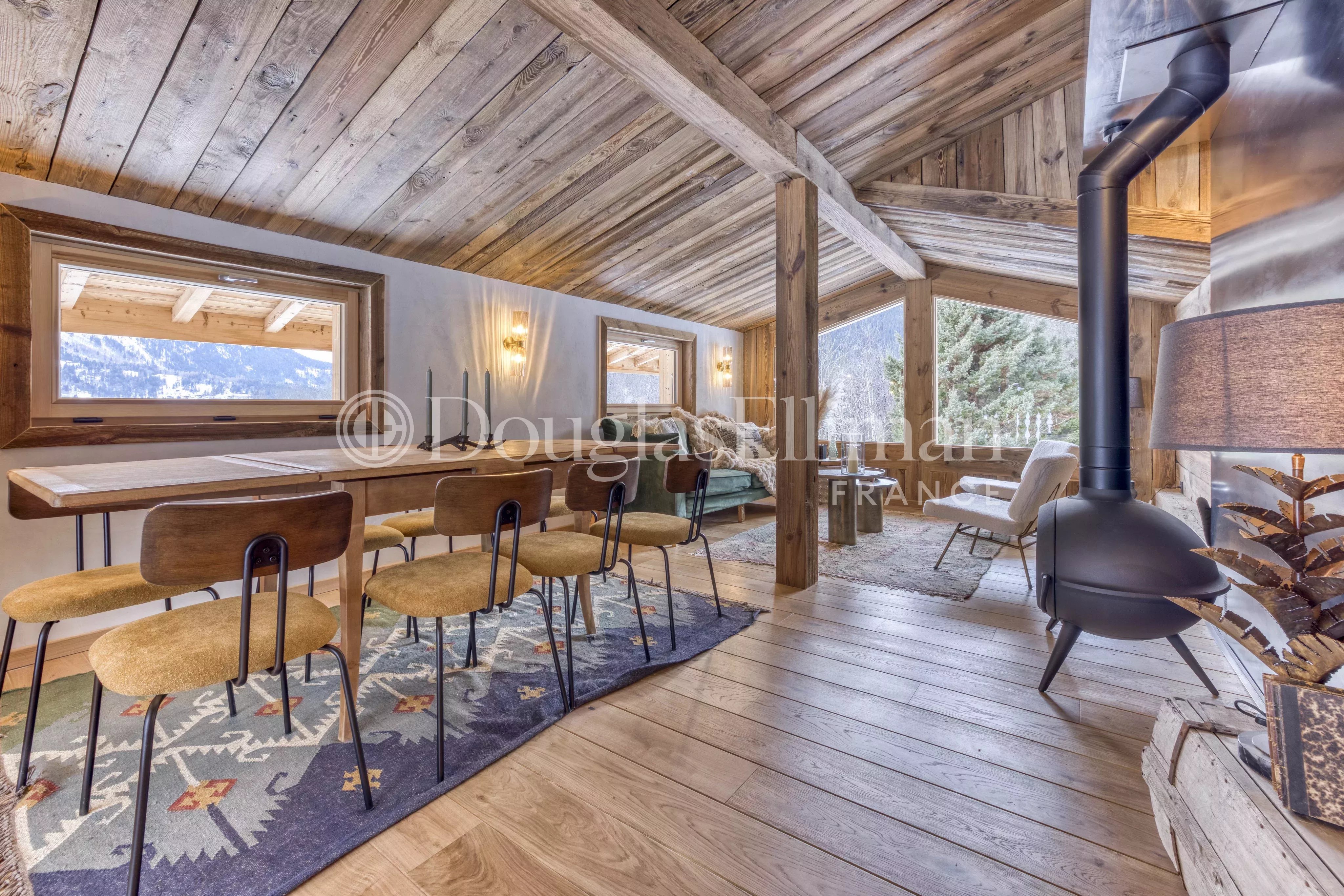 Шале оснащено современными удобствами, включая двойное остекление, обеспечивающее тепло и уют даже в самые холодные зимние дни. Кухня выполнена в современном стиле и оборудована всем необходимым для приготовления кулинарных шедевров. Естественное освещение подчеркивает теплый интерьер из натурального дерева, создавая атмосферу домашнего уюта.