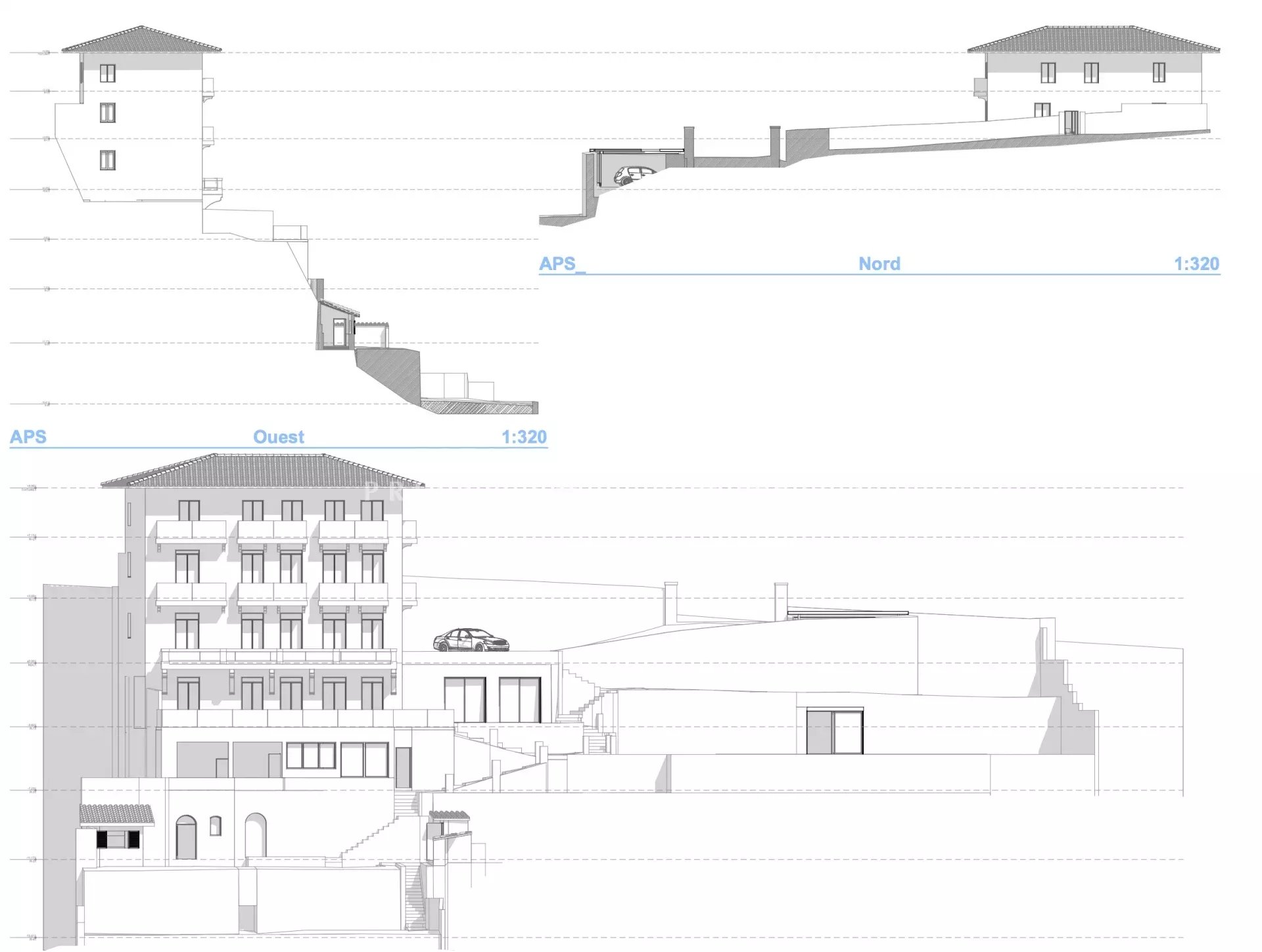 Проект также предполагает строительство закрытого гаража, бассейна и бассейн-хауса.